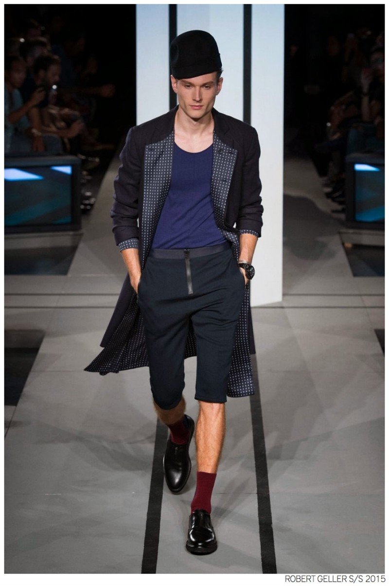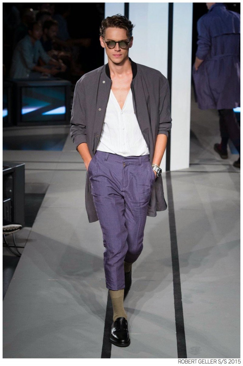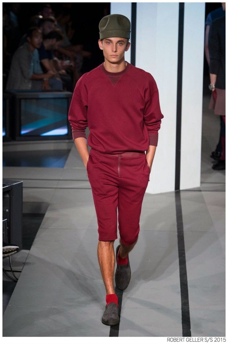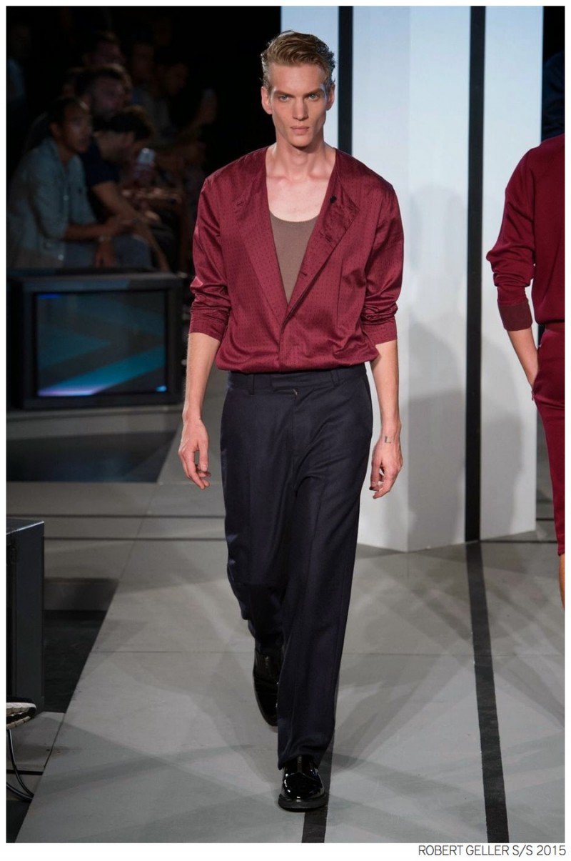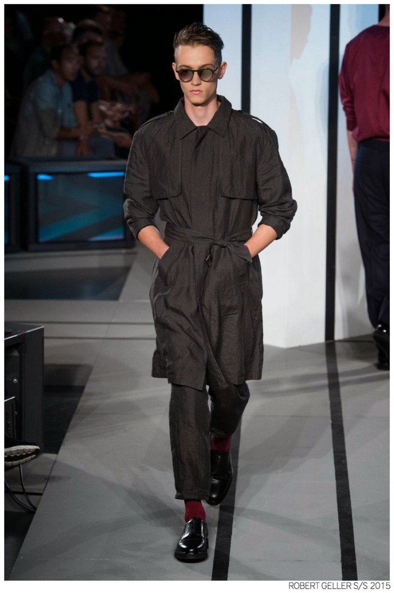 When it comes to the Robert Geller man, style is laid-back and simple is a positive but don’t mistake that philosophy for boring. For spring 2015, Geller reworked menswear essentials with elongated lengths and loose, slouchy fits. Minimal tops found their match in sleek long coats, while relaxed t-shirts were given a new life with engaging prints. Meanwhile, joggers and bomber jackets were included as part of the contemporary mix that has become an everyday staple for the modern man. Rounded out by cropped semi-lean trousers, sleeveless tops, lightweight knitwear and more, Geller delivered a collection that was both aspirational and applicable to the real world.
