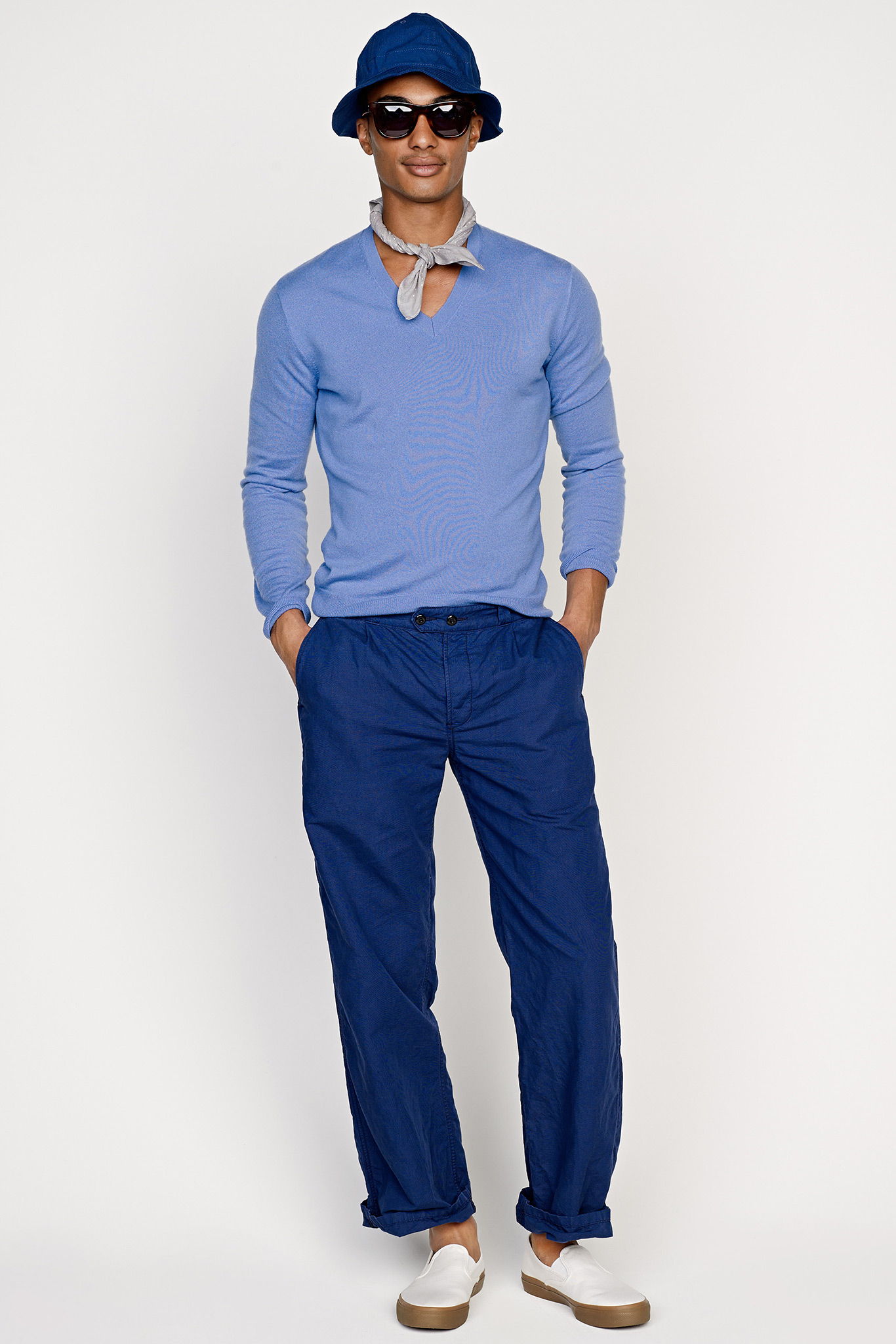 J.Crew adopts a seafaring theme for its spring 2015 collection. Menswear designer Frank Muytjens revisited memories of traveling to Spain as a child. He recalls, “Through my research I came across fantastic images that further evoked nostalgic memories of the Mediterranean.” Thinking of everything from fishermen and their nets on the wharf to the vibrant glimmers of blue reflecting off the ocean’s surface, Muytjens found many ideas to reference. Weaving these elements throughout the collection in the form of fisherman’s cable-knit cardigans, French workwear jackets and other items, the range turns out an inspiring lineup of easily accessible separates.