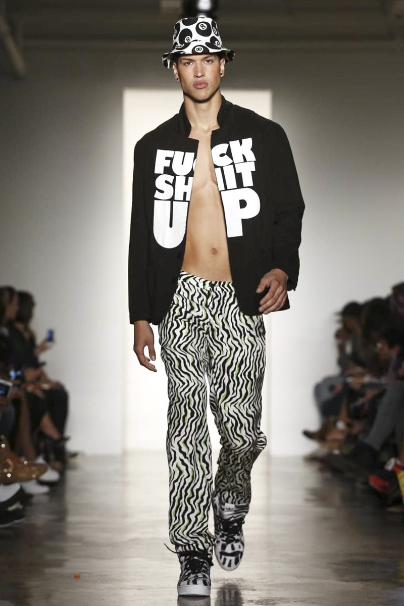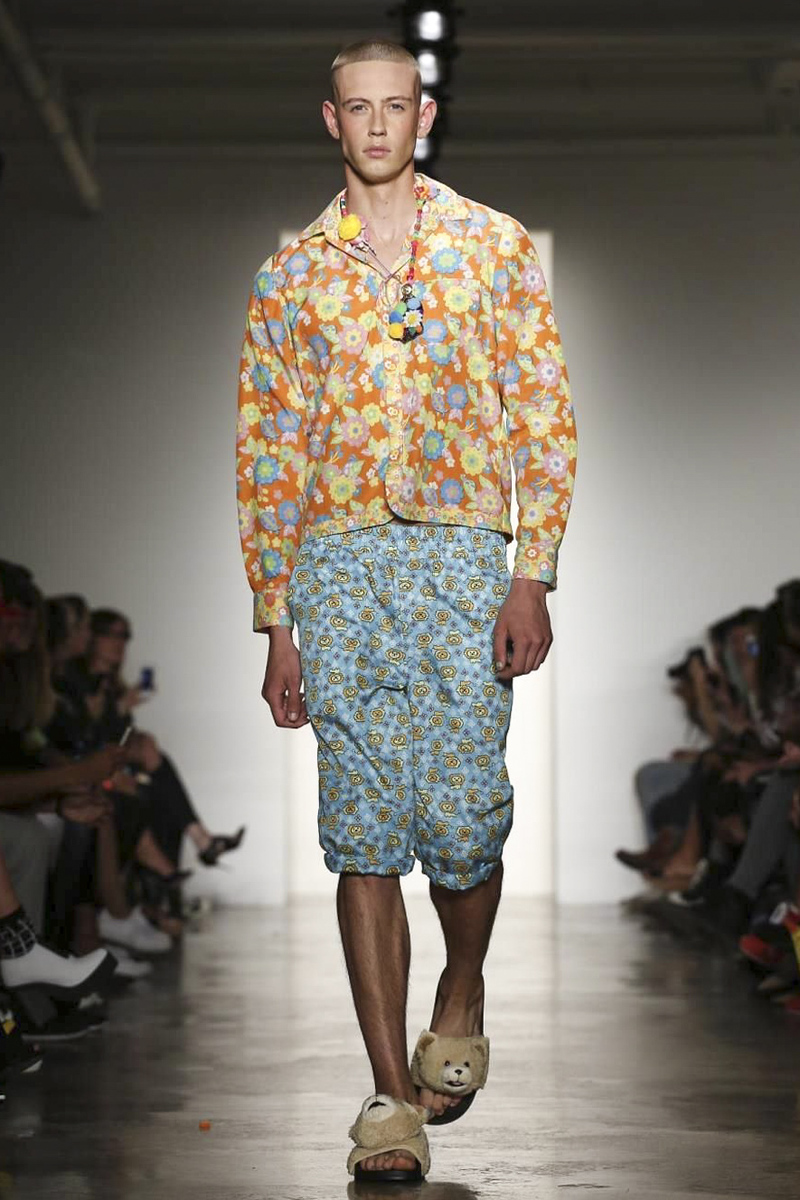 Since his appointment at Moschino, the spotlight has increased on designer Jeremy Scott. Not one to disappoint with his outlandish designs, Scott sent bold, vibrant, fearless looks down the catwalk. Accessorized with necklaces created in collaboration with Miley Cyrus, Scott’s looks borrowed from pop culture, featuring images of Shrek and other colorful design motifs. From animal prints and hippy floral designs to baja stripes, the collection unveiled a lineup of typical garments with an acid-induced personality factor. One word #dirtyhippie