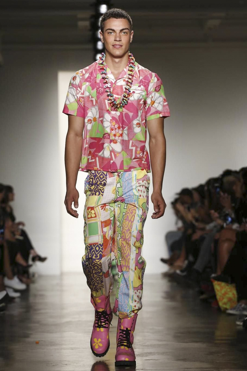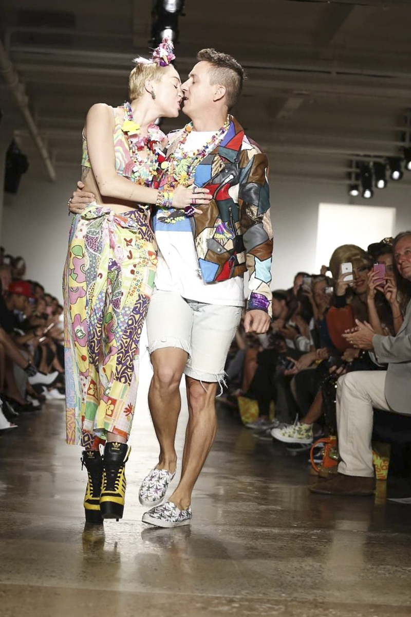 Since his appointment at Moschino, the spotlight has increased on designer Jeremy Scott. Not one to disappoint with his outlandish designs, Scott sent bold, vibrant, fearless looks down the catwalk. Accessorized with necklaces created in collaboration with Miley Cyrus, Scott’s looks borrowed from pop culture, featuring images of Shrek and other colorful design motifs. From animal prints and hippy floral designs to baja stripes, the collection unveiled a lineup of typical garments with an acid-induced personality factor. One word #dirtyhippie