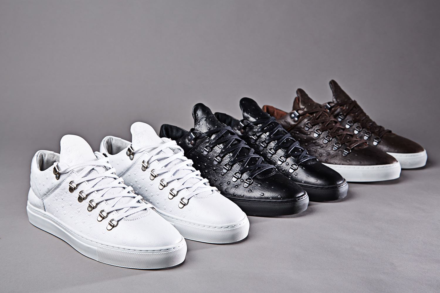 We really adore! The Filling Pieces x END. exclusive collaboration features three ostrich skin effect iterations of the original silhouette Mountain Cut Low Sneakers, which are handmade in Portugal. Online now. http://www.endclothing.co.uk/brands/filling-pieces