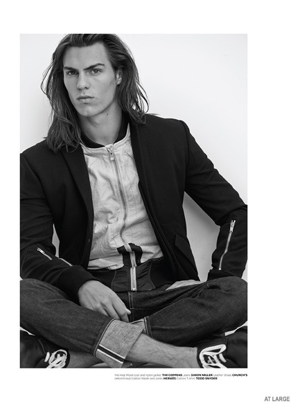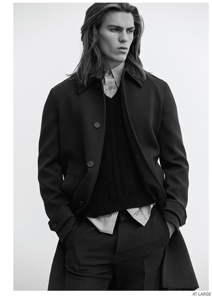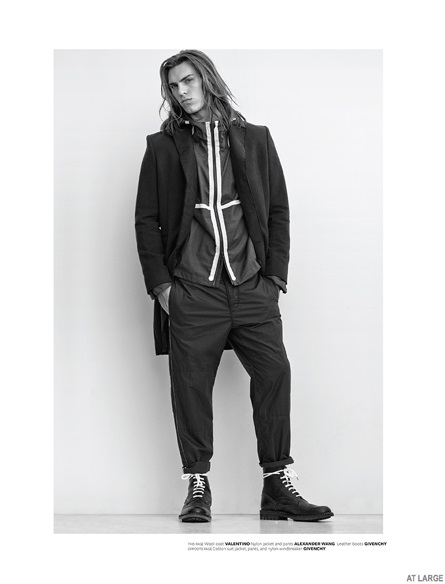Travis Smith stars in editorial for the December 2014 edition of At Large Magazine. The spread called “The Minimalist” shows the latest male fashion trends with styling by Bill Mullen and photography by Matthew Brookes.