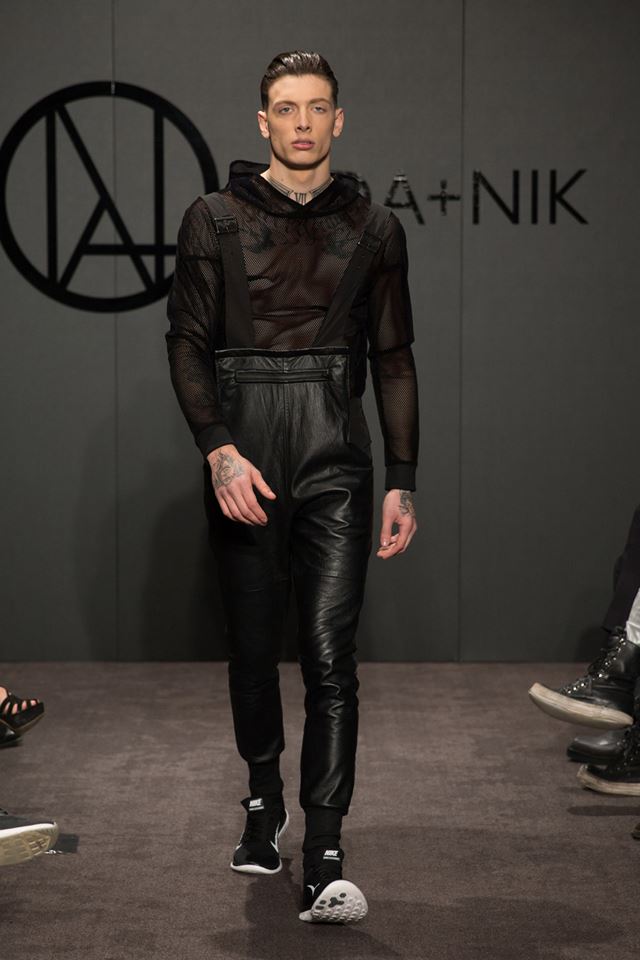 Ada + Nik Autumn Winter 2015 Starting the Show at the ME Hotel, London, UK one of my favorite fashion brand from UK revolutionary all men in black, defining color black as classic. Materials like leather, cotton, polyester and vinyl are the stars of this collection,  each piece of this collection are perfectly think by dynamic duo Ada + Nik and they never disappointing.