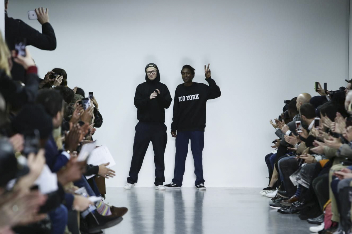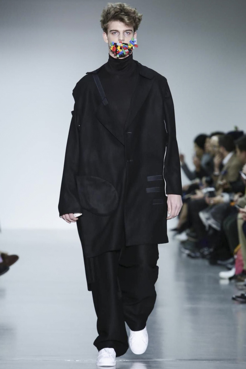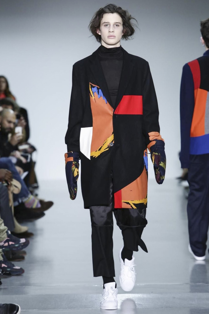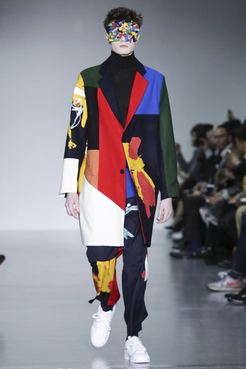 With the popular transgression that characterizes these graduates of Central Saint Martins, Agi & Sam presented her winter collection at London Collections: MEN, with oversized silhouettes, bright colors, 3D applications and patches of color on long coats in different materials.