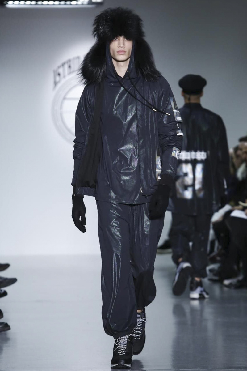 Betting on the use of synthetic materials, Astrid Andersen breaks the monochrome of black and white in his Fall / Winter 2015 collection during London Collections: MEN with touches of fur, oversize garments, futuristic textures and military references.