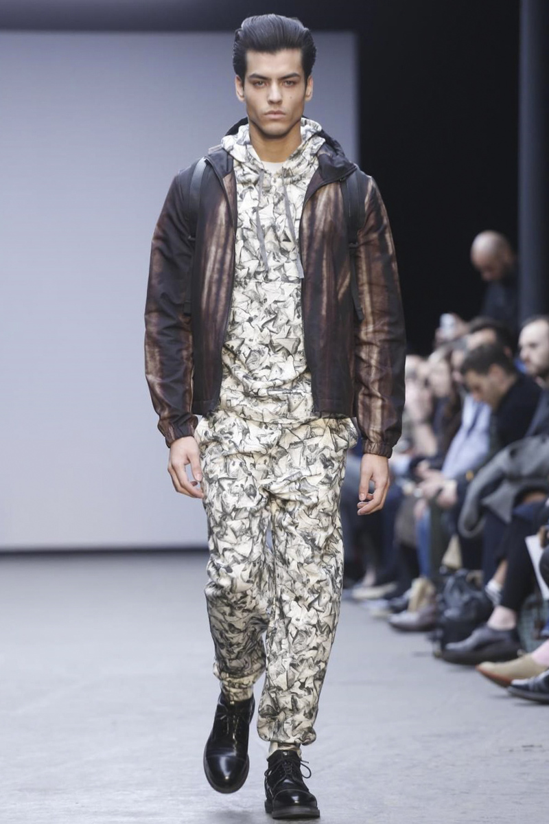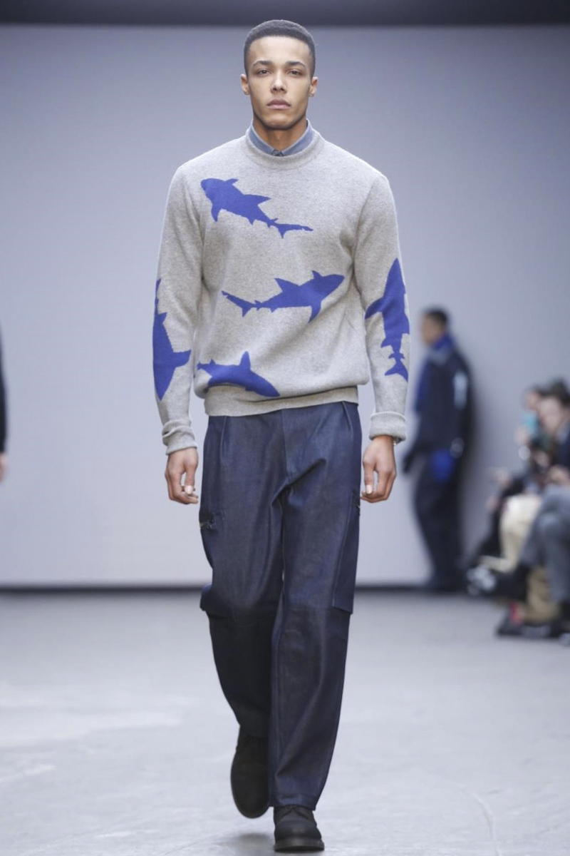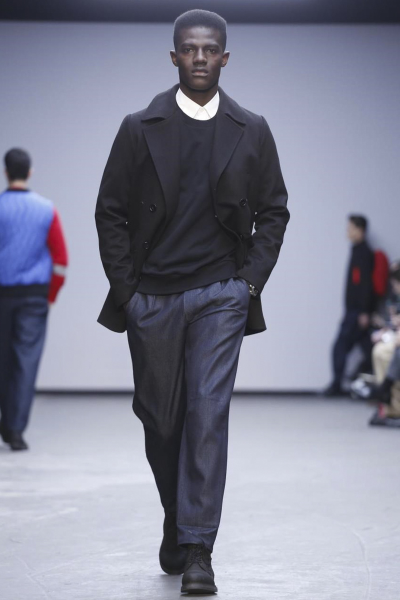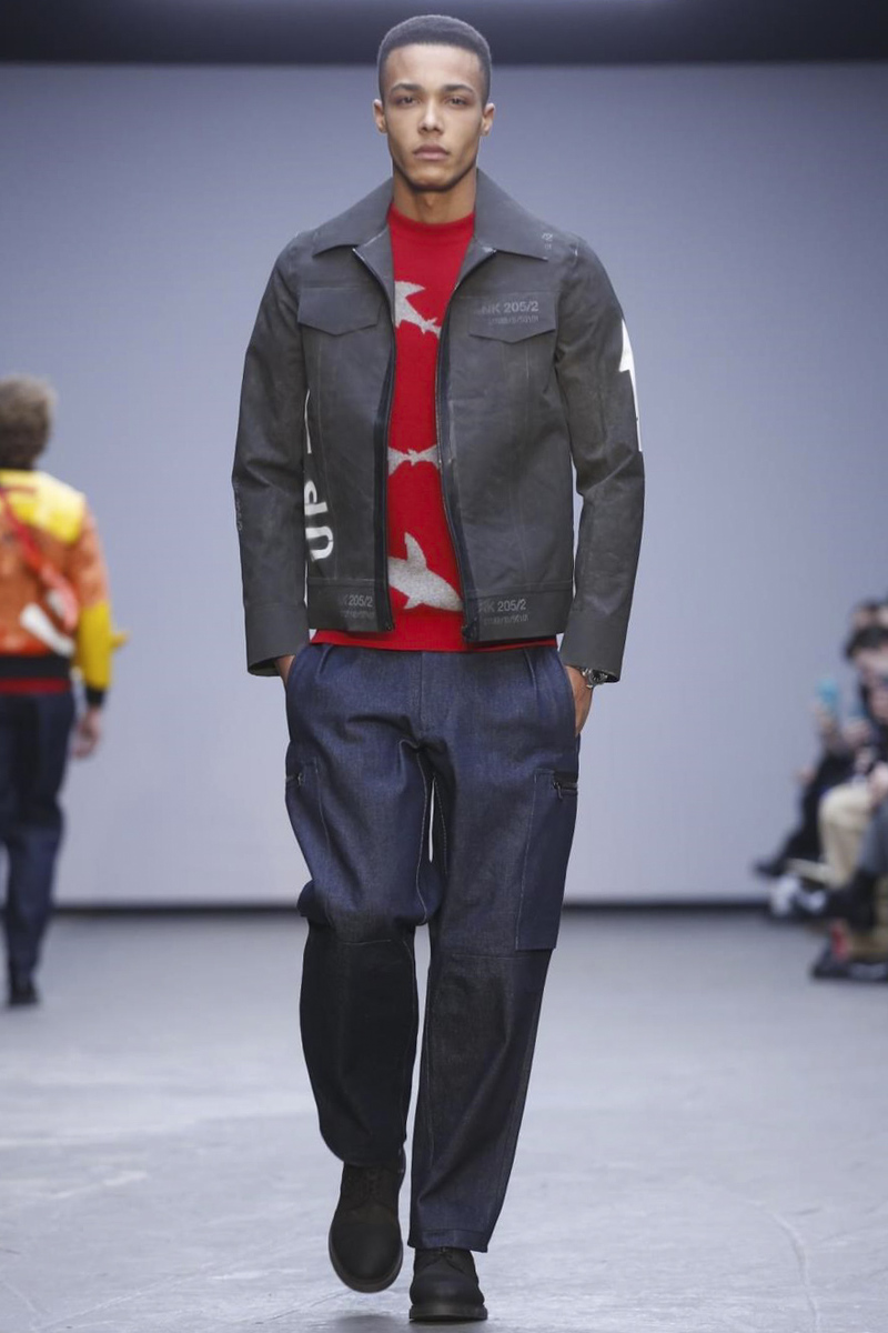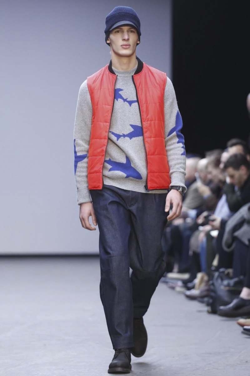 Vibrant colors on synthetic materials are materialized by the collection with sports air of Christopher Raeburn Fall/Winter 2015 during the London Collections: MEN, jackets and inflatable vests, wide leg pants and prints in solid colors.