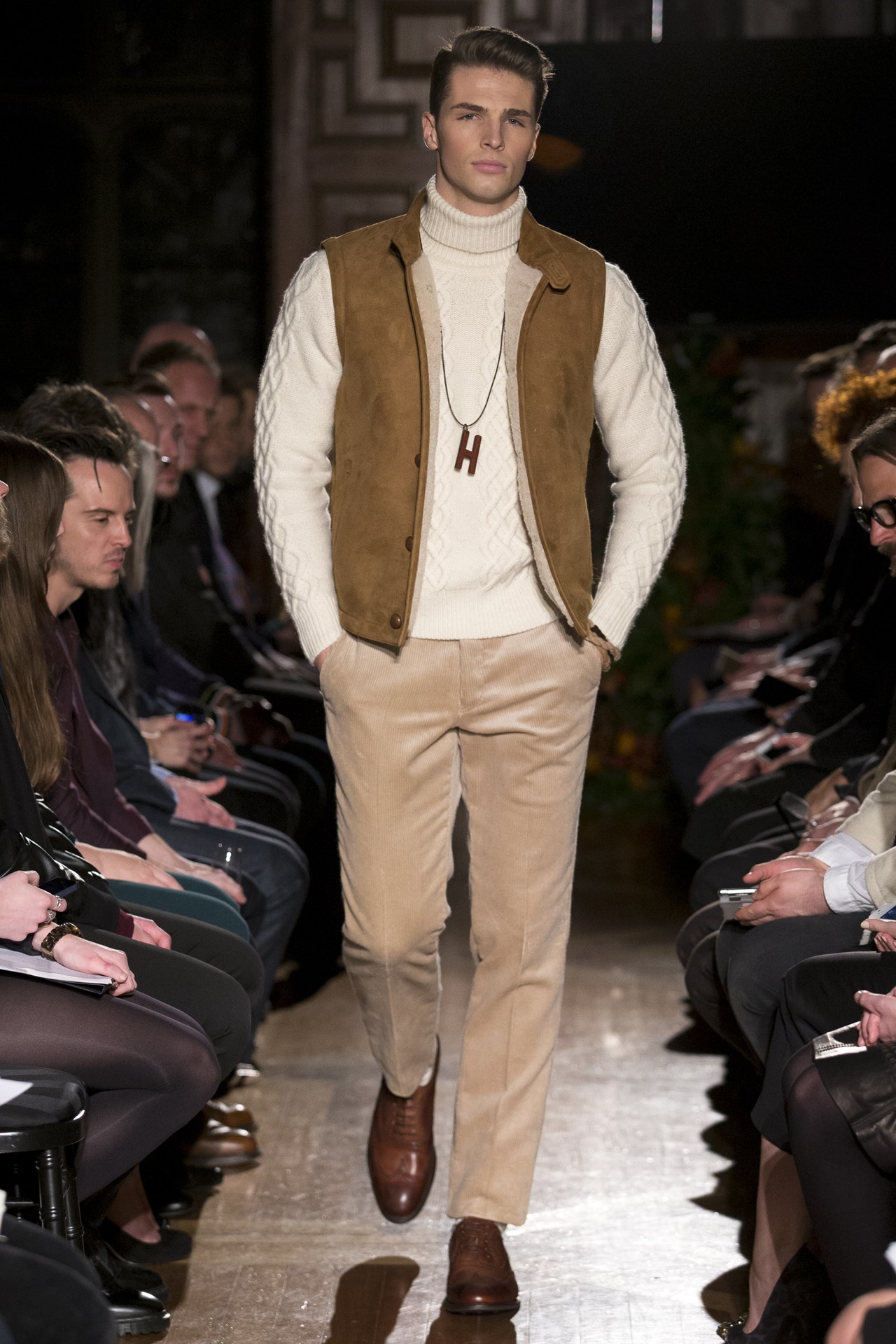 A classic view of men’s fashion was part of the presentation of Hackett London in the London Collections: MEN, her winter collection focuses on dresses printed with details of wool and skins summing tailored to each look silhouettes.