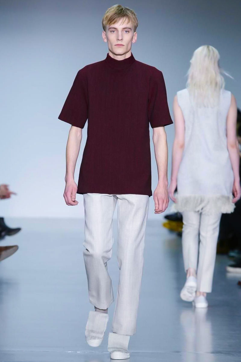 Biker jackets, neat cuts, colors and uniforms tuned tones are bet Matthew Miller in his Fall/Winter 2015 collection during London Collections: MEN. Burgundy, black, camel and nude live in parts ideal for seven days a week maintaining the minimal charm of each look.