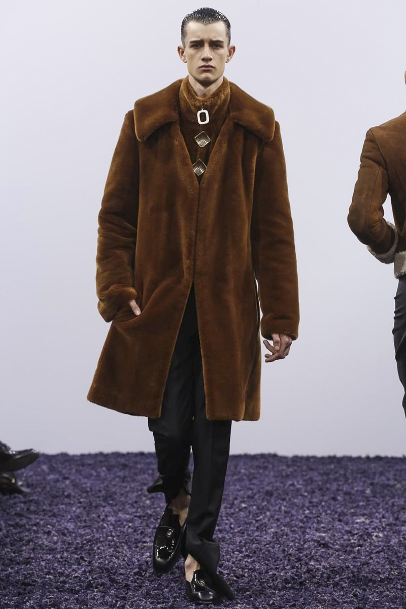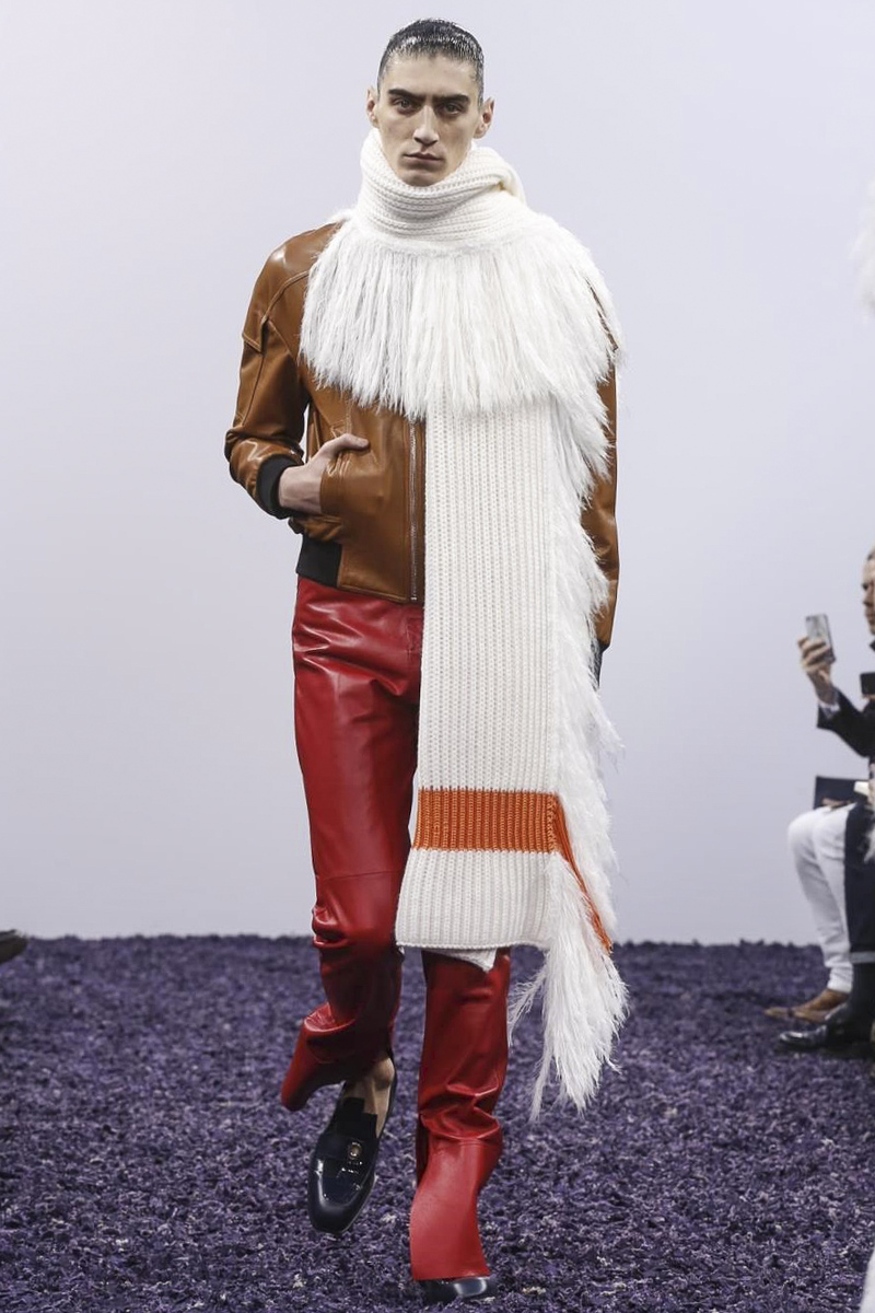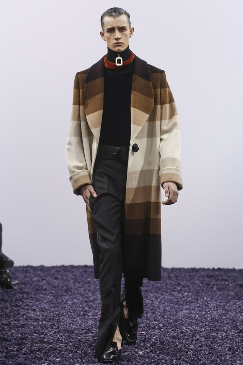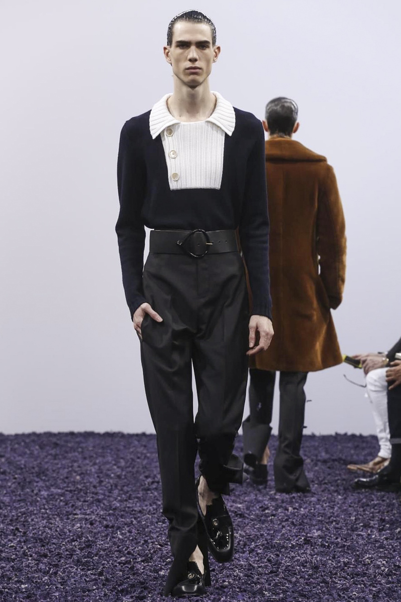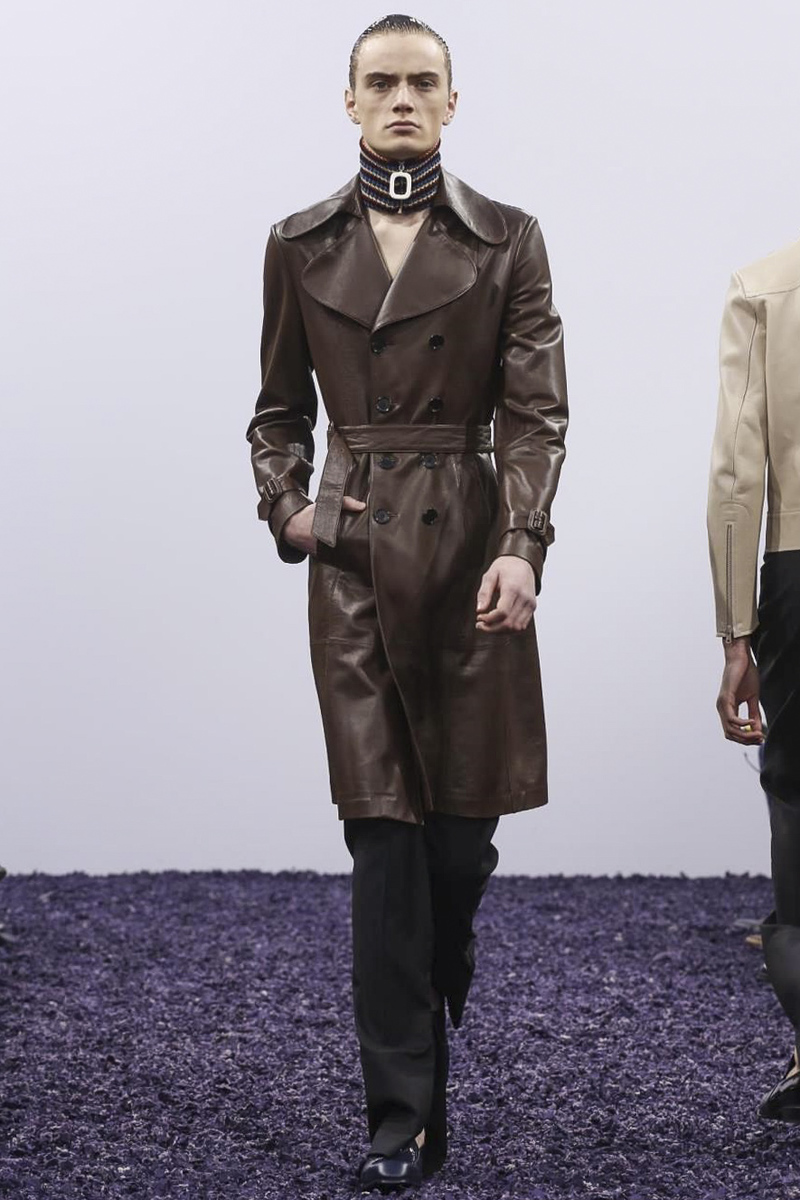 J.W. Anderson’s F/W 2015, home base at the Yeomanry House was laden with a violet crystal-like tapestry made of recycled tires, hinting at the post-apocalyptic show that was about to ensue. Ray Bradbury’s “There will come soft rains” immediately rang to mind depicting a world brought to ruins by Man. In a chat backstage, Anderson mentioned that the “idea felt a little bit apocalyptic…a bit George Orwell”, highlighting the poem that opened the show. Anderson switched his usual Ratatat-style discordant track for a recording of “The Imperfect List” by Big Hard Excellent Fish narrated by Josie Jones — the chilling sobering track that used to open every Morrissey concert. The words to the poem read, “scouse impersonator. silly pathetic girlies. silly pathetic woman. macho dickhead. Bonnie langford. neighbours. lost keys. phoney friend. ungrateful accusing mate. the royal family. stock aitken & waterman. smiling judas.”