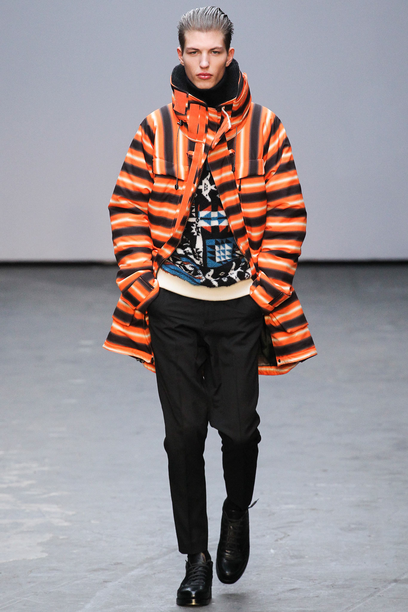 Sometimes, the look of the fashion season doesn’t emerge till the season actually arrives. All this week, all over menswear week, one particular garment has been impossible to miss — the bold black-and-white striped Ashmore overcoat that anchored Casely-Hayford‘s AW14 collection. It’s been on the backs of bloggers, editors, celebrities and stylists, an eloquent illustration of that show’s dramatic impact.