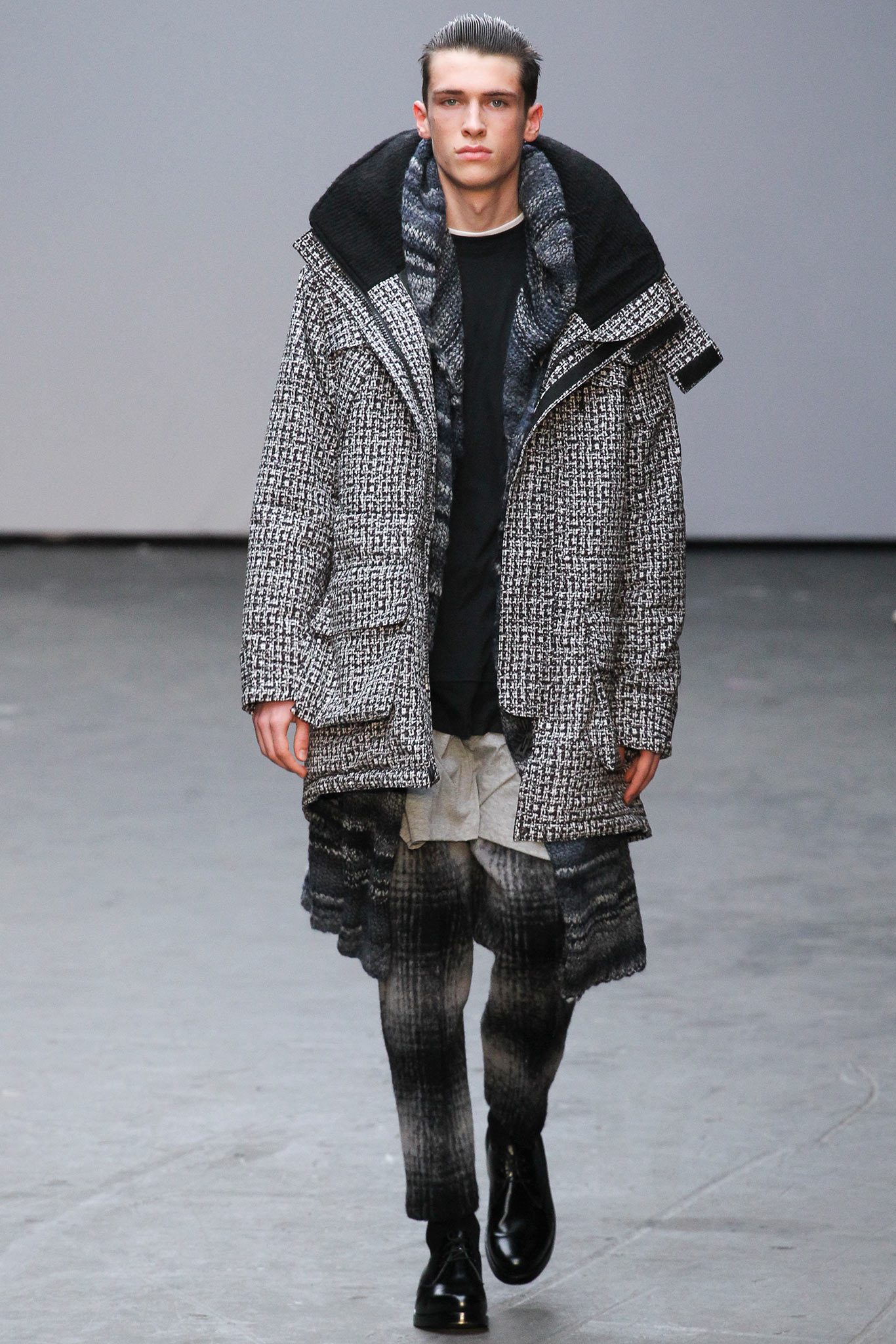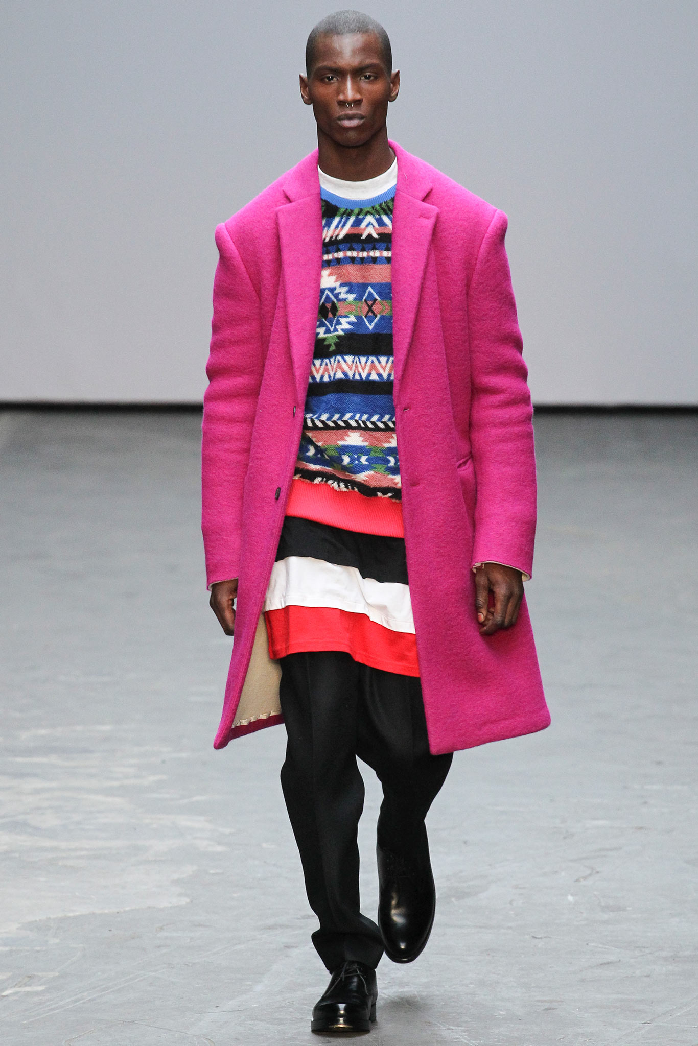 Sometimes, the look of the fashion season doesn’t emerge till the season actually arrives. All this week, all over menswear week, one particular garment has been impossible to miss — the bold black-and-white striped Ashmore overcoat that anchored Casely-Hayford‘s AW14 collection. It’s been on the backs of bloggers, editors, celebrities and stylists, an eloquent illustration of that show’s dramatic impact.