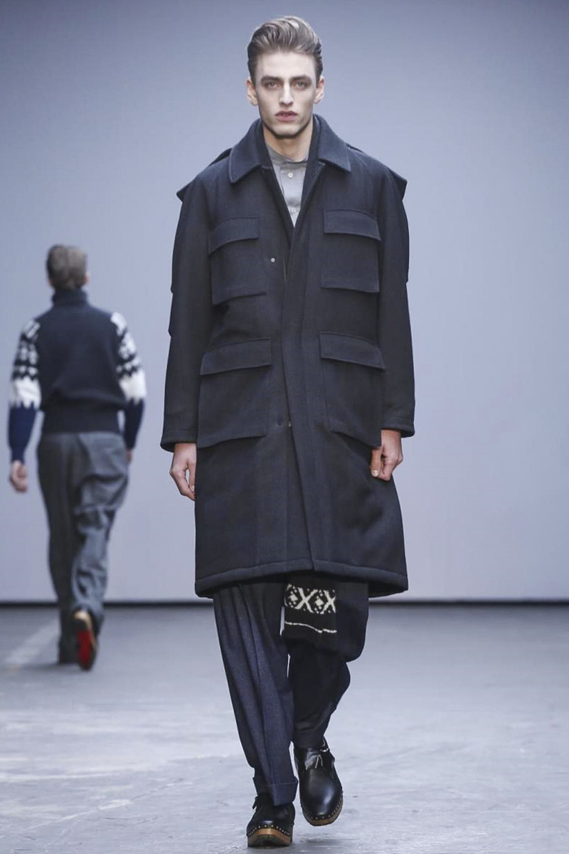 It is no secret that in a few hours the plates are going to shift again. The last day of London Collections: Men is undeniably overshadowed by Galliano’s imminent return to Margiela at the Artisanal collection presentation happening later today. But in a way, it framed the E.Tautz show perfectly.