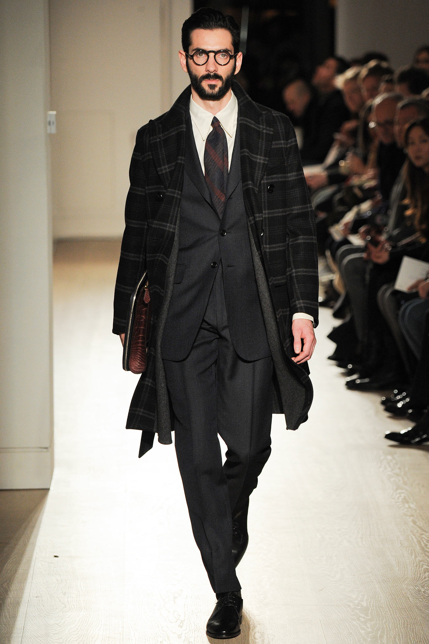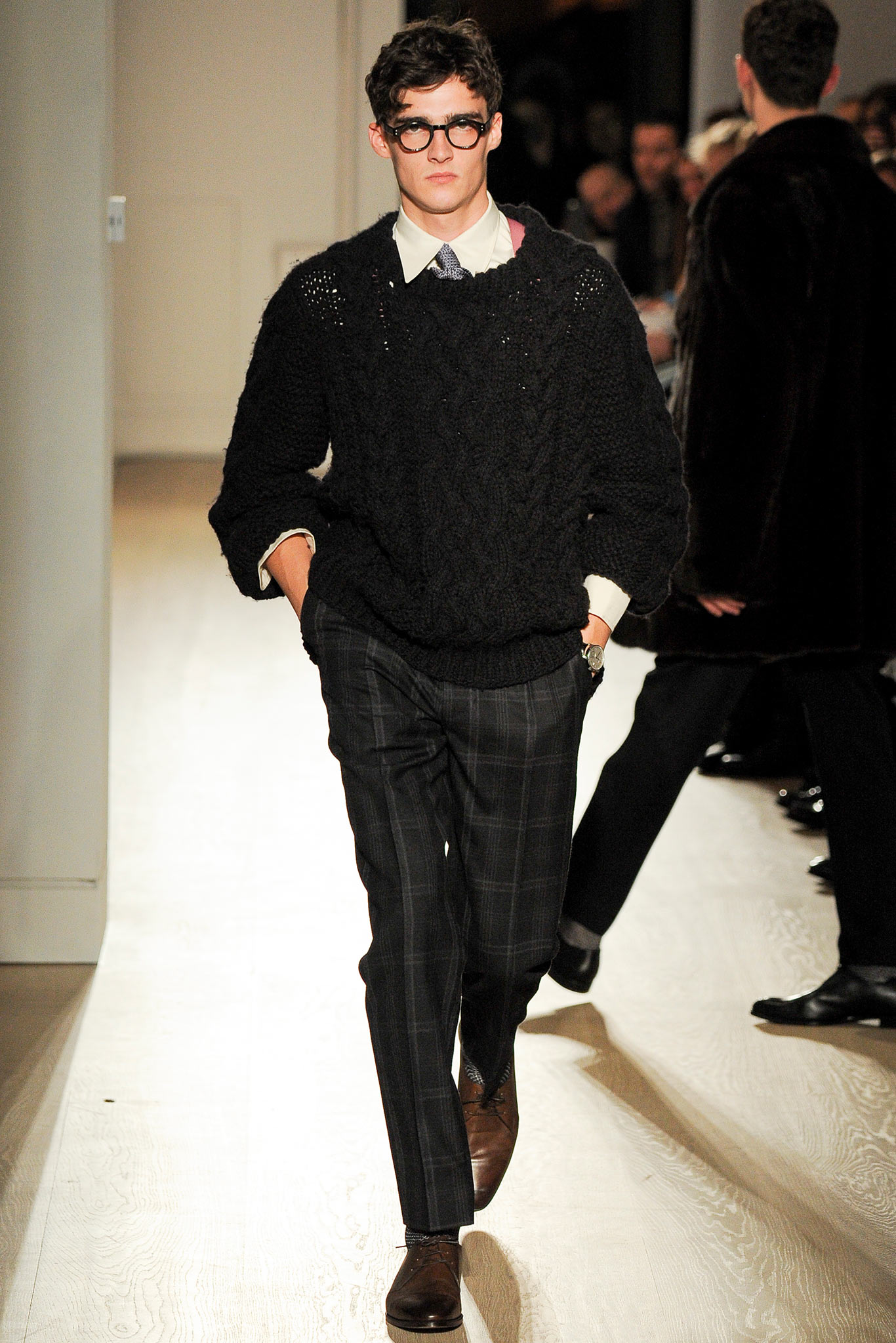 Tailored elegance with retro influence is inspired by Dunhill for presentation at the London Collections: MEN, don fur applications, pictures, velvet, corduroy and plaid prints to realize a classic collection.