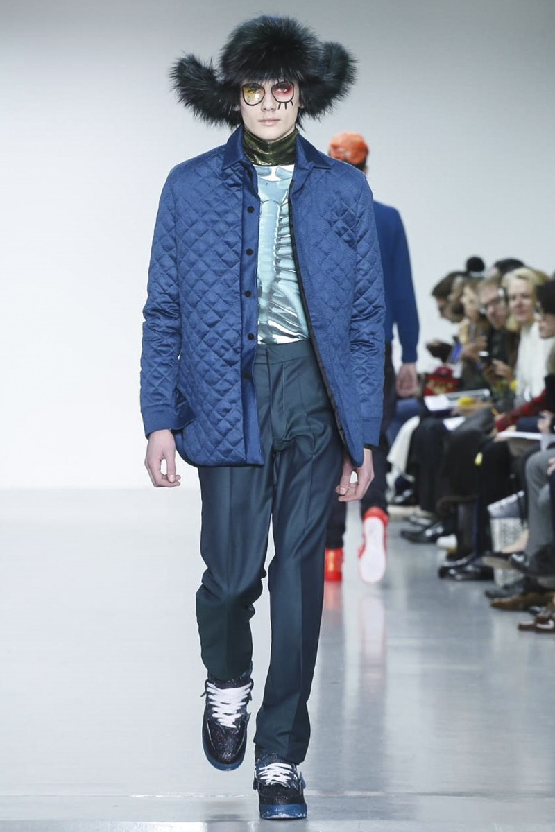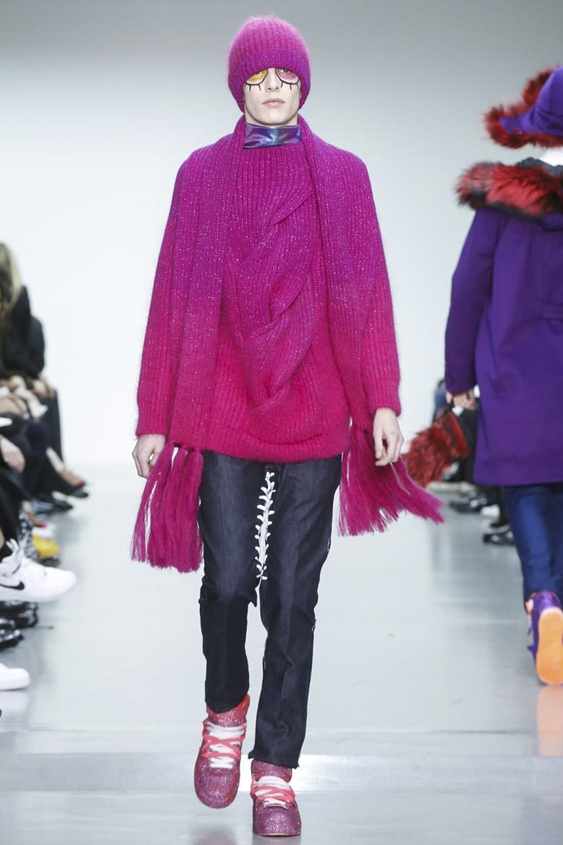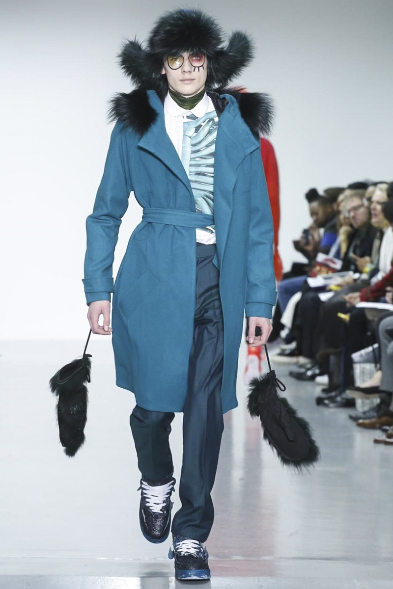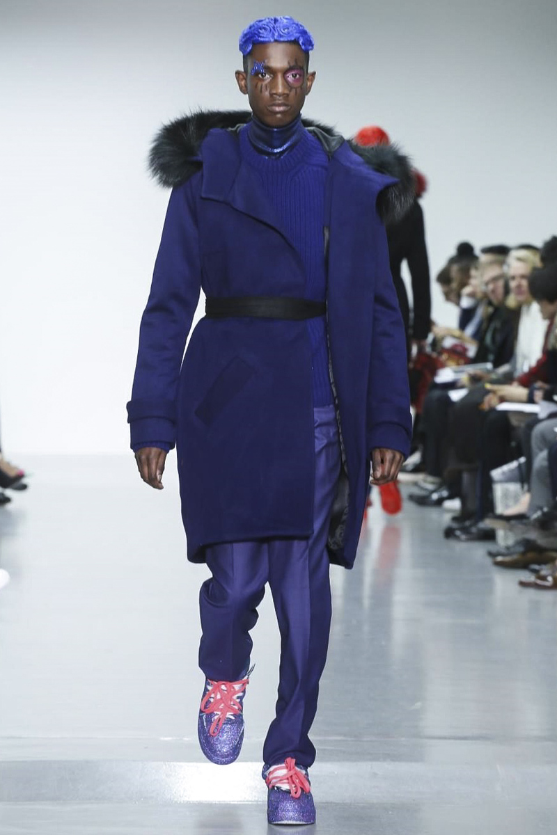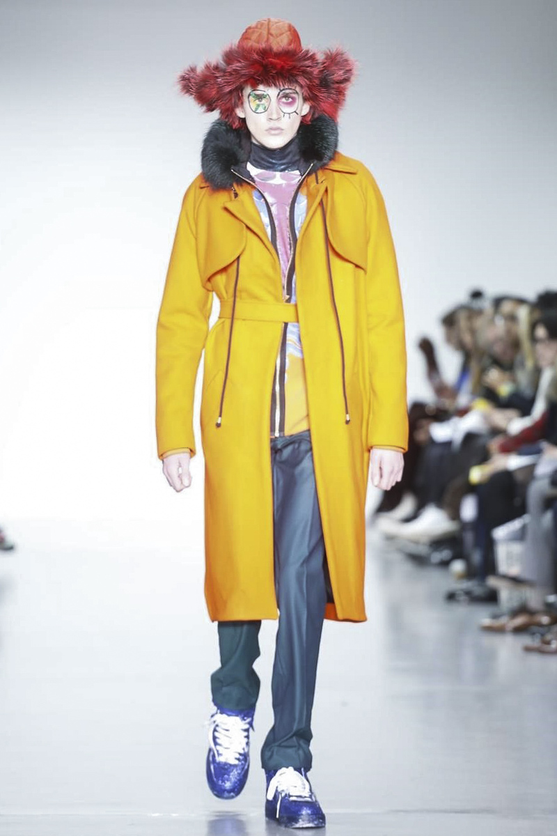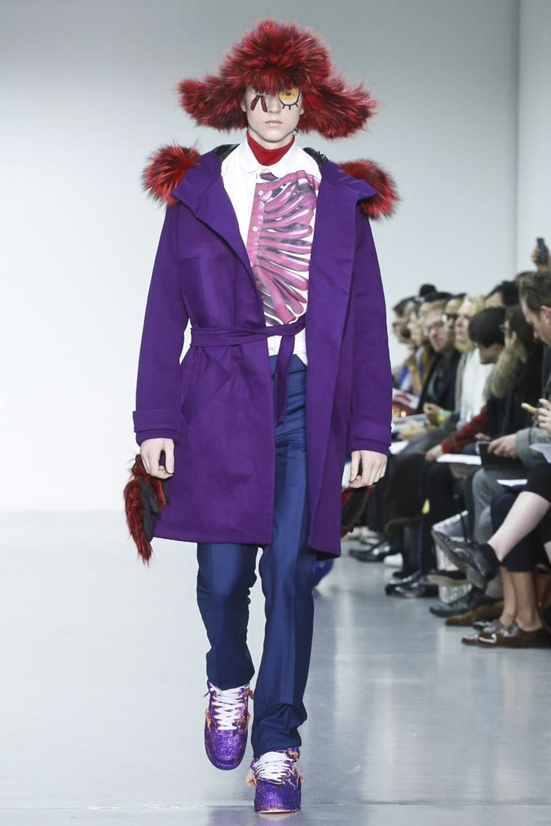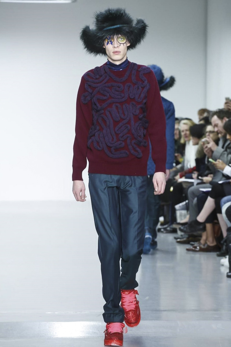 Post-Pop kitsch to the nth degree – Katie Eary’s show left the audience reeling back slightly during the blackout just before the curtain call. Owing the acid-toned collection to two of her favorite contemporary artists, Jeff Koons and Kaws, it became clear why the image on the invite – which also happened to be the leading motif today – was a crossbreed between KAWS iconic brain sculptures and Koons’ balloons. It was quite the antithesis to the sentimentality of Craig Green’s collection that featured immediately before Eary’s.