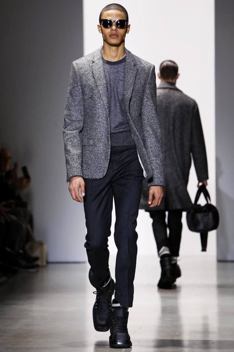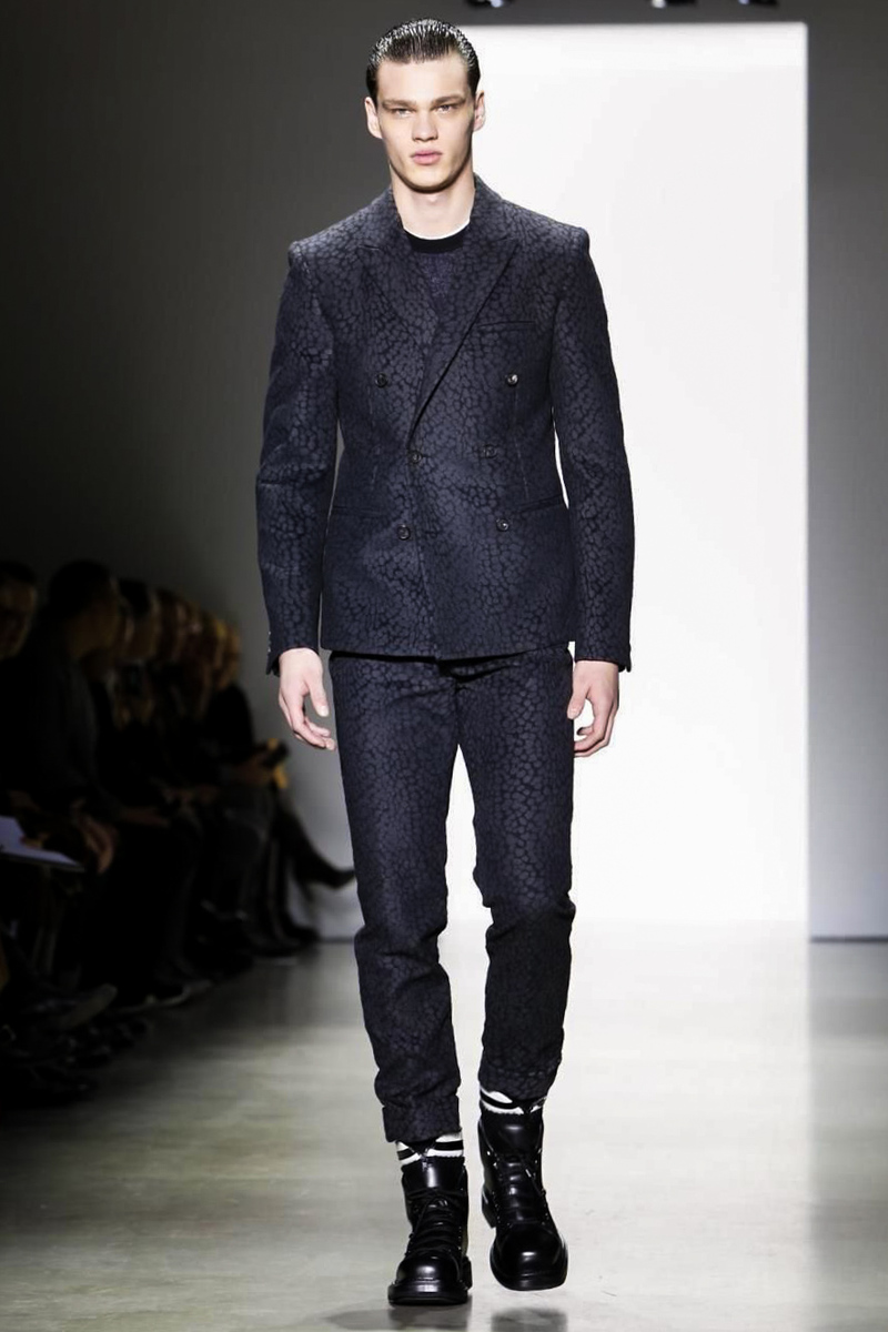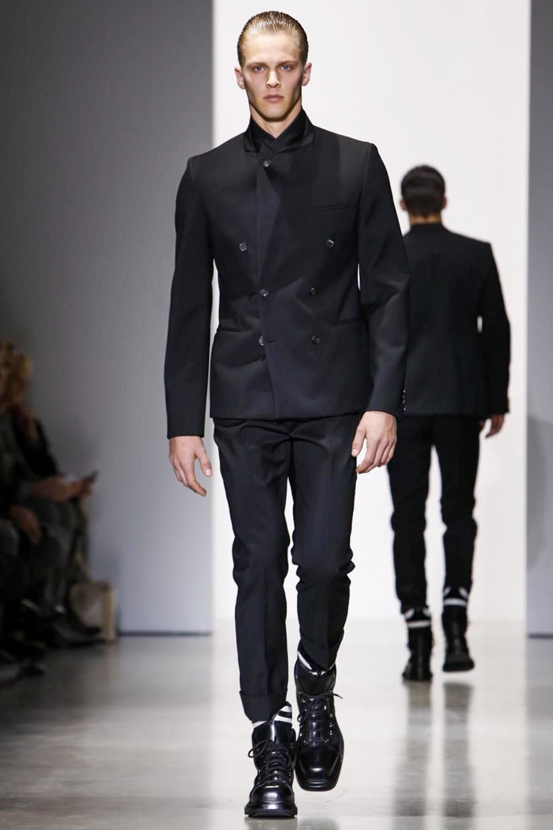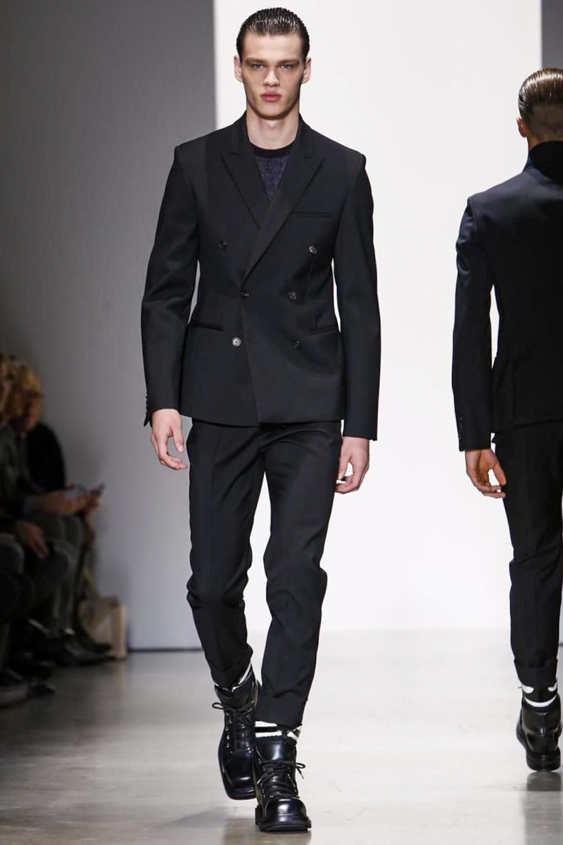 A post Sons of Anarchy Charlie Hunnam looked sharp in his Calvin Klein suit as the actor took in designer Italo Zucchelli’s menswear offering for the brand on Sunday. But if there was little in this show that Hunnam’s biker boss character would have related to, he was in the minority, as Zucchelli produced a modern and masculine collection that had an undercurrent of animal magnetism as well as some smart military rigor.