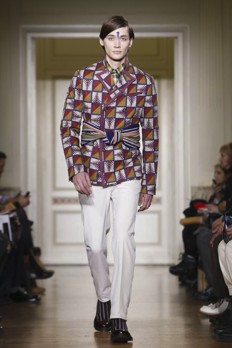 Stella Jean‘s Indian maharaja has strictly European taste when it comes to silhouettes. No matter how far he disappears into the Himalayas, he is true to Italian sartorial style.