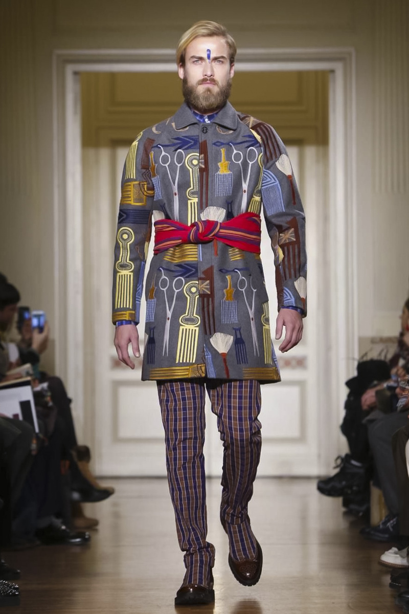 Involving, for the most part, Italian and British sartorial looks like tuxedo robes, hunting jackets and tapered pants, the patterns were widely Indian in symbolism with a “message of revolution,” Jean told NOW FASHION.