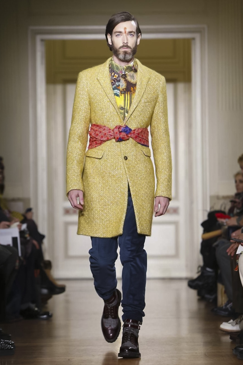 A story of enlightenment, the prints talk of travels through India’s ancient Buddhist and colonial monuments. The winter man discovers injustice and counter-colonization and eventually realizes that it is time for sweeping reform, much like Mahatma Gandhi’s peaceful revolution against British colonialism. Almost all of the ensembles were tied together by a Himalayan obi belt or cummerbund — the hallmark of the collection.