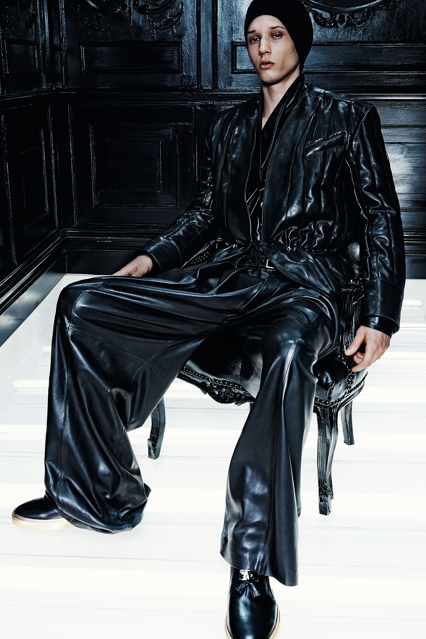 This masculine silhouette—broad shoulders, belted waists and fluid, baggy pants—helps to give classics like double-breasted jackets, overcoats and smoking jackets a modern edge. Influences from today’s music and street cultures—which you can spot in the black cashmere beanies, drop-crotch pants and abundance of motorcycle jackets—remain, of course, key to the signature look of Balmain Homme.