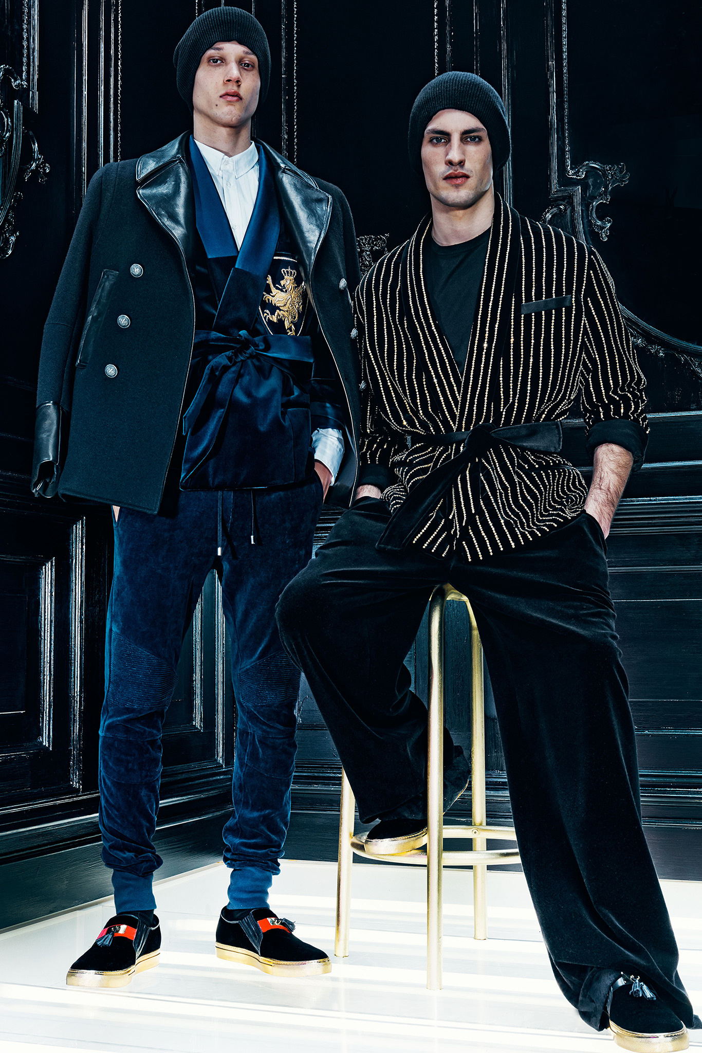 Balmain Fall/Winter 2015 For this collection, I was inspired by how I’m seeing today’s new generation dress for the evening. In all parts of the world—from Los Angeles to Hong Kong, with stops in Paris, London, Dubai and the other traditional and rising fashion capitals along the way — I’ve been noticing what you could call the evolution of the ‘new aristocrats.’ Unlike traditional aristocrats, this diverse and inclusive grouping of stylish men knows how to confidently blend together looks pulled from both their fathers’ wardrobes and the streets.
