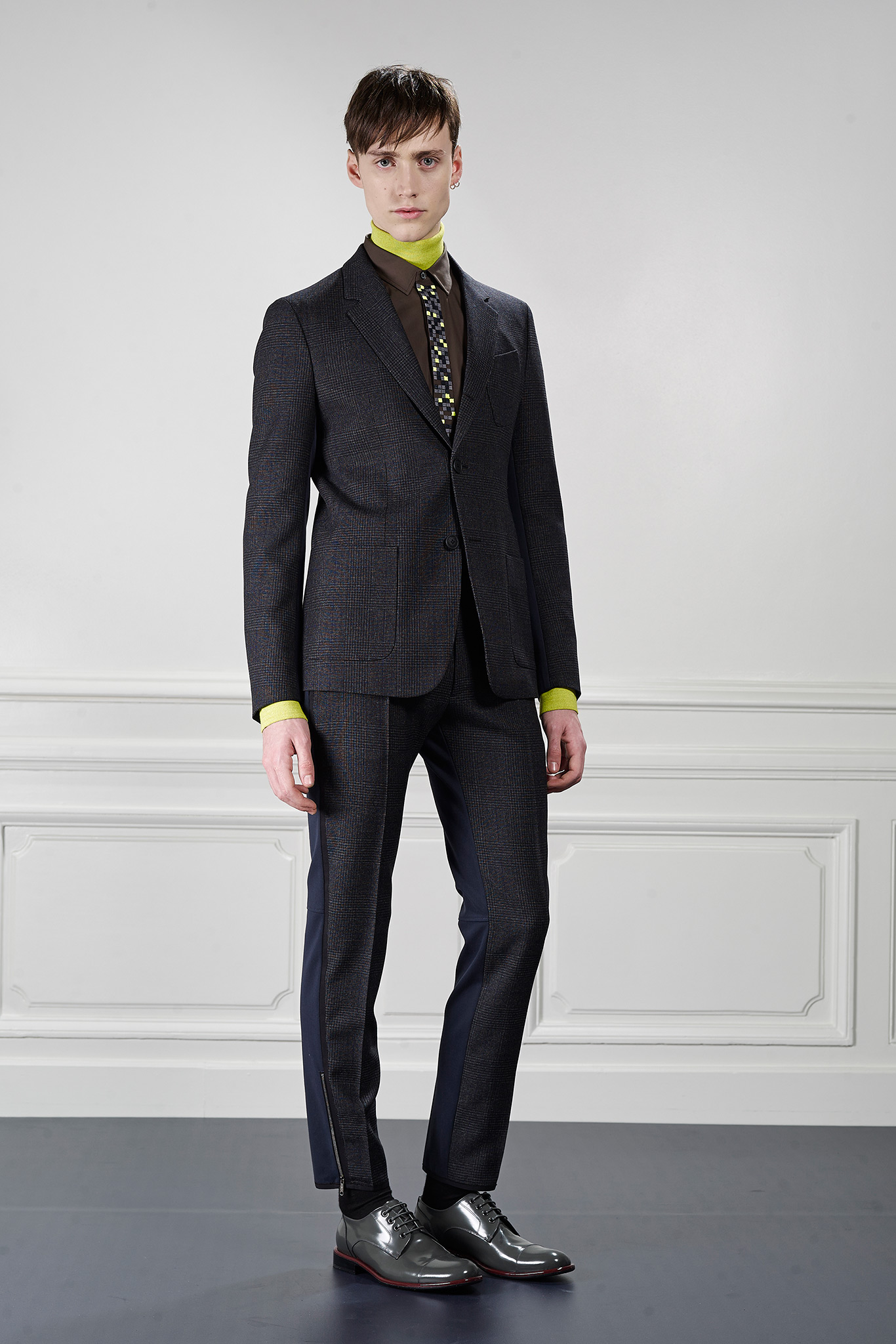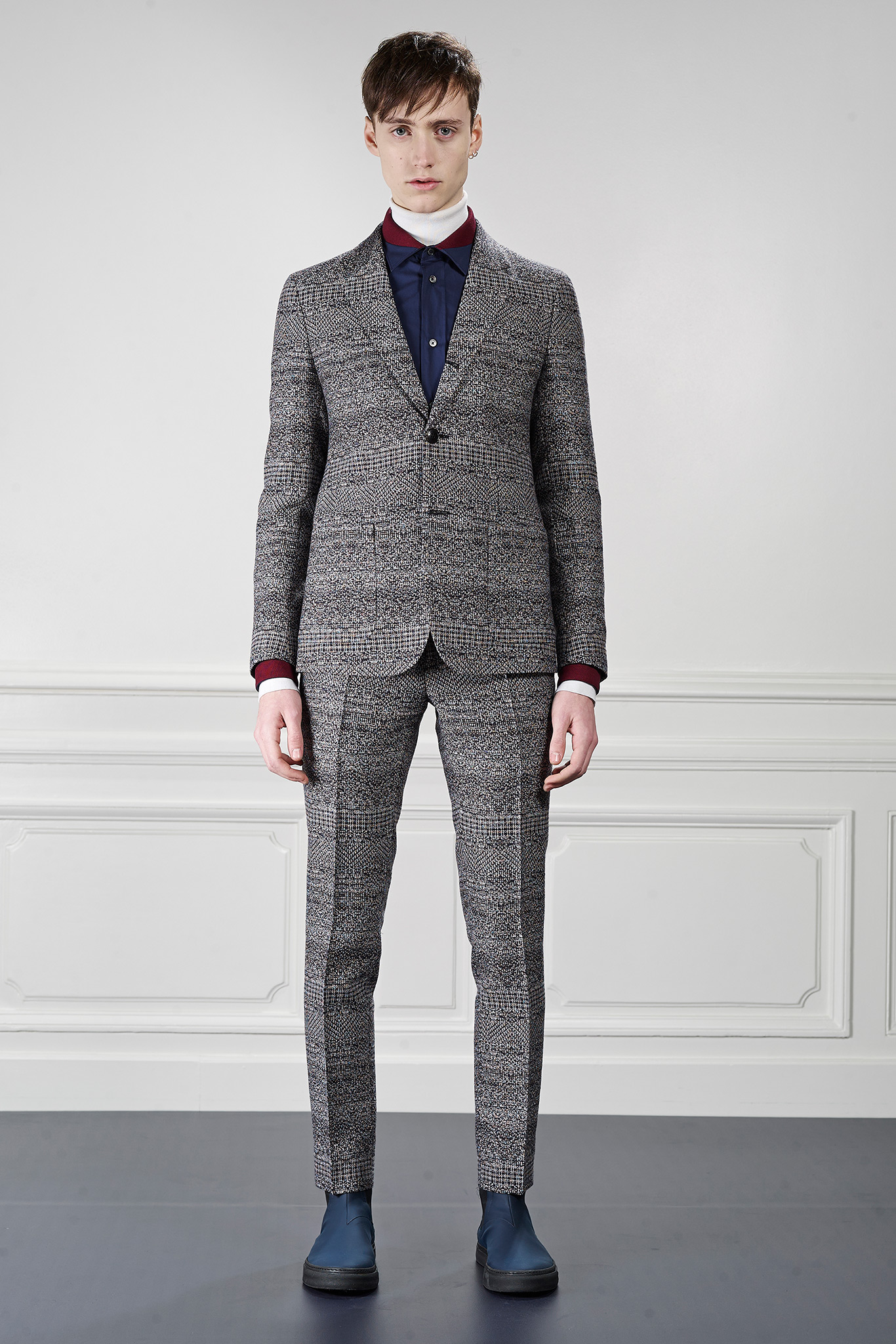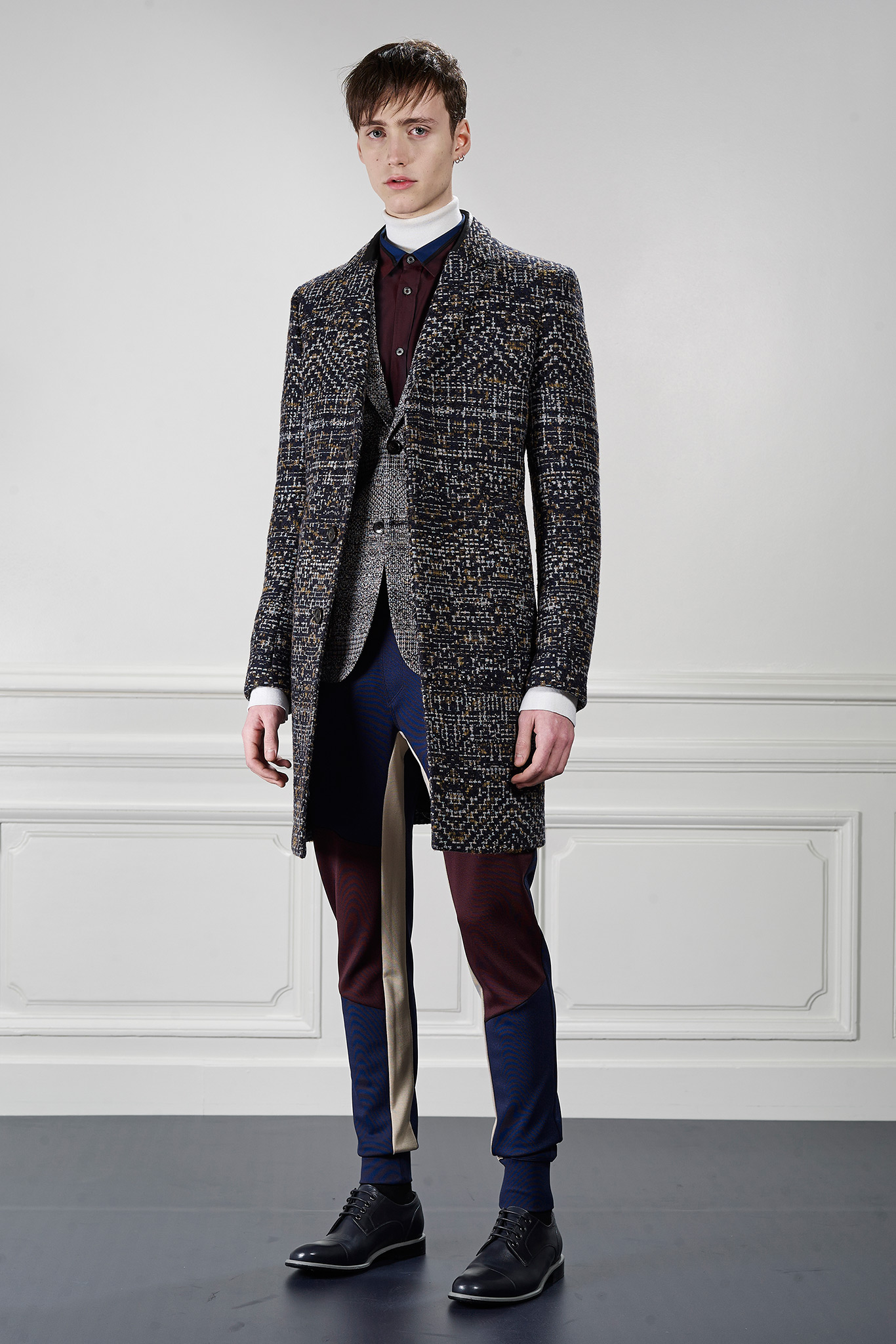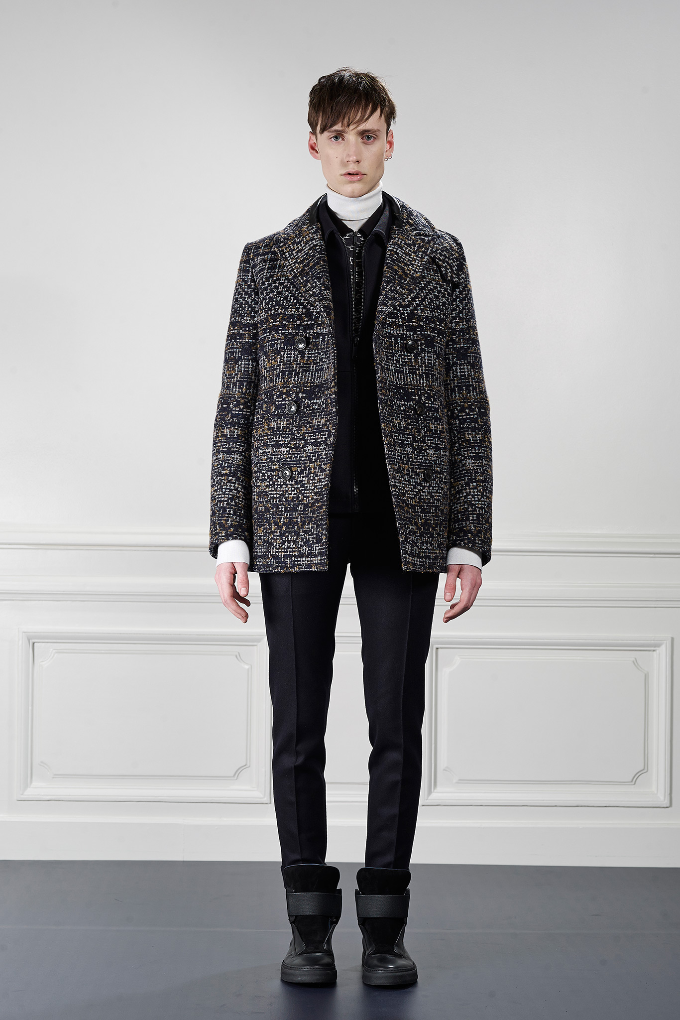 Viktor&Rolf’s Monsieur Fall/Winter 2015 collection revitalizes winter sportswear with an infusion of active tweed. Merging the traditional with the digital, tweed is upgraded with a contemporary pixelation technique that creates a dynamic textural story and a key element of Fall/Winter 2015 season.