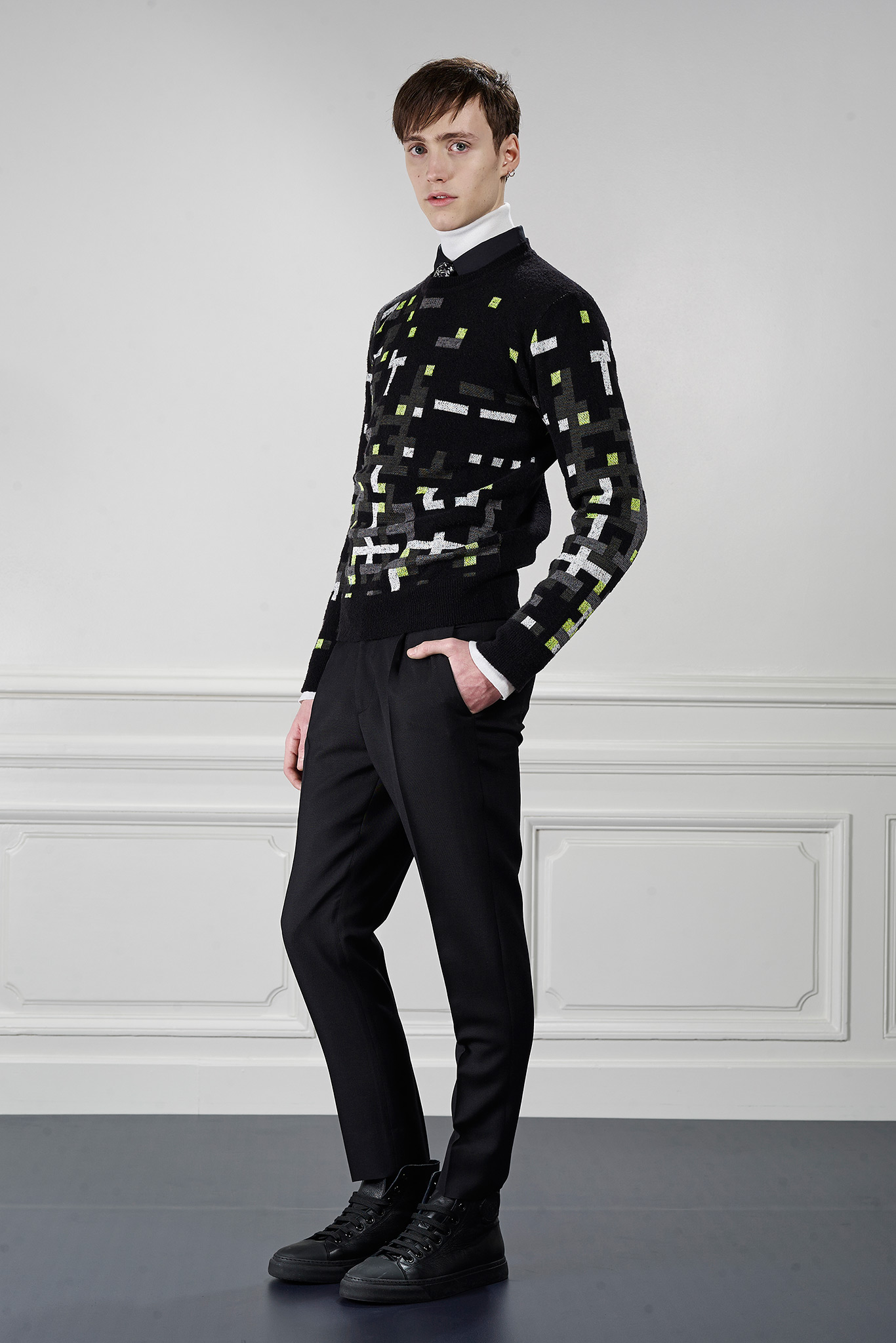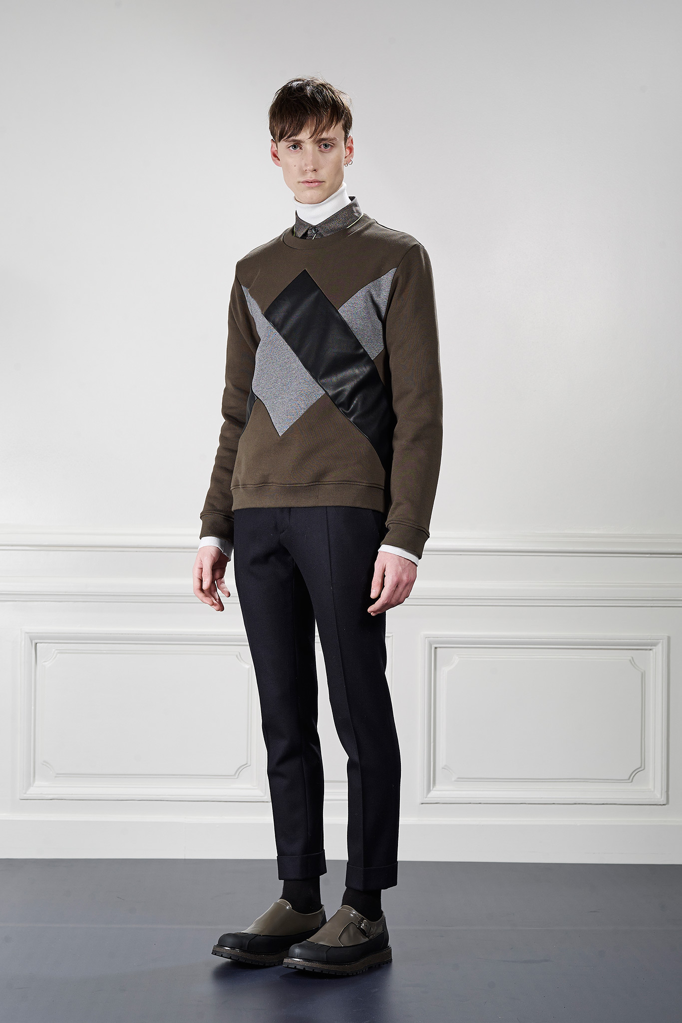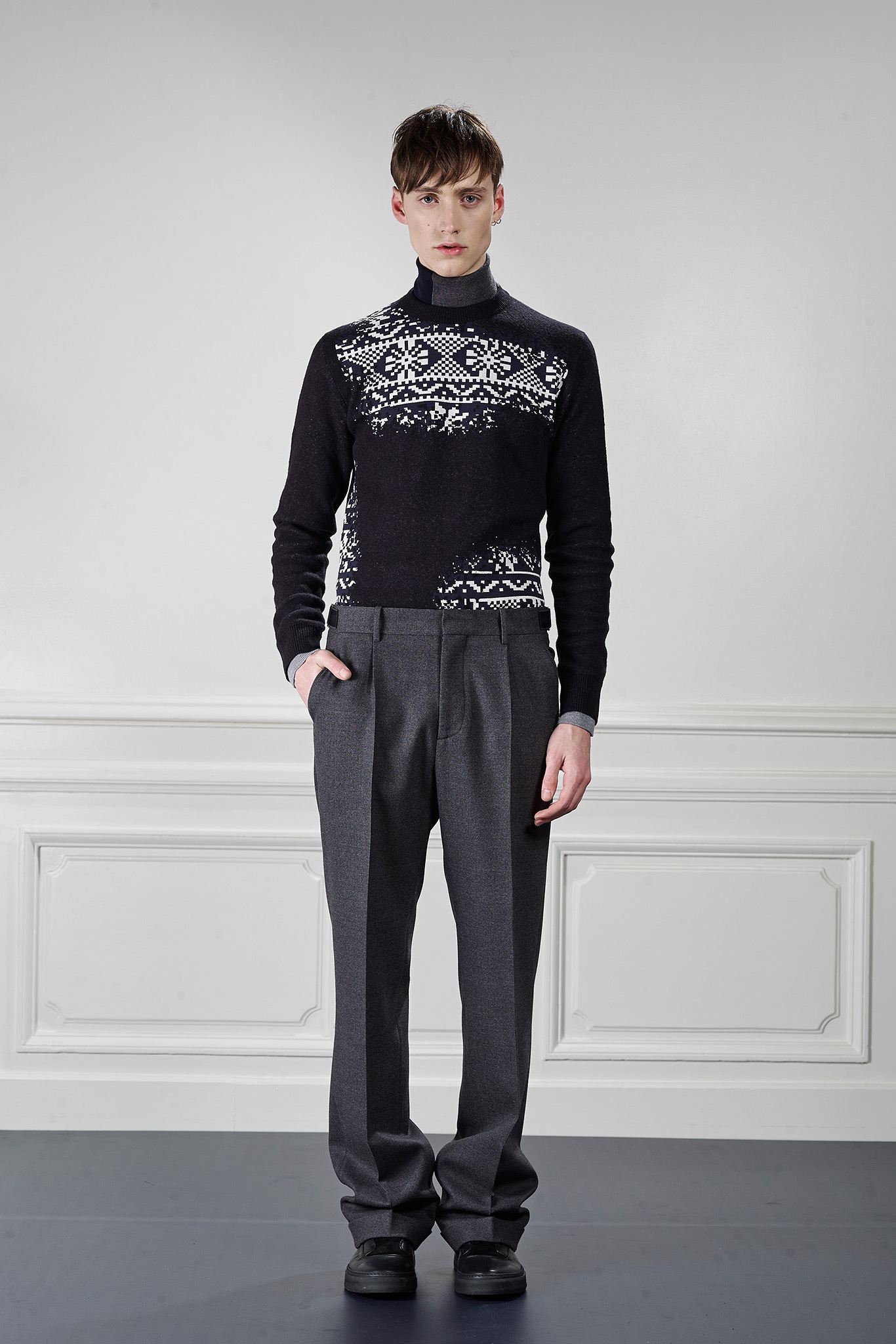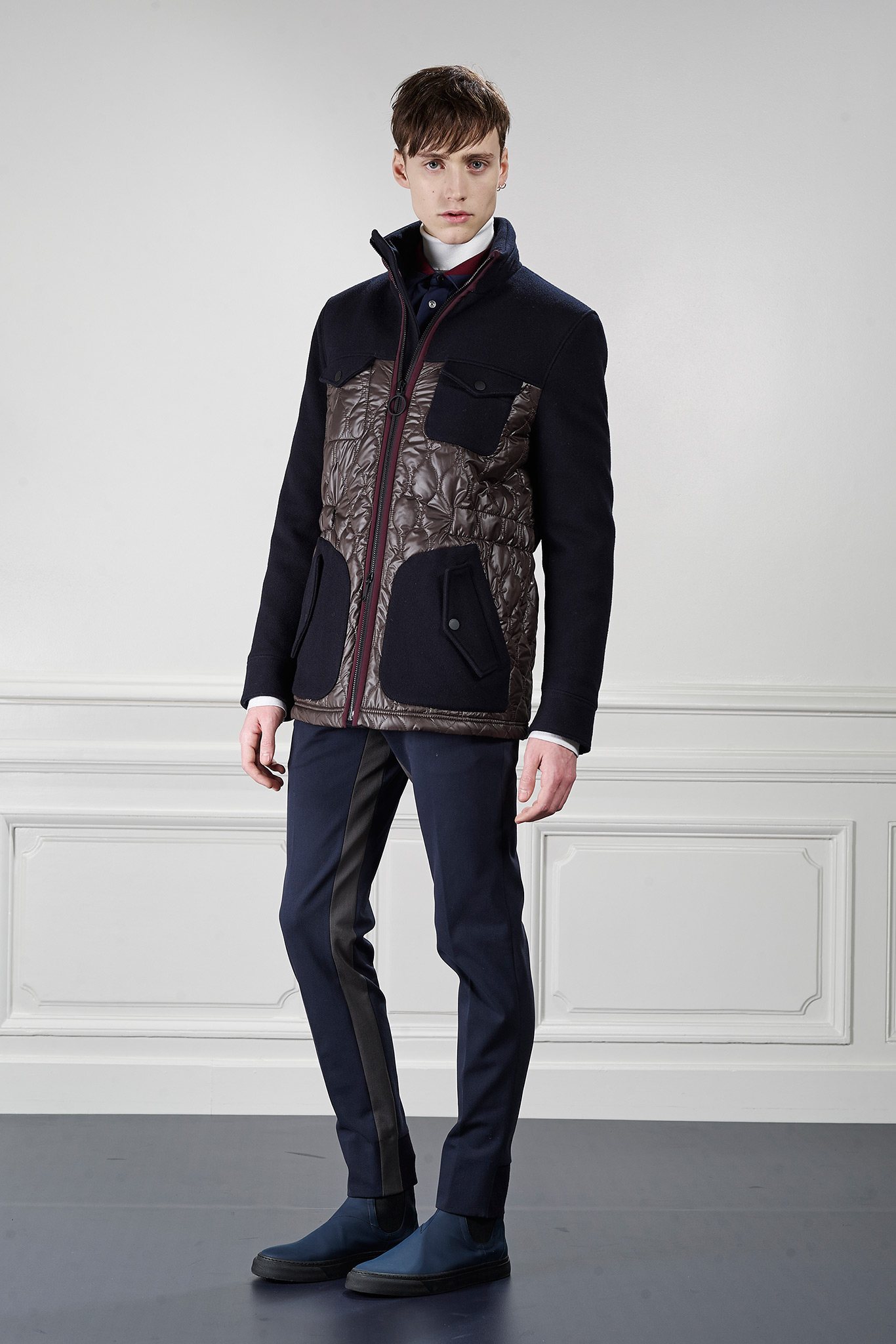 Viktor&Rolf’s Monsieur Fall/Winter 2015 collection revitalizes winter sportswear with an infusion of active tweed. Merging the traditional with the digital, tweed is upgraded with a contemporary pixelation technique that creates a dynamic textural story and a key element of Fall/Winter 2015 season.