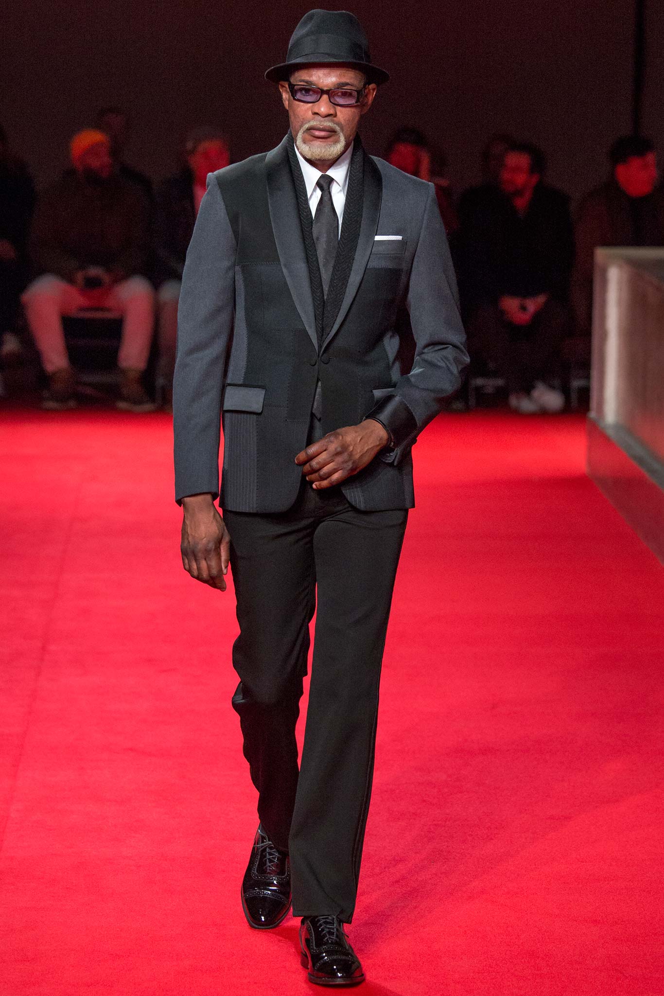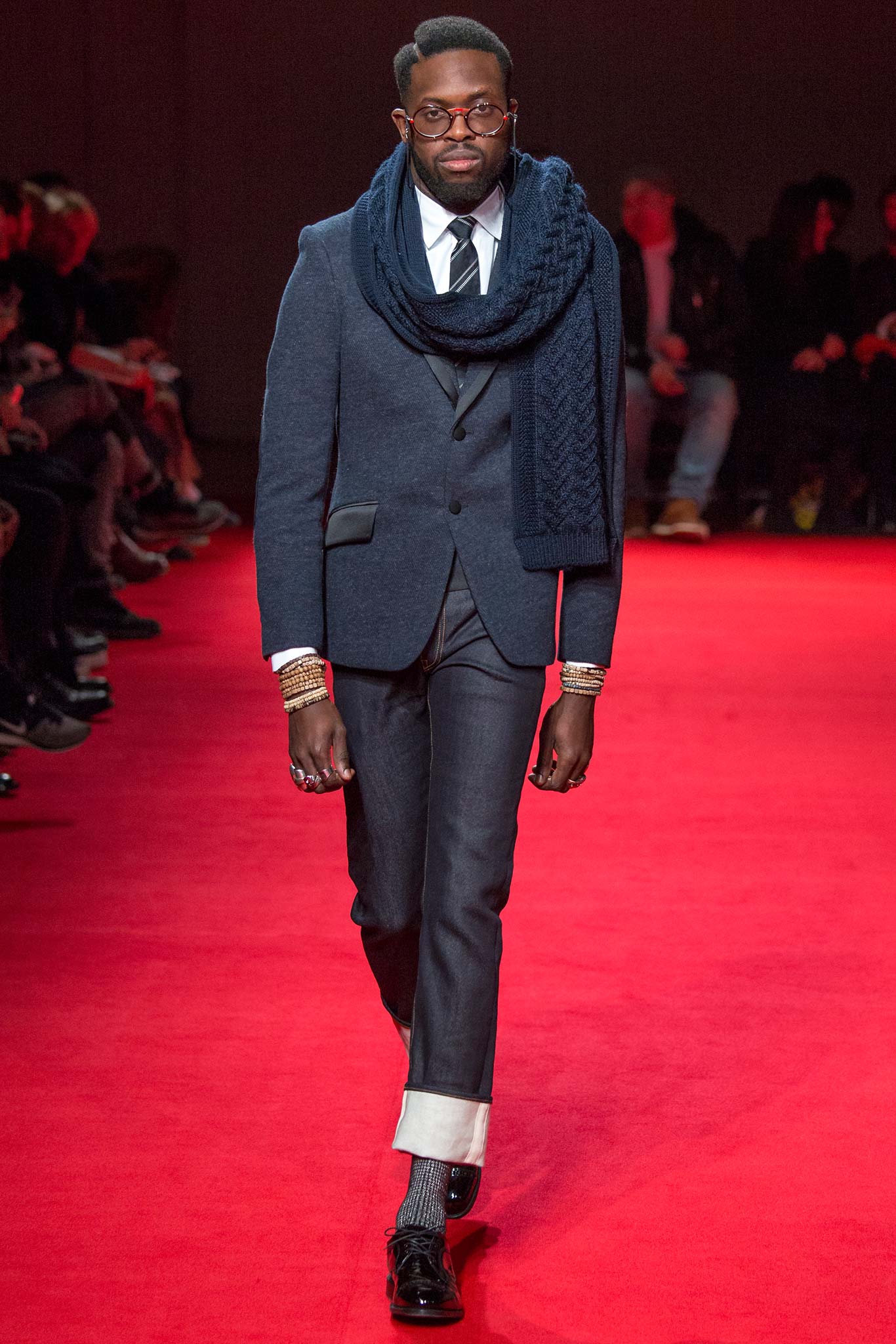 Long has the Japanese designer been working the sartorial into the rough, but here it felt like the reverse. The piecing that comes with the territory appeared, integrated into contrasting bias and along hemlines, then creeping up to cover the entire surface of tuxedo jackets. As a whole suit, the patchwork — in varying degrees of luster, black on black — was the perfect counterpoint to the tuxedo stripe running down the side of the leg. Of course, Watanabe’s surgical precision in assembly and tailoring is capital to the endeavor. As always, the result was fascinating to take in. “Can’t take my eyes off you,” as John Lloyd Young sang.