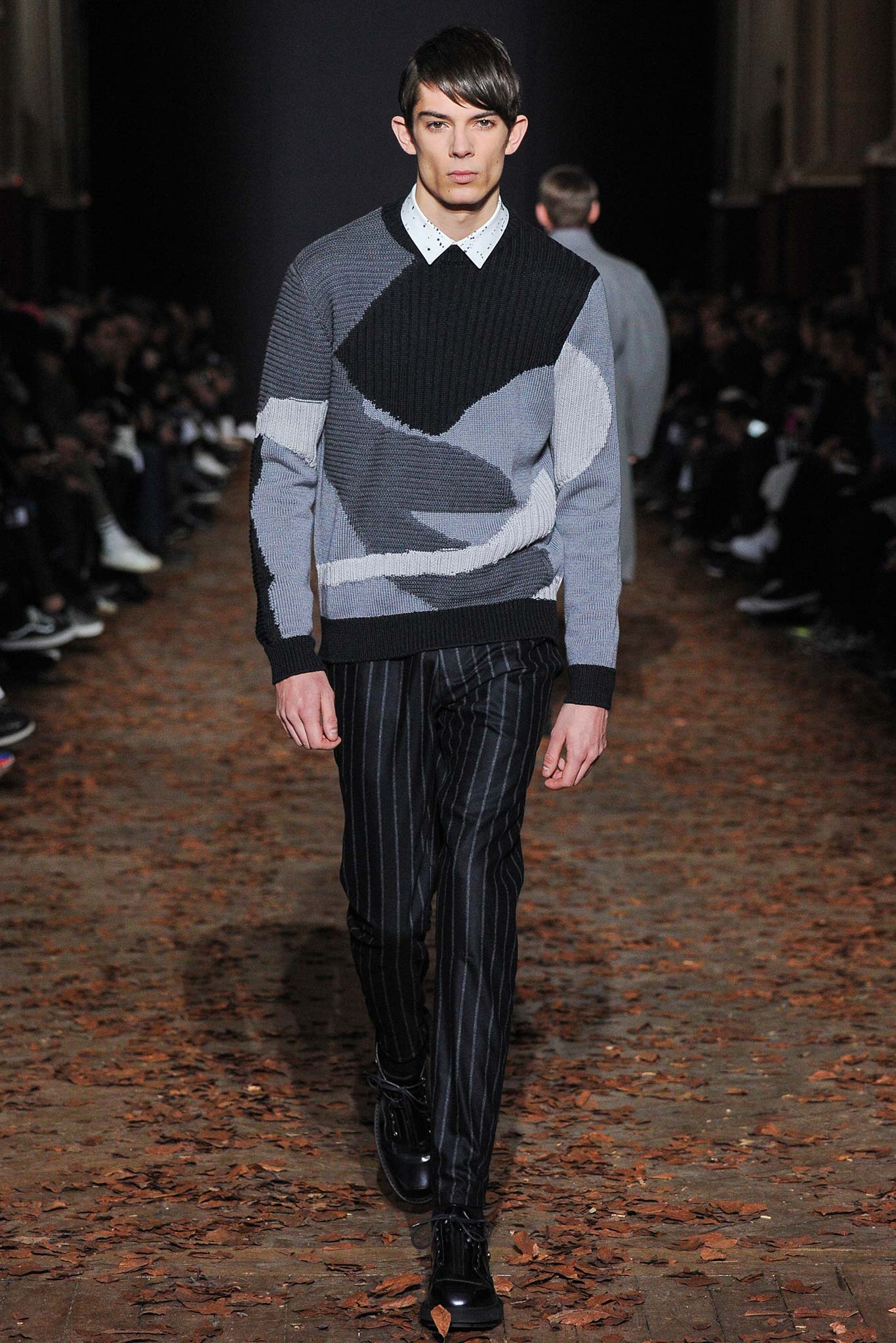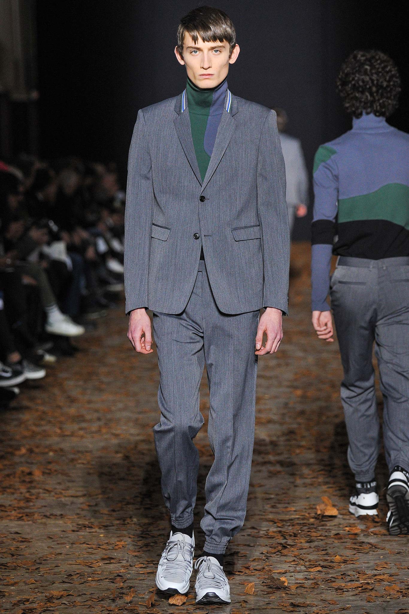 Adding its iconic details of pop art, Kris Van Assche presents a collection where the gray winter are the primary color two-piece suits, light sweaters, turtlenecks and oversize jackets.