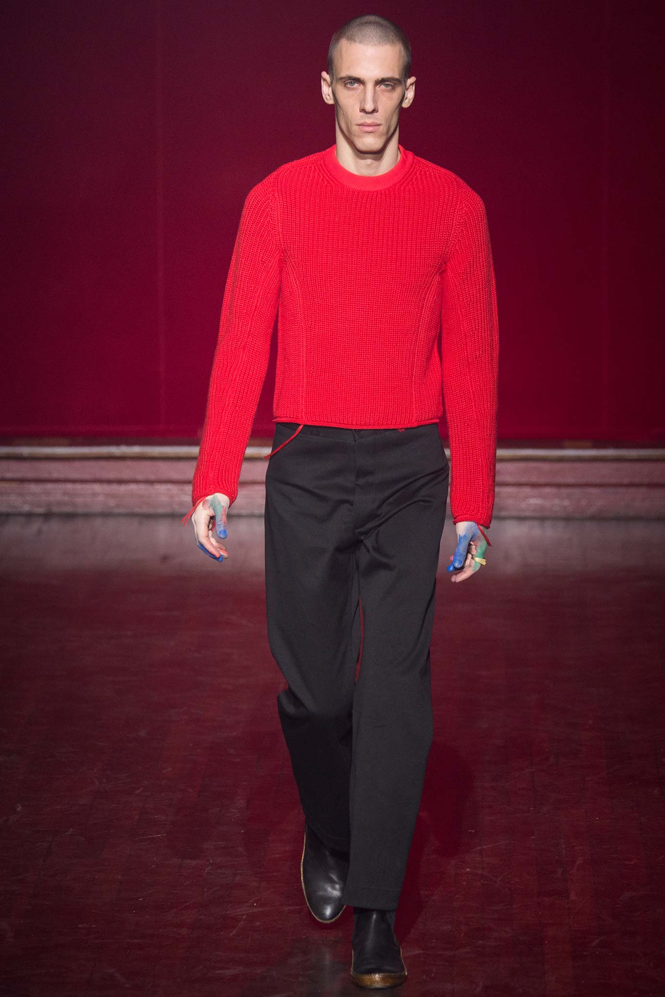 Committed to diversity of silhouettes, the new era of Maison Martin Margiela in his men’s collection F/W 15-16 also proposes primary colors on fur coats, baggy pants, long sleeves, fonts and some necks “V”.