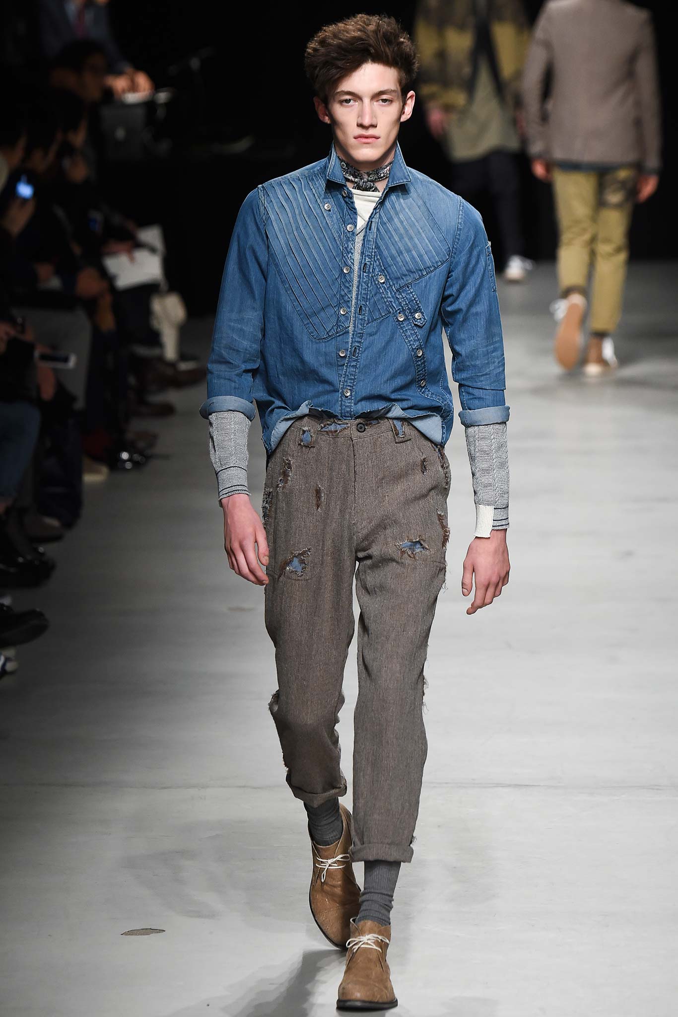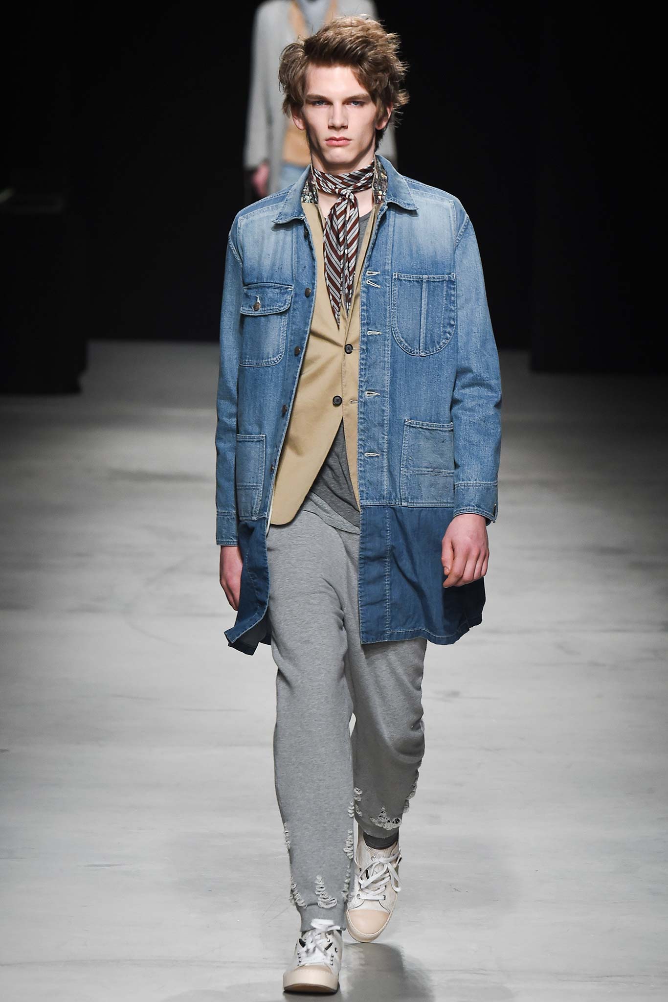 Demonstrating great skill in combining materials, Miharayasuhiro presents its winter collection at Fashion Week in Paris, combining denim with ethereal finest materials such as knits and wool long coats in shades like camel and gray.