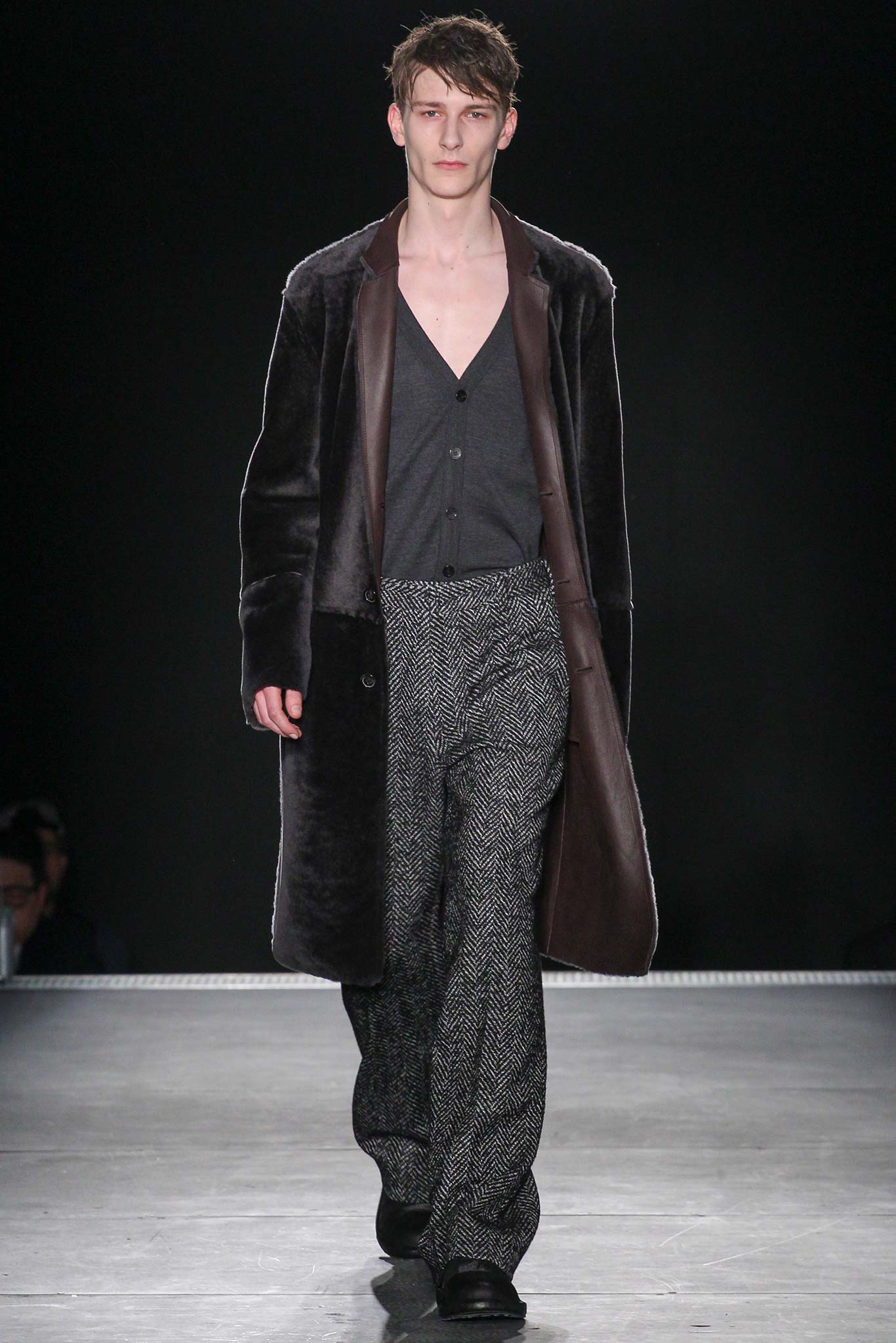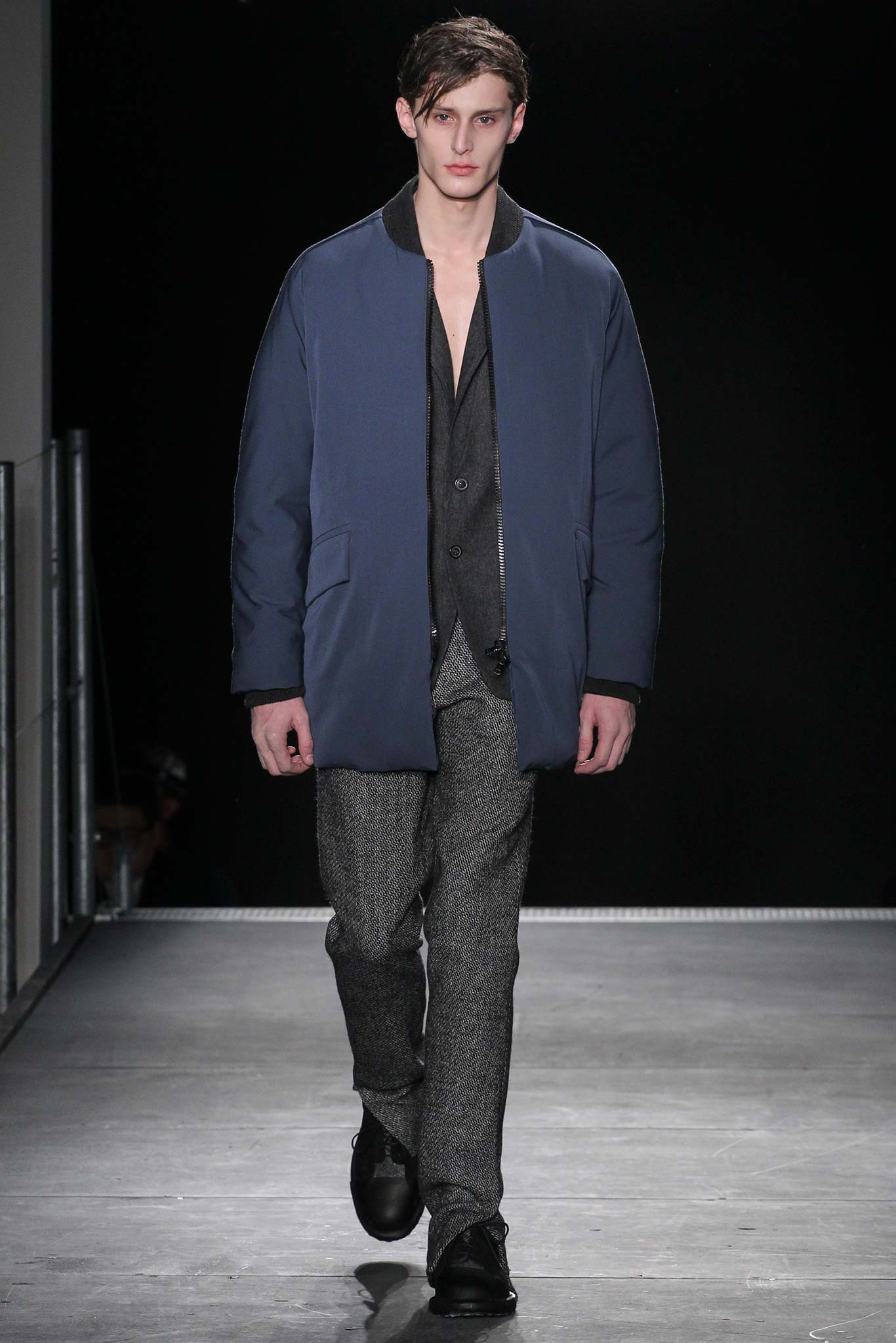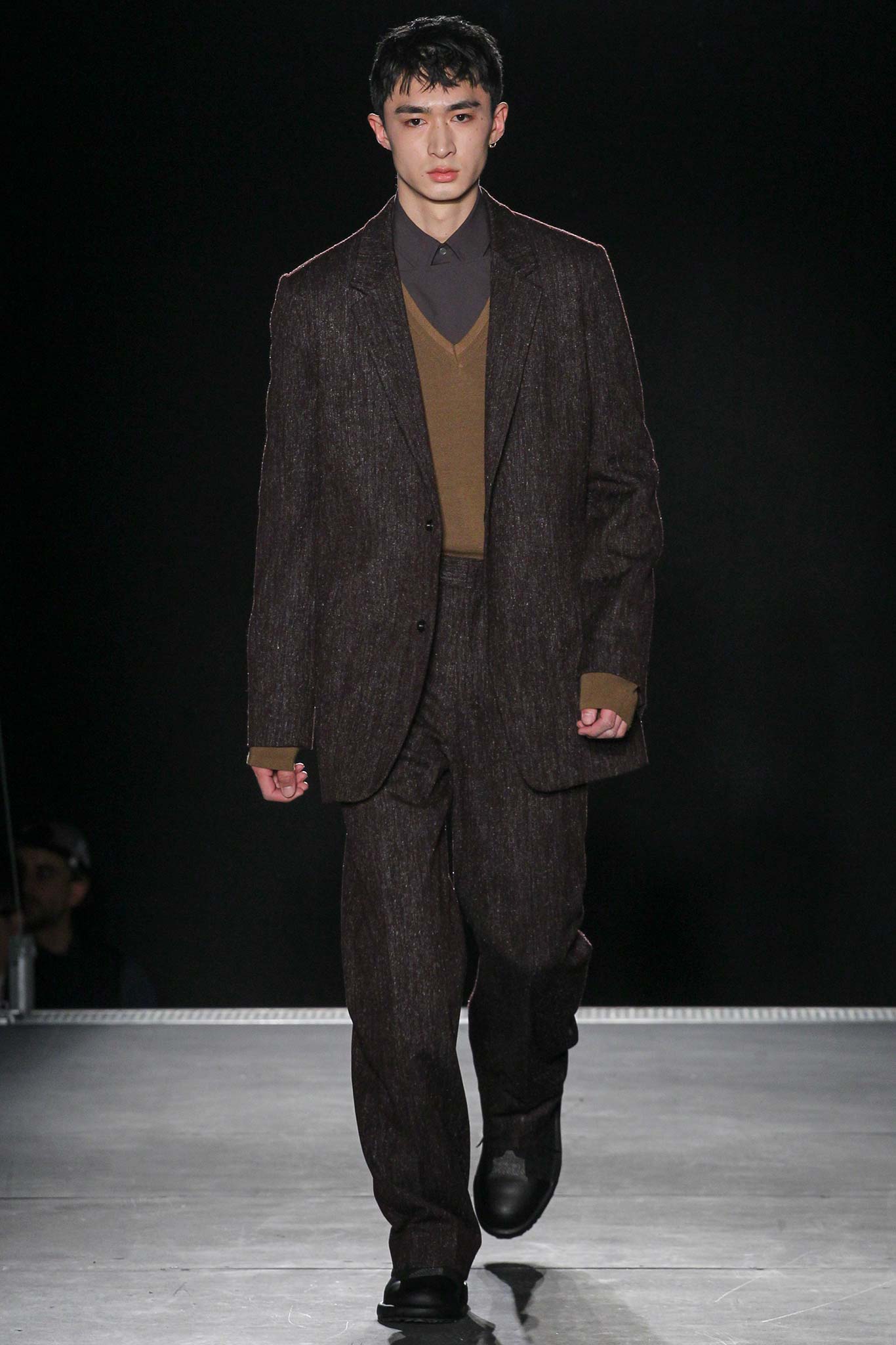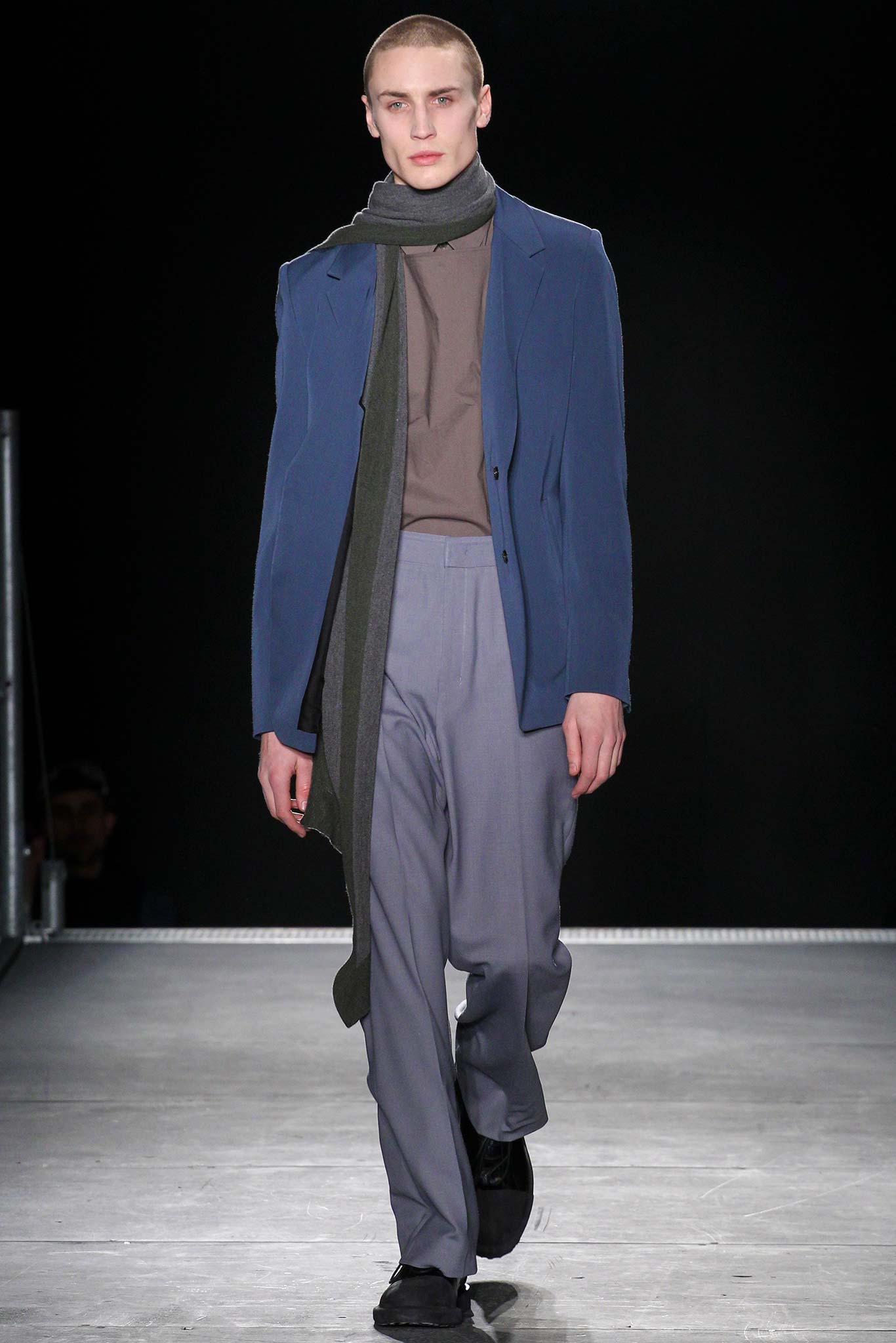 Among blues, grays, blacks and browns, Wooyoungmi presents the new uniform relaxed and elegant at the same time modern man: relaxed silhouettes with precise cuts in everyday clothes of wool and cotton own seasonal colors and soft textures.