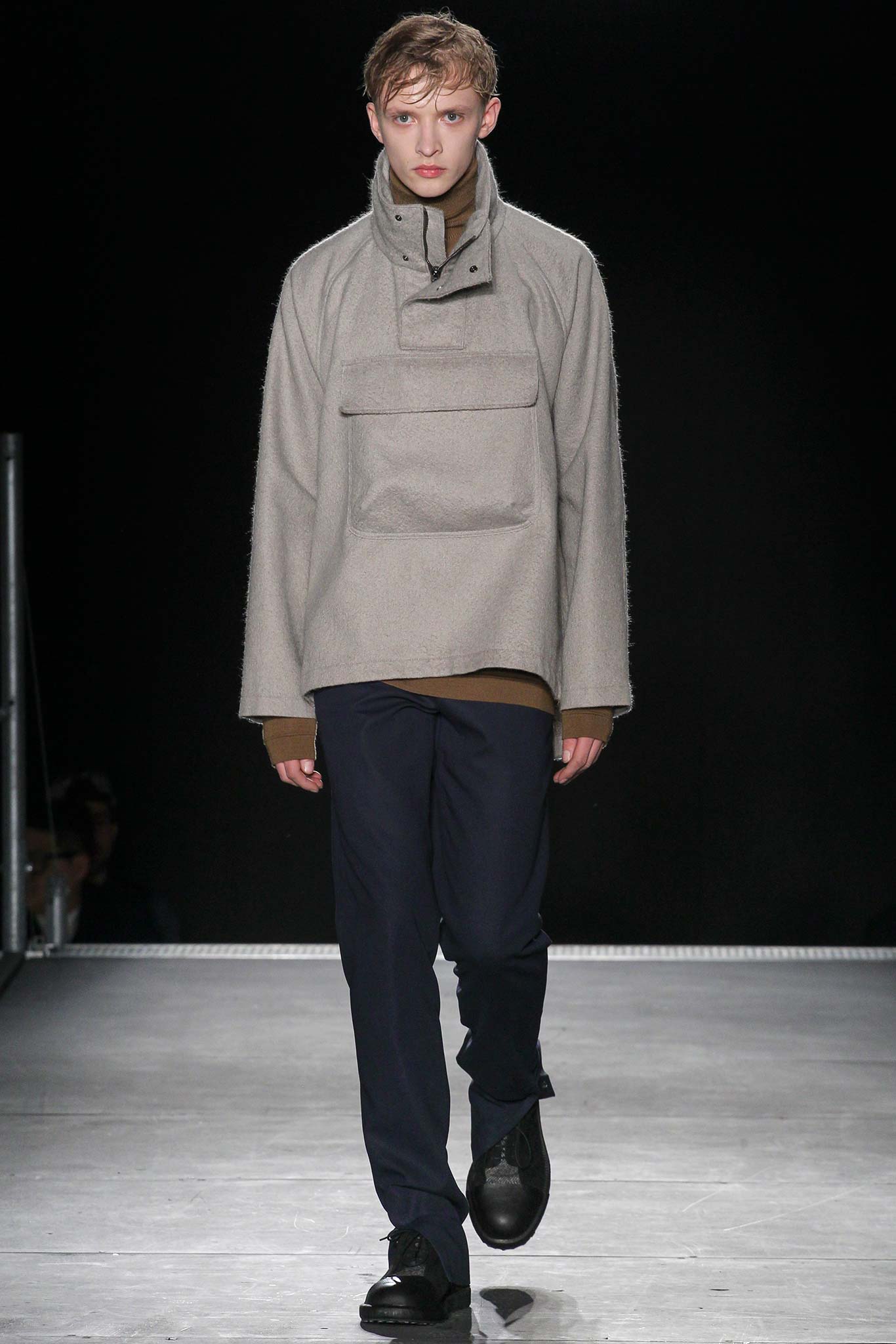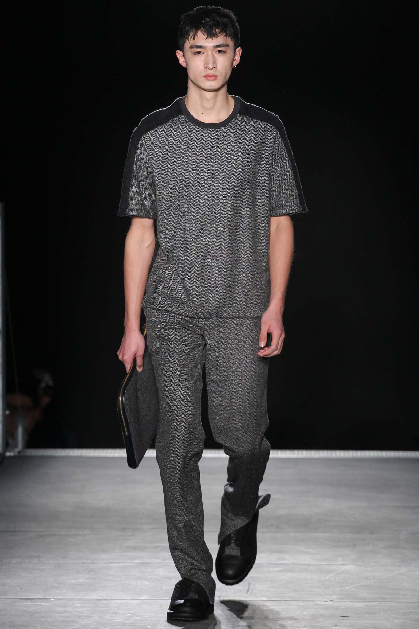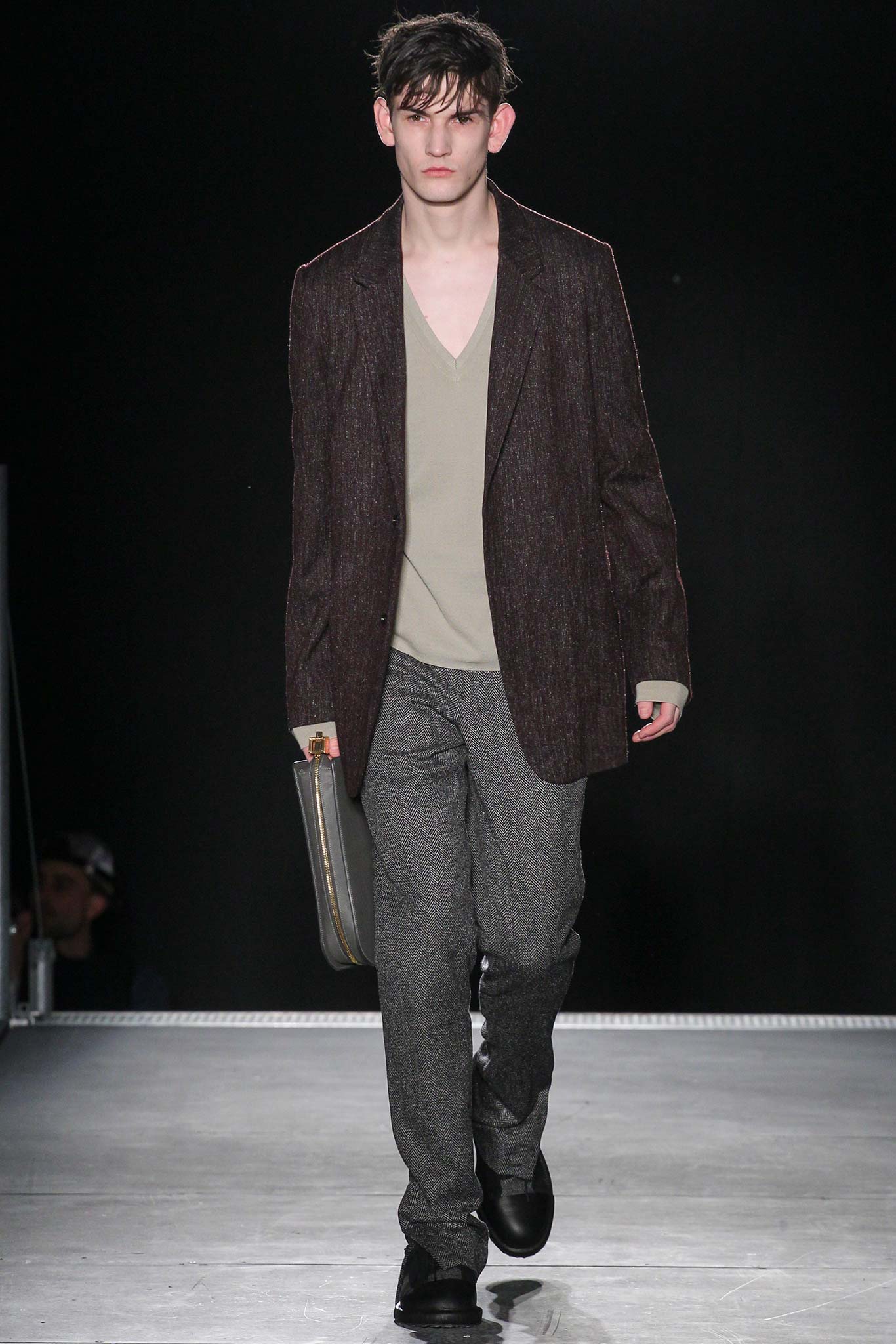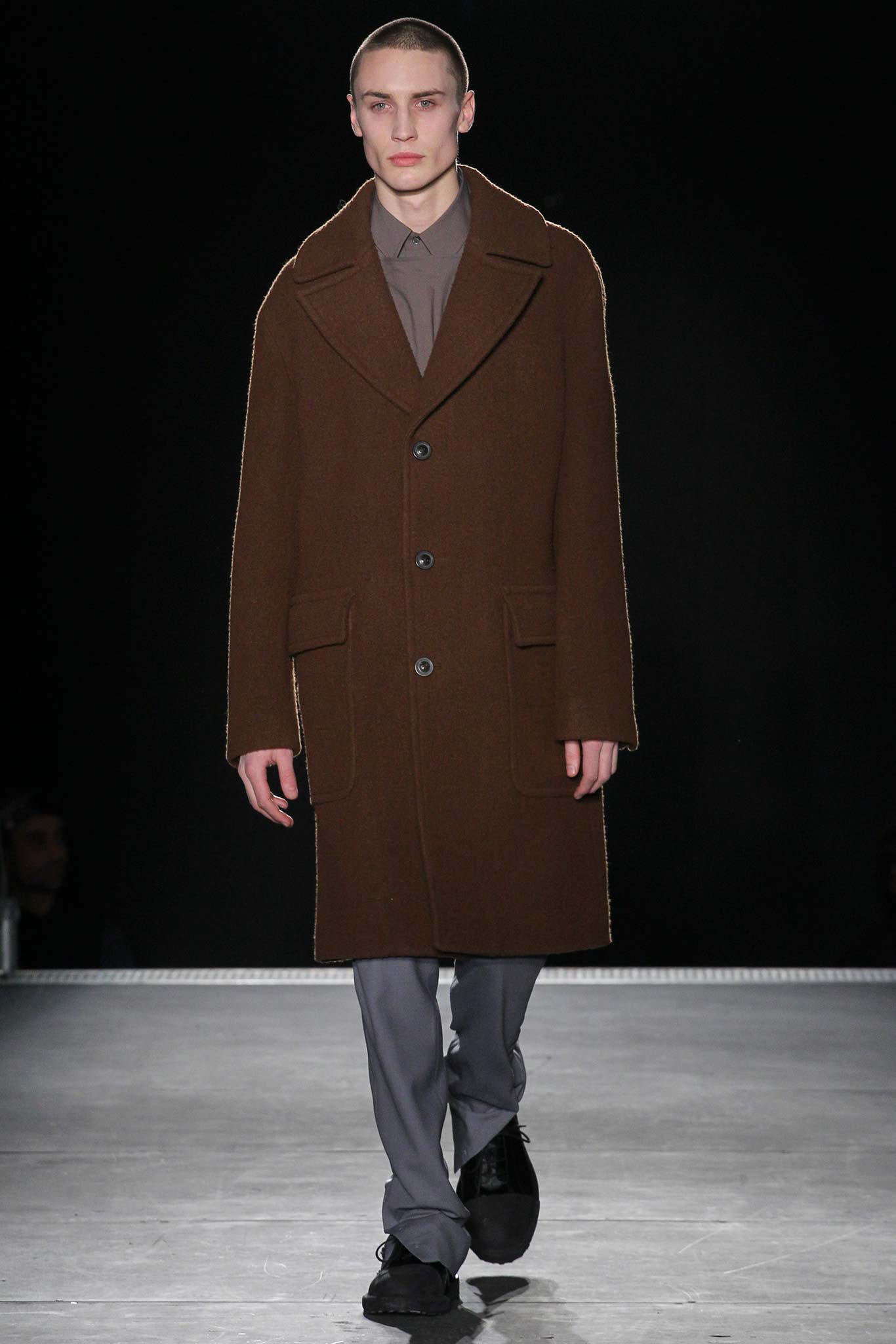 Among blues, grays, blacks and browns, Wooyoungmi presents the new uniform relaxed and elegant at the same time modern man: relaxed silhouettes with precise cuts in everyday clothes of wool and cotton own seasonal colors and soft textures.