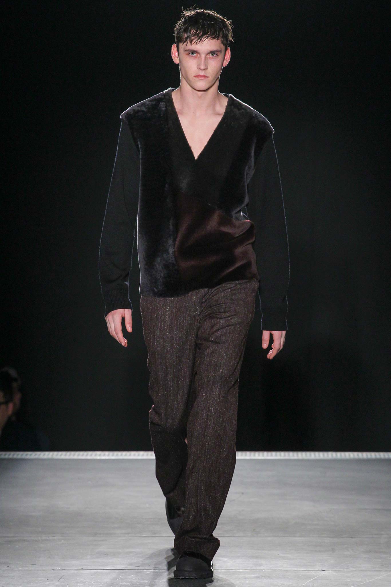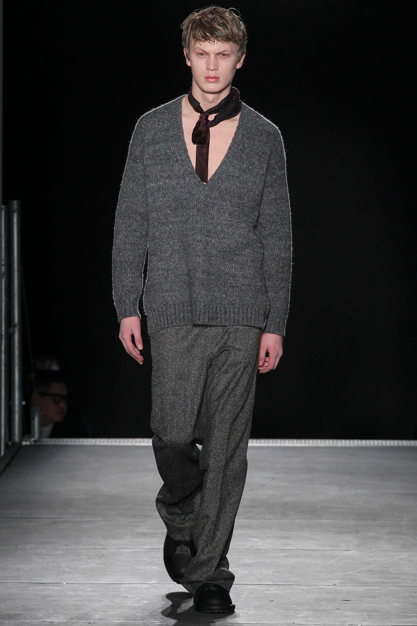 Among blues, grays, blacks and browns, Wooyoungmi presents the new uniform relaxed and elegant at the same time modern man: relaxed silhouettes with precise cuts in everyday clothes of wool and cotton own seasonal colors and soft textures.