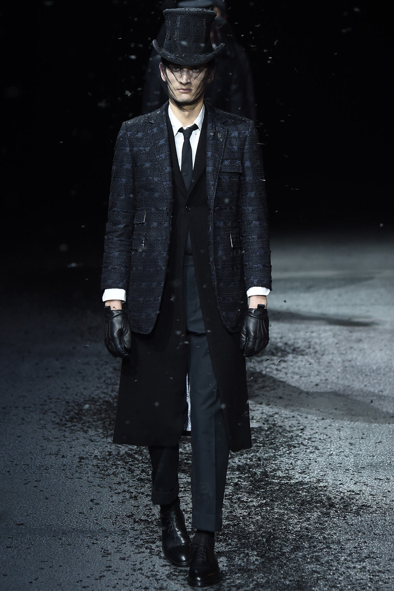 Thom Browne Menswear Autumn / Winter 2015 presented a dark noire suited collection during Paris Fashion Week.