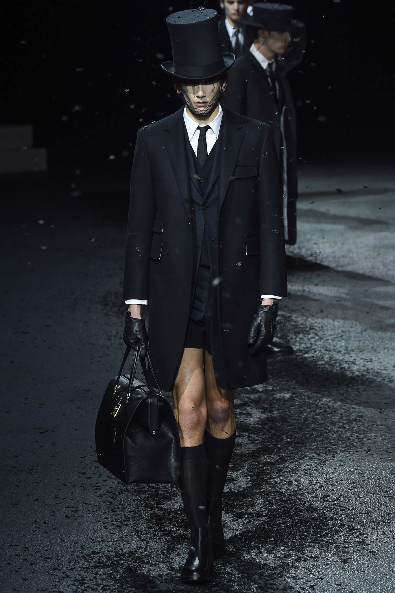 Thom Browne Menswear Autumn / Winter 2015 presented a dark noire suited collection during Paris Fashion Week.