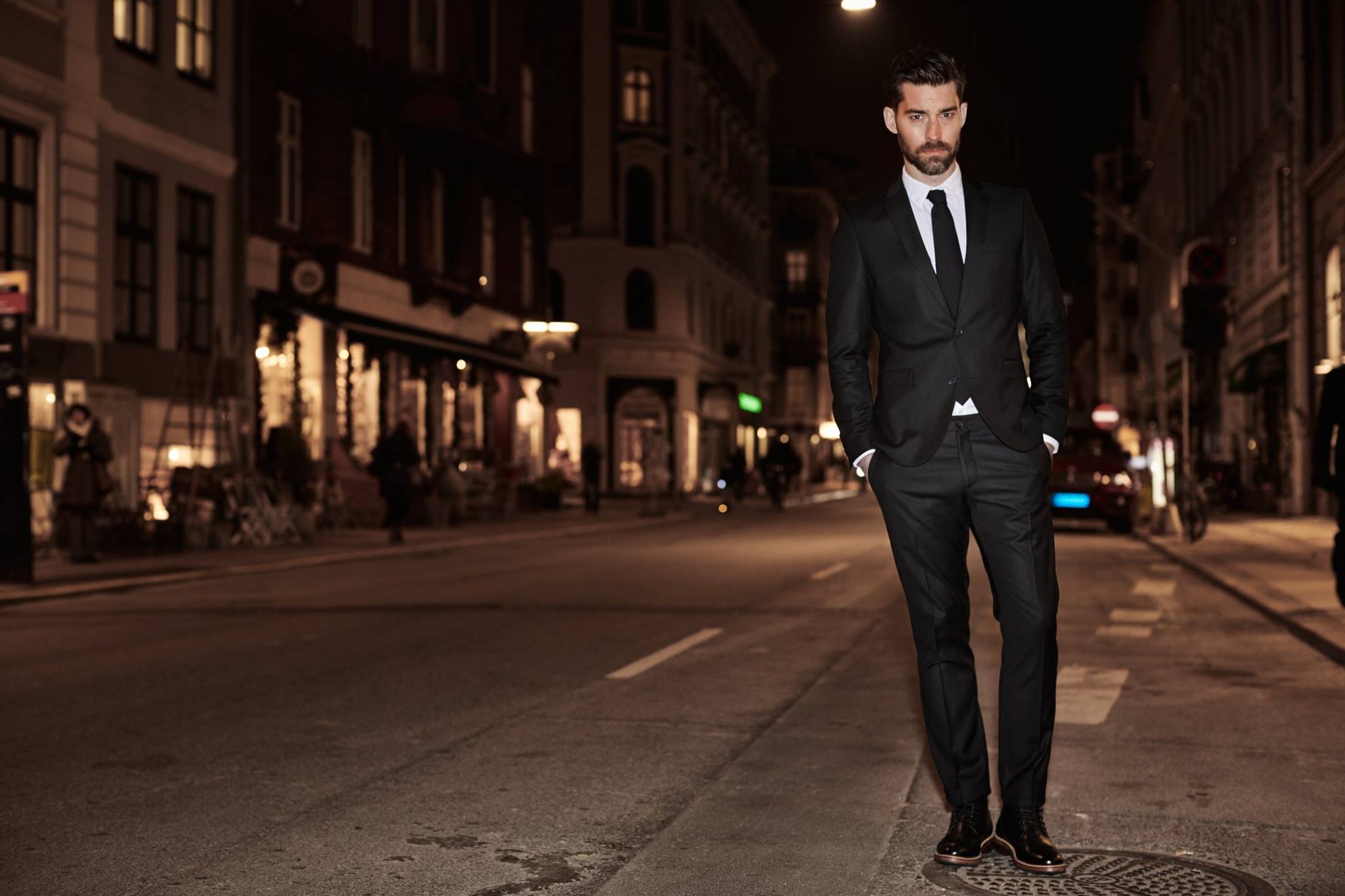 Is simple, if you don’t see any stylist around the session. First, look into your closet and search for a black / blue / gray simple suit (trousers and jacket) a white clean shirt, dark socks and black shoes, tie and a belt.
