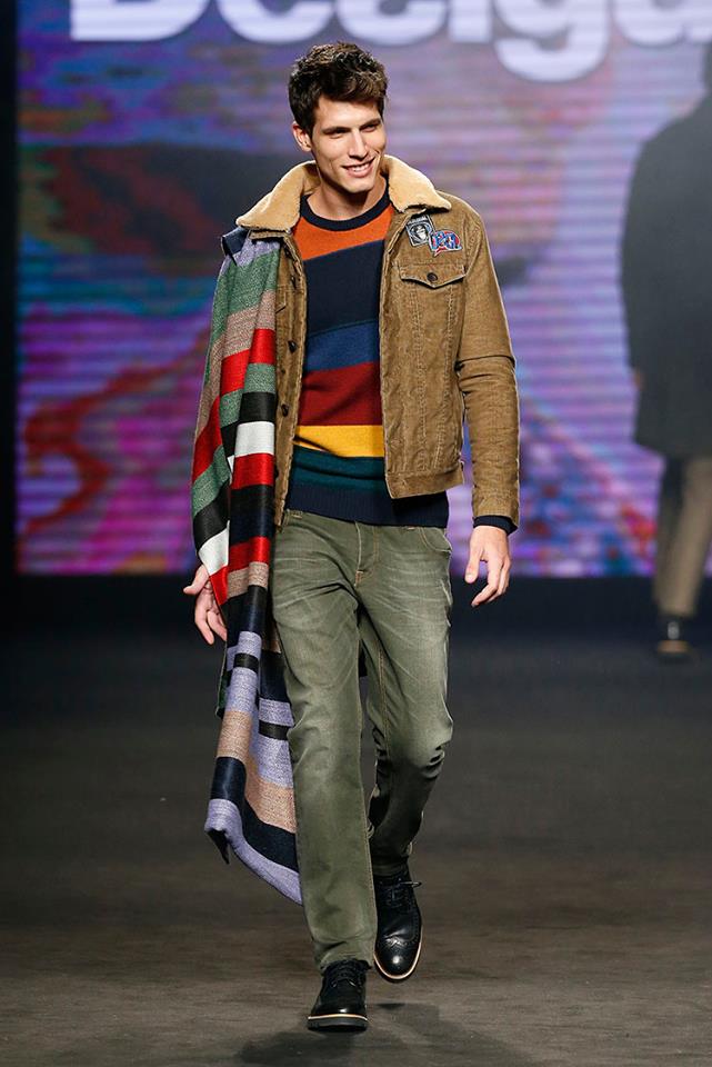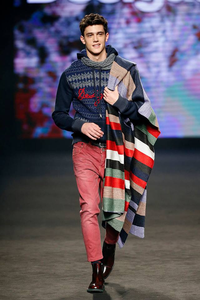 With a dynamic and bold presentation, Desigual presents his menswear collection at 080 Barcelona Fashion 15º Edition, with knitwear, colorful items and printed accompanied by chords to garments such as cardigans, jackets, jerseys and jeans season.