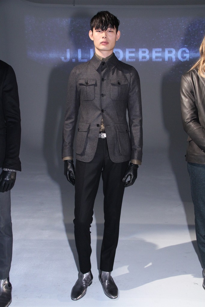 J. Lindeberg F/W 2015 at New York Fashion Week 2015, with Mars and a rock ‘n roll lifestyle at its roots, Jessy Heuvelink continued to channel early Seventies references with a lineup full of cropped tailoring pieces, textured wool parkas and treated leathers.