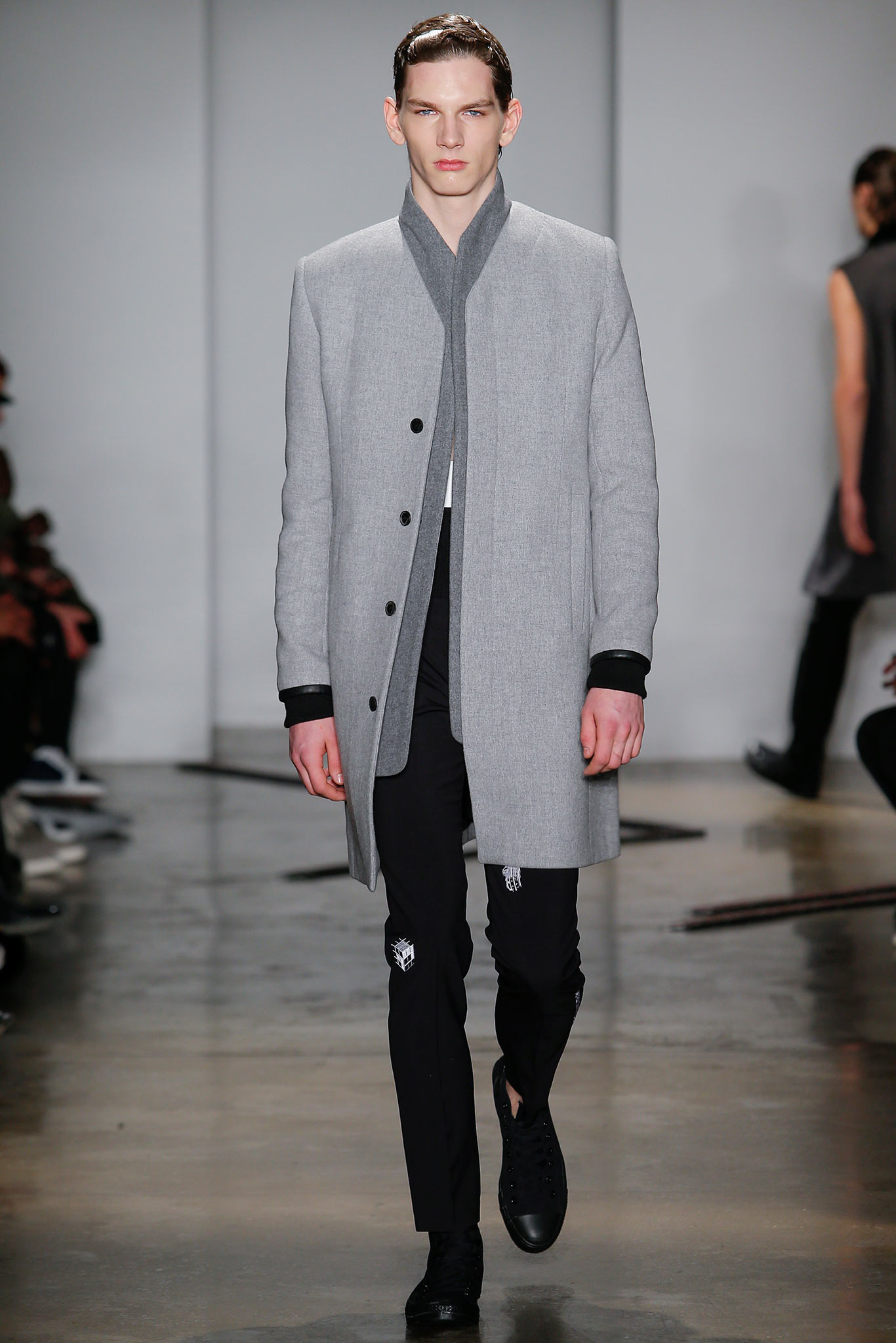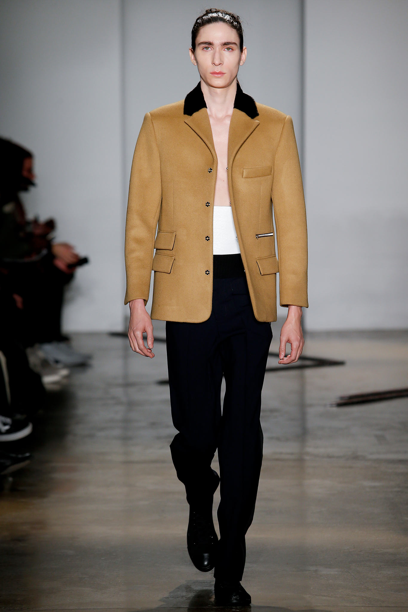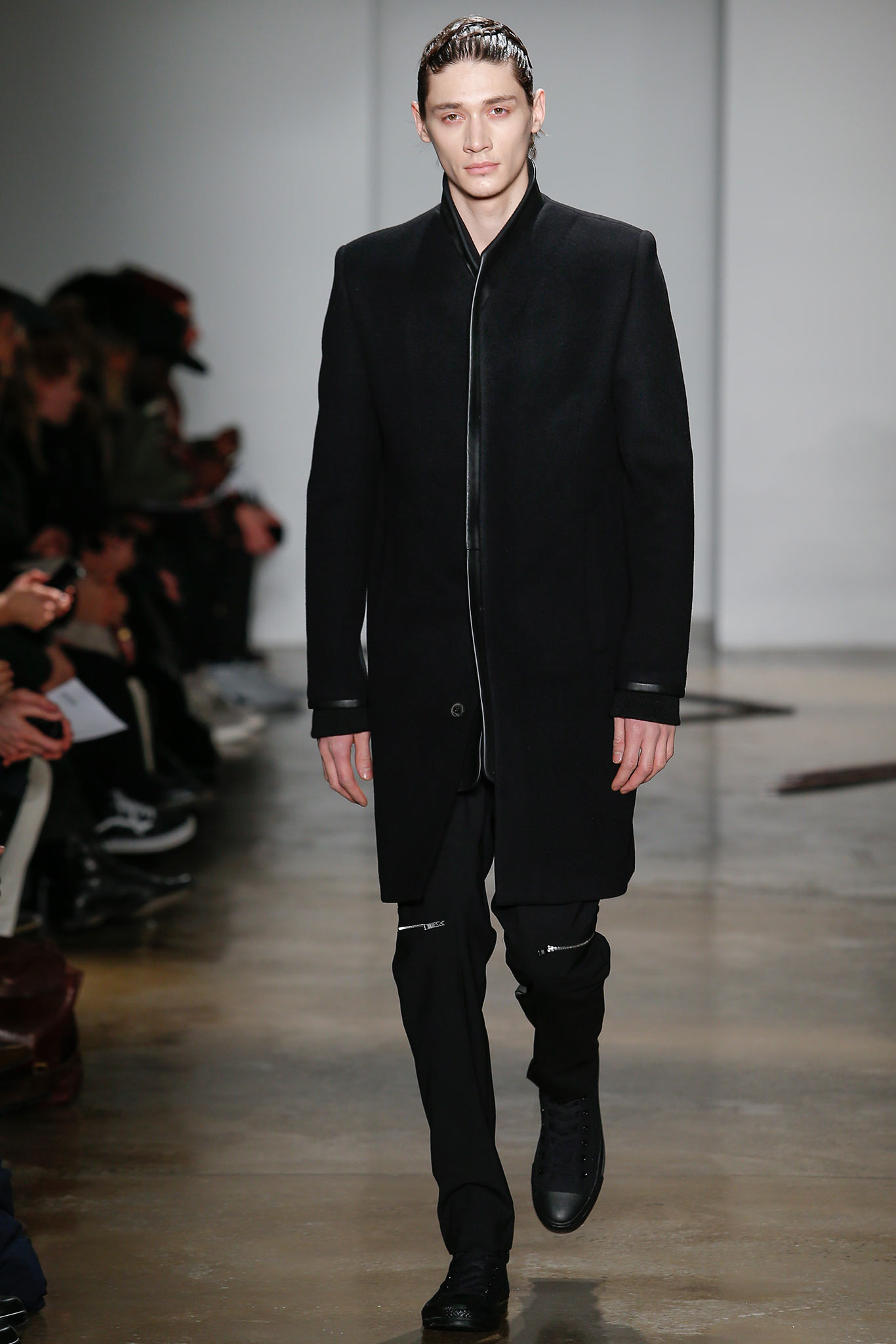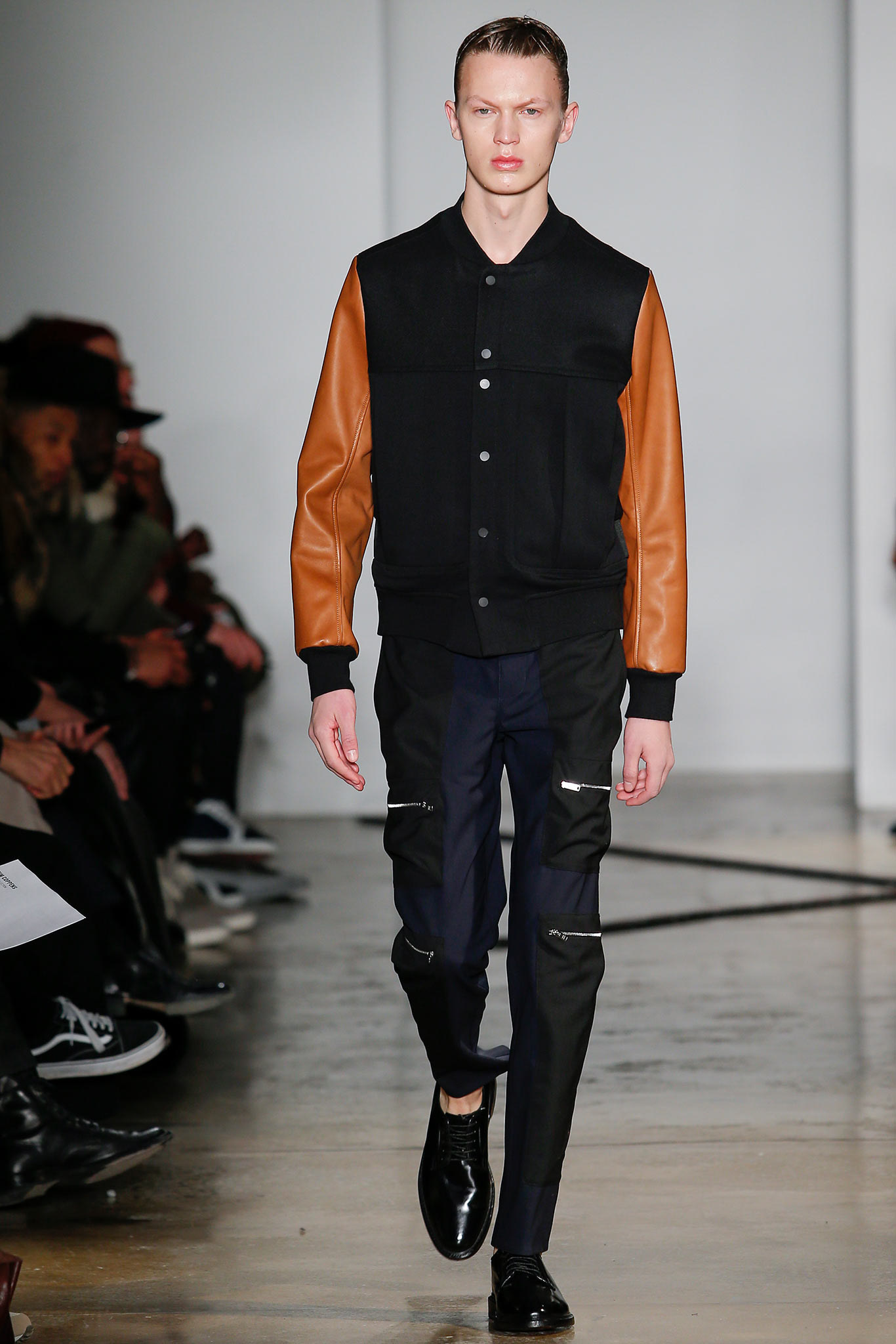 Sports flashes on contemporary tailoring techniques are proposed for Tim Coppens winter collection: color blocks, bags in contrast, coats with leather jackets and long inject dynamism into a collection full of formality.