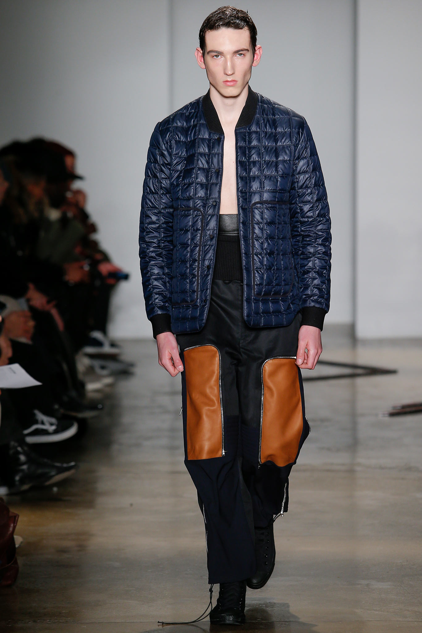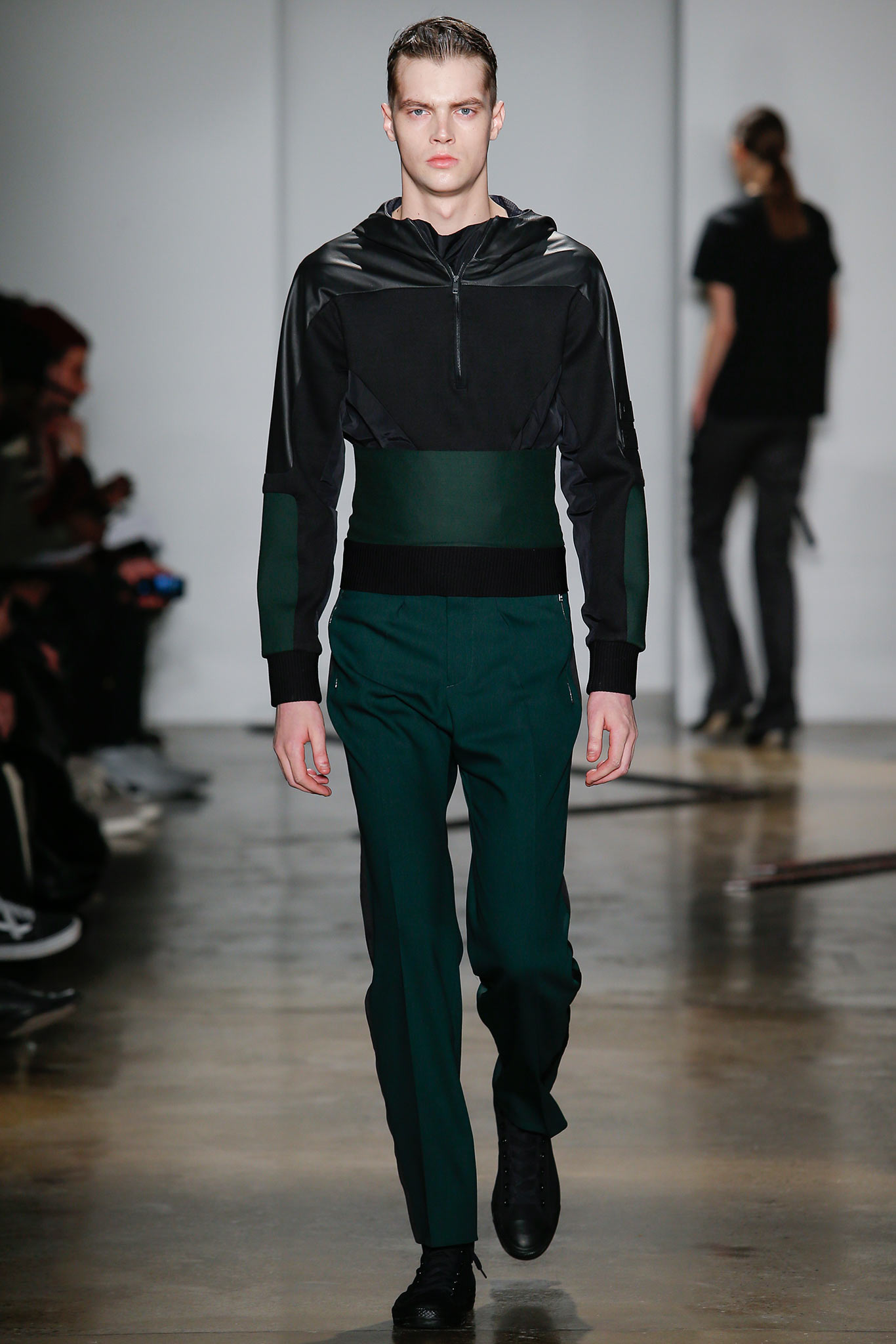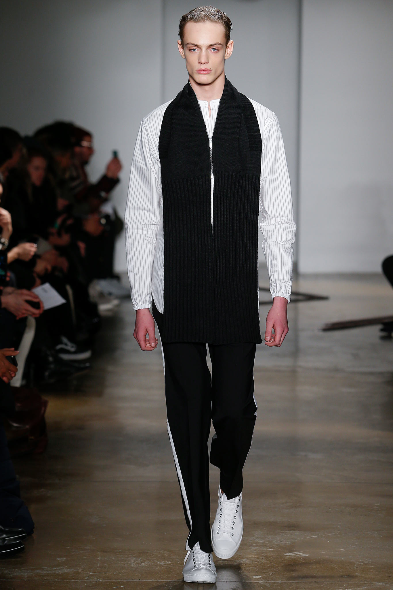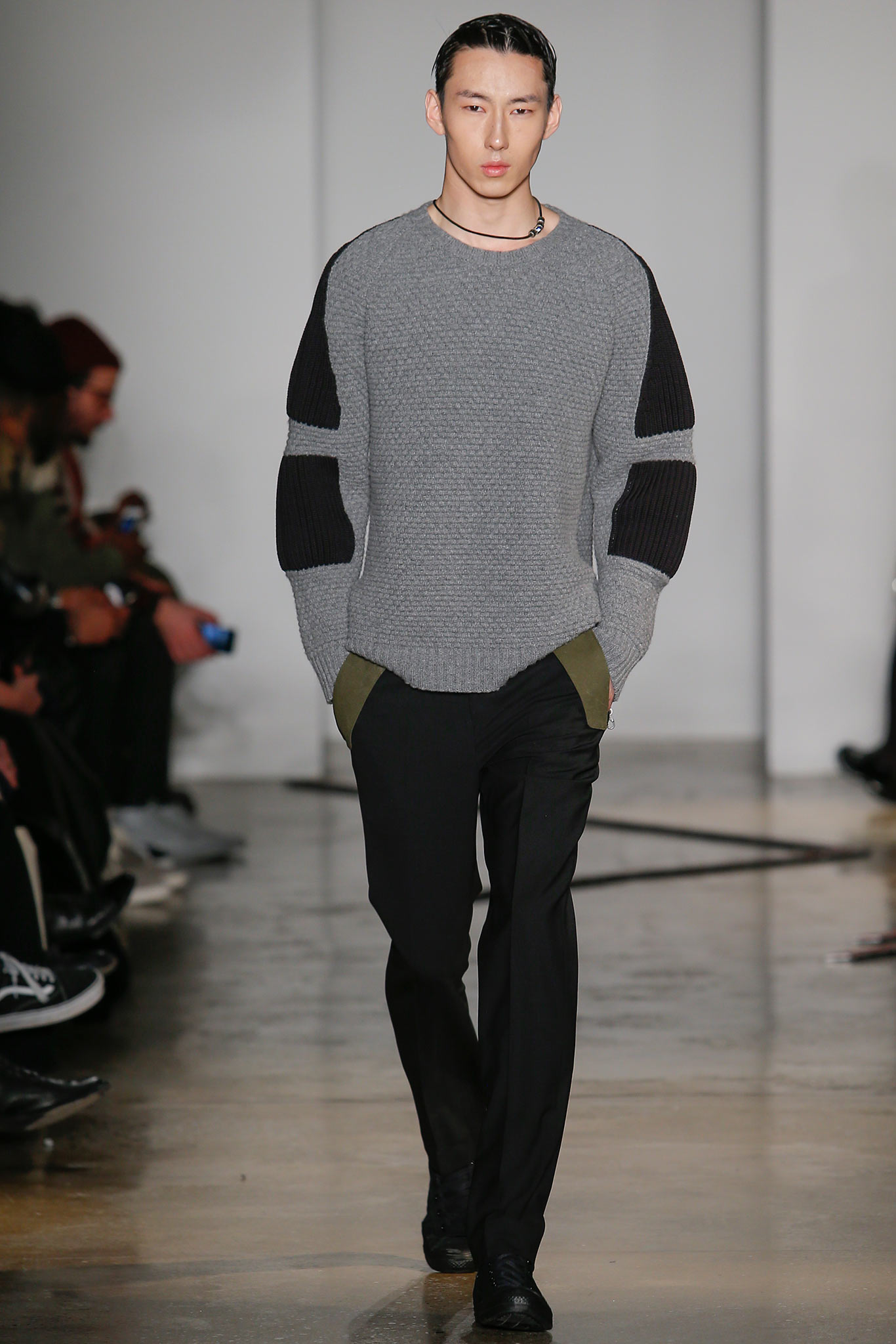 Sports flashes on contemporary tailoring techniques are proposed for Tim Coppens winter collection: color blocks, bags in contrast, coats with leather jackets and long inject dynamism into a collection full of formality.