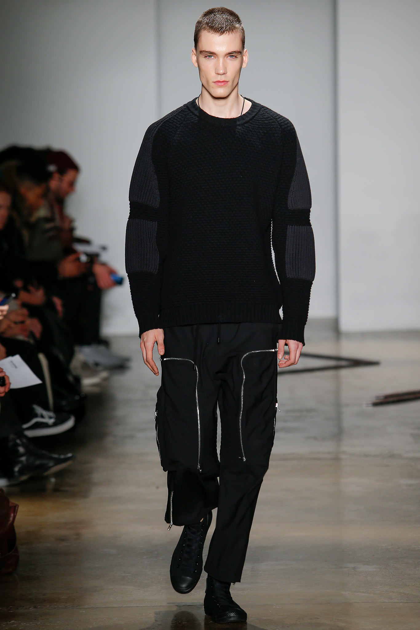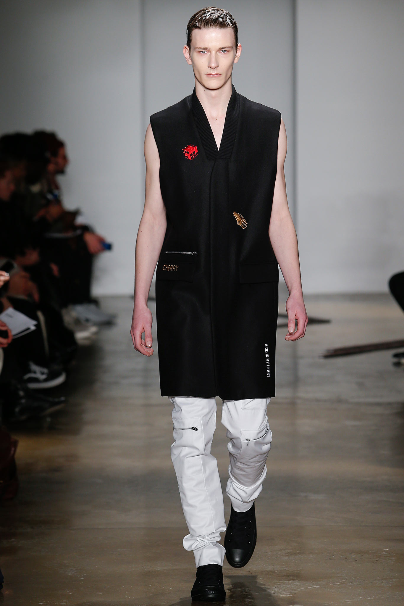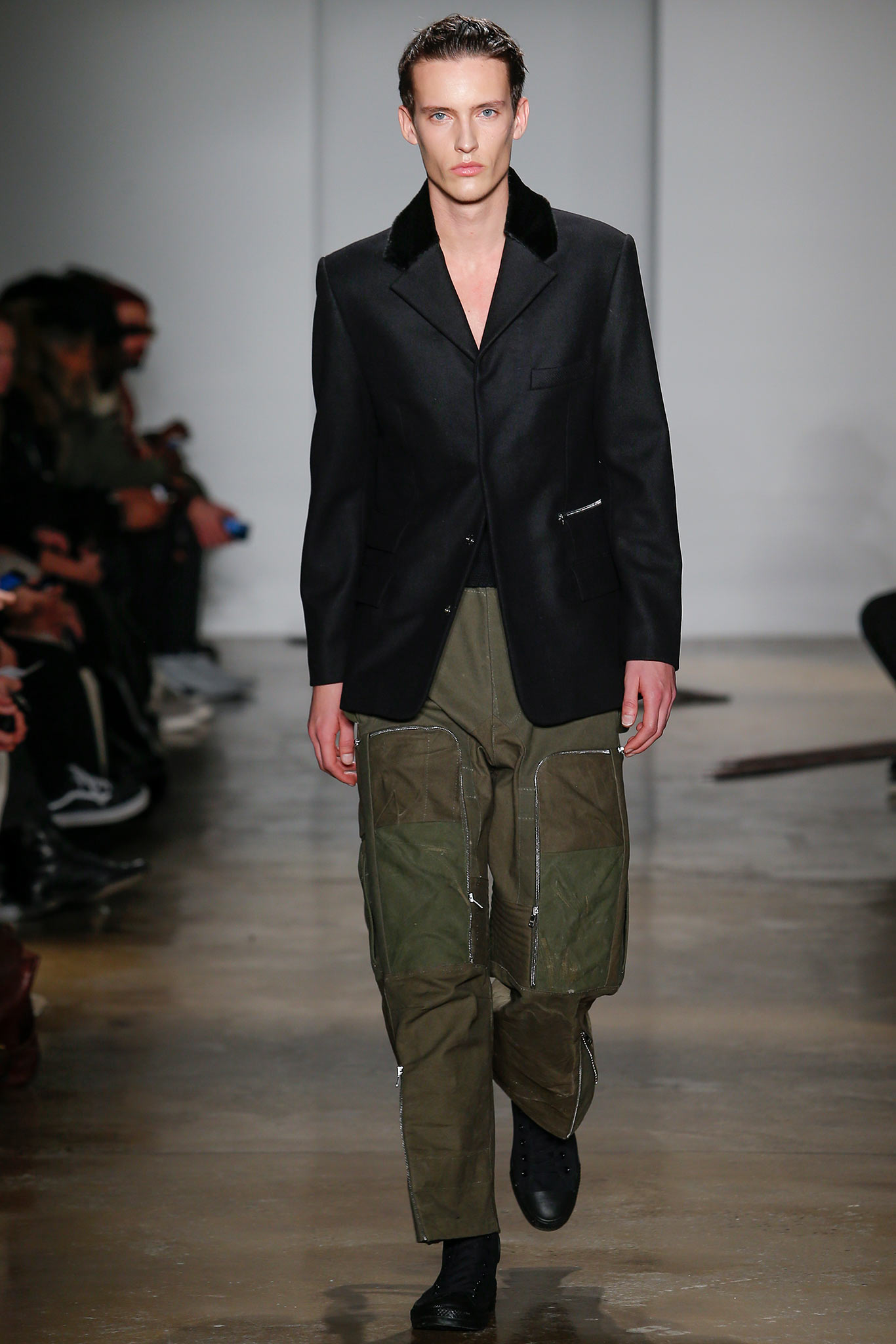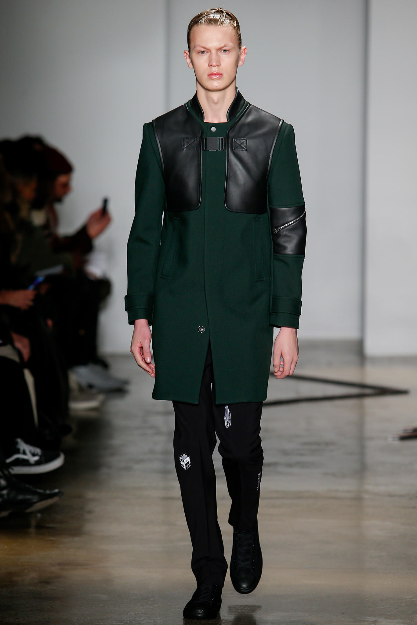 Sports flashes on contemporary tailoring techniques are proposed for Tim Coppens winter collection: color blocks, bags in contrast, coats with leather jackets and long inject dynamism into a collection full of formality.