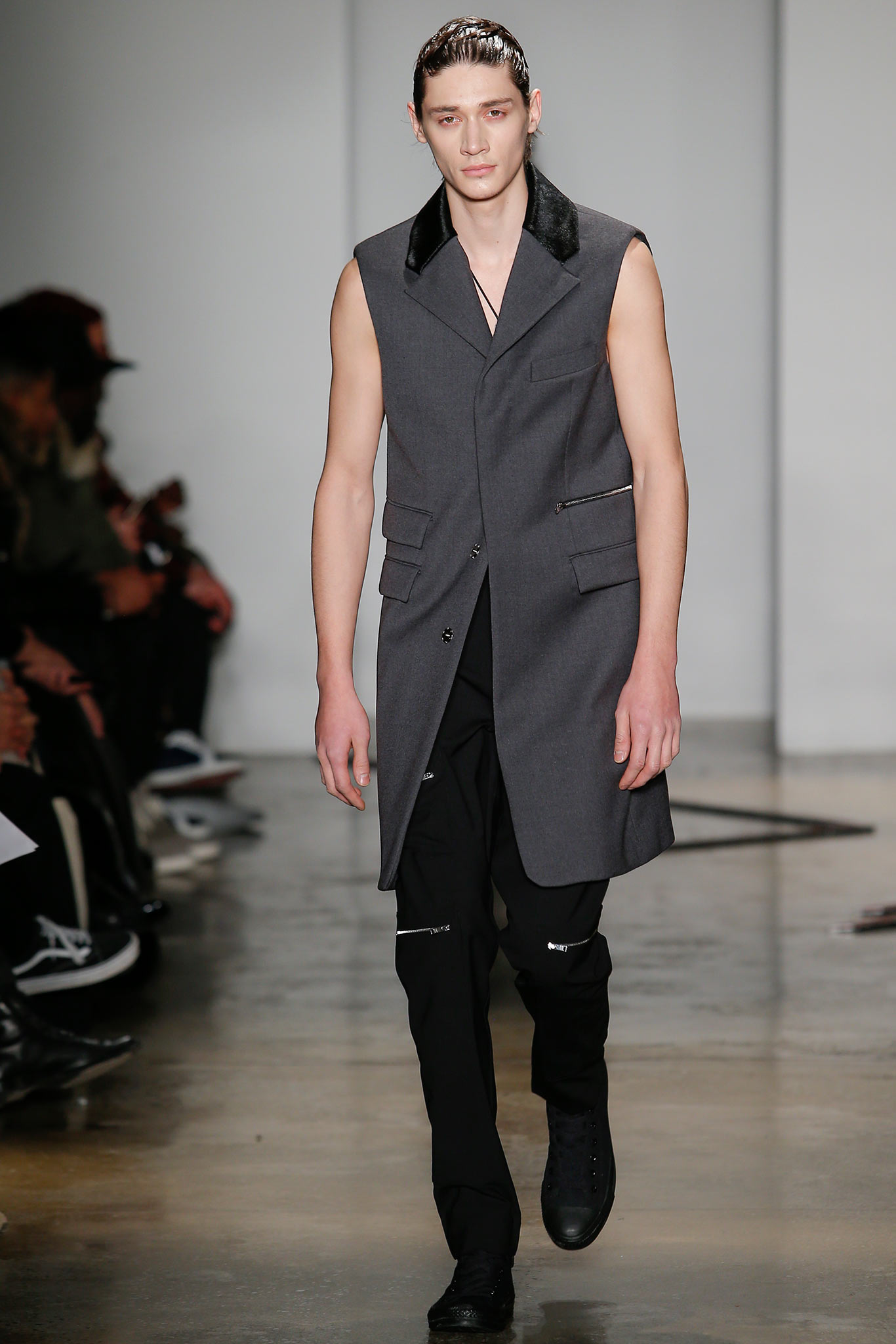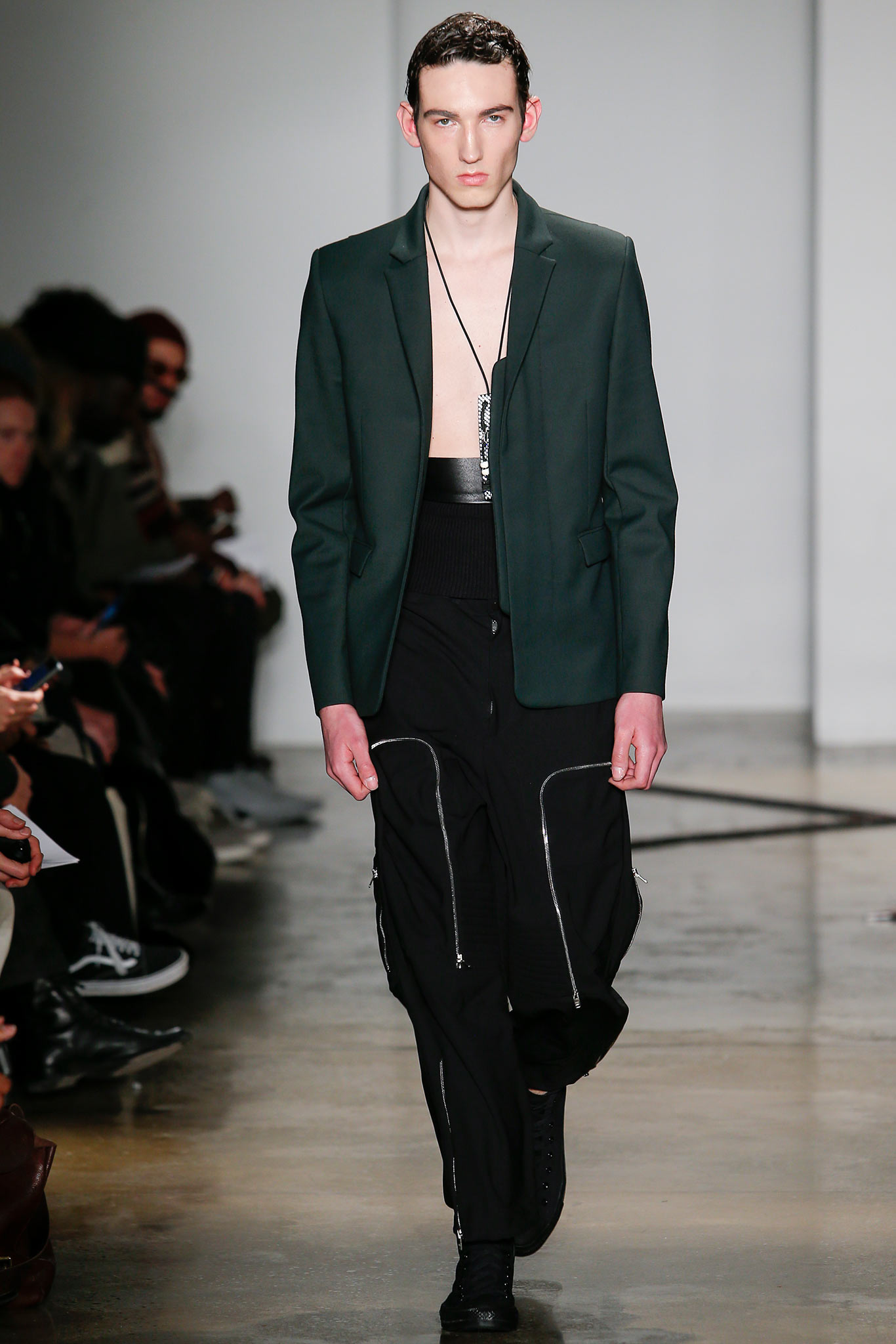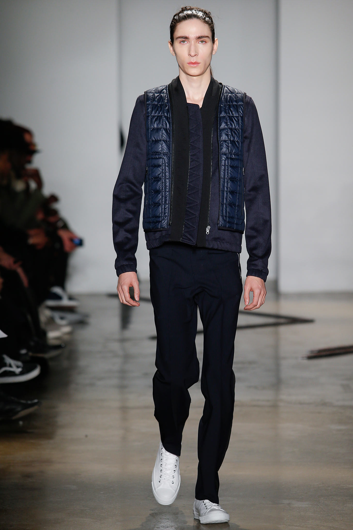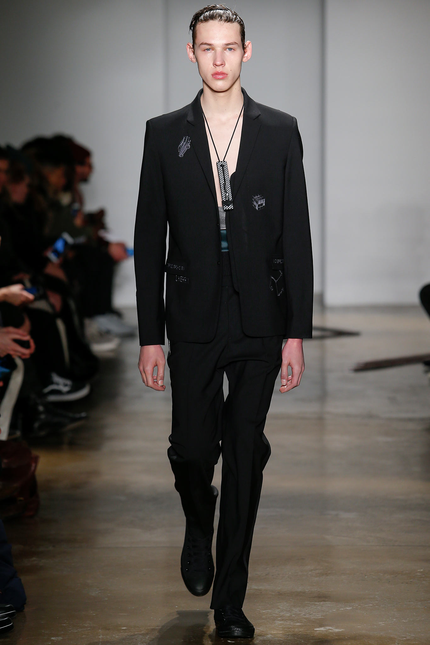 Sports flashes on contemporary tailoring techniques are proposed for Tim Coppens winter collection: color blocks, bags in contrast, coats with leather jackets and long inject dynamism into a collection full of formality.