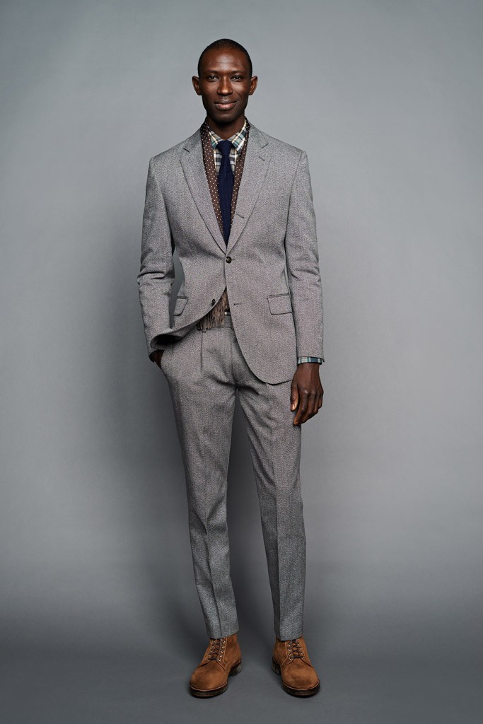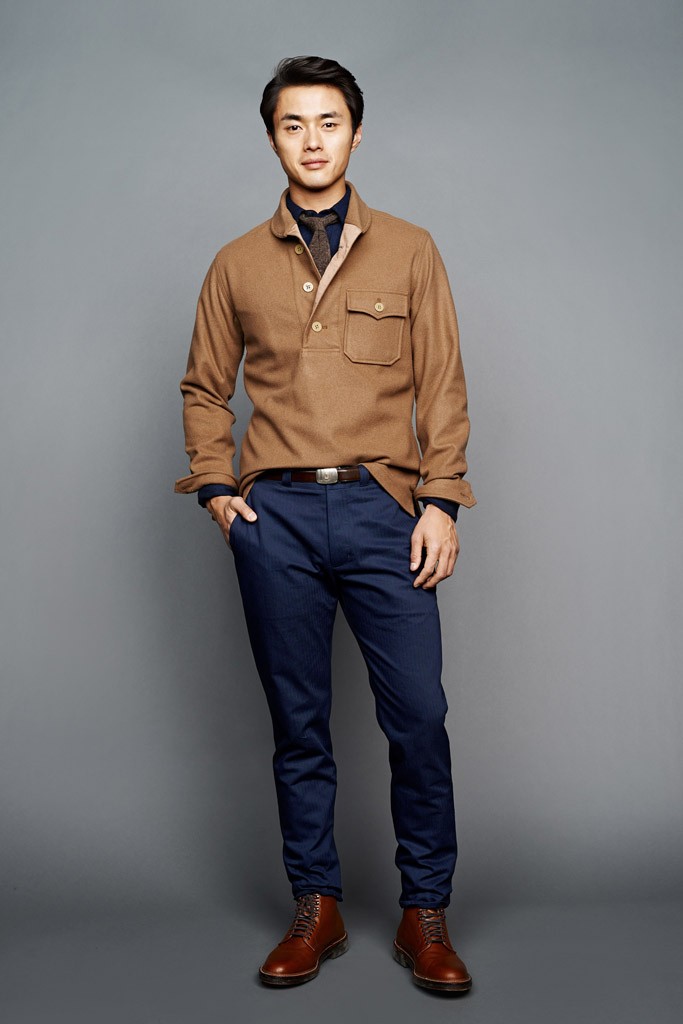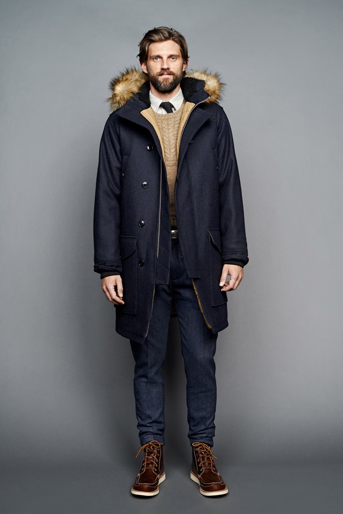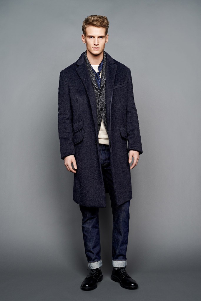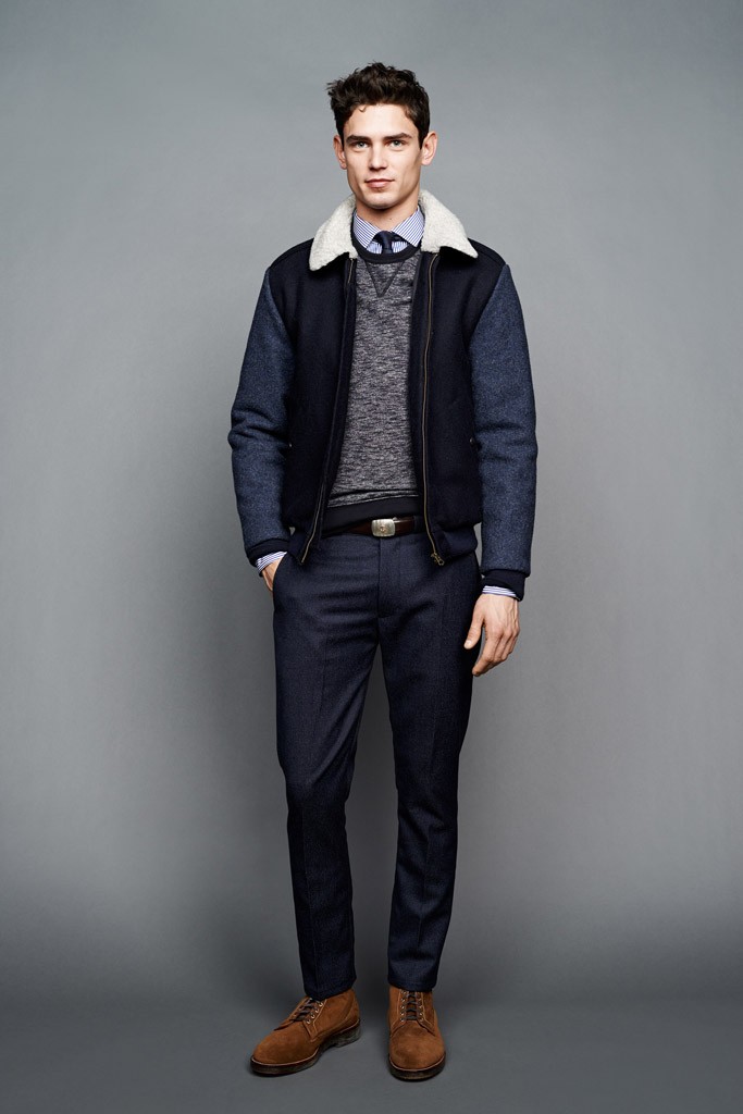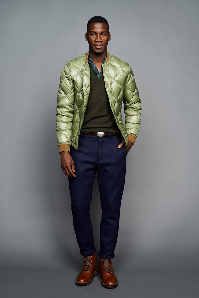 From a color palette heavy on green and khaki to the military details on the A-line, drop-shoulder topcoats, the J. Crew men’s design director “intertwined” this feeling throughout the lineup.