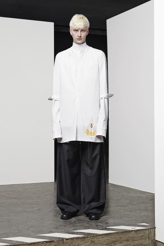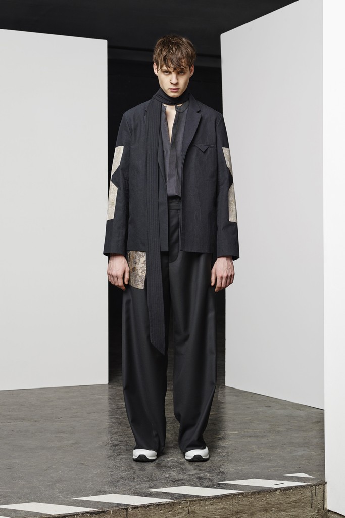 Inspired by the urban renewal and gentrification in the Lower East Side of Manhattan, Siki Im offered a fall collection of futuristic men’s wear staples. Car coats with paneled sleeves and fur collared bombers with inner sleeves longer than the actual jacket felt like whimsical folk art.