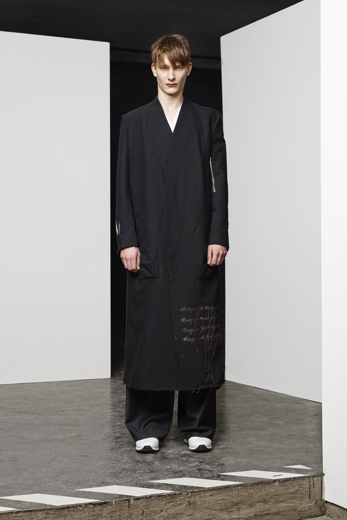 The collection featured all-natural fibers — wool, silk and cashmere from Japan and Italy. Highlights included a cashmere topcoat over a tunic and button-down paired with leather pants, and a tapestry printed parka