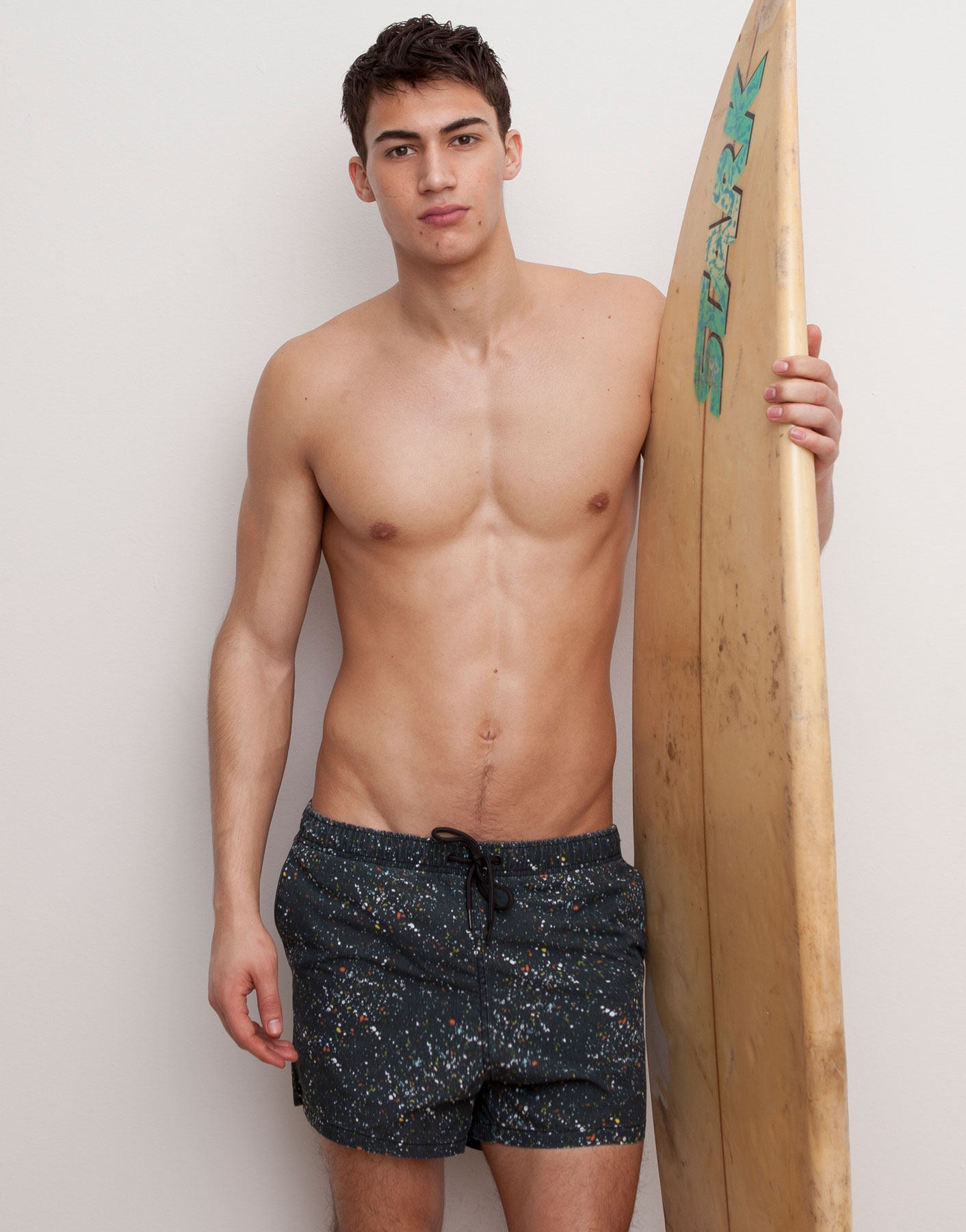 Presents new arrivals at Pull & Bear Beachwear with Alessio Pozzi modeling swim shorts, colorful tank tops for this coming Spring and Summer.
