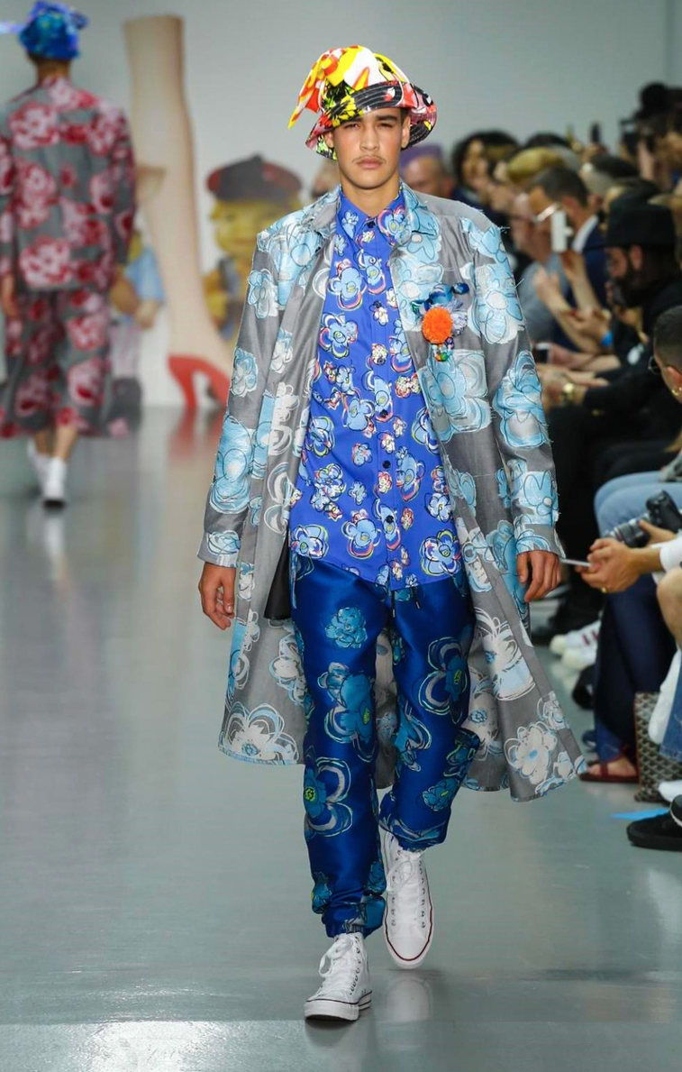 Kit Neale presents its Spring/Summer 2016 at London Collection Men. Fruitful, colourful patterns jumpers, bomber jacket,s graphic long t-shirts, with colourful hats, a non traditional Spring/Summer collection but this is what we’re talking about is fashion expression and humor sense.