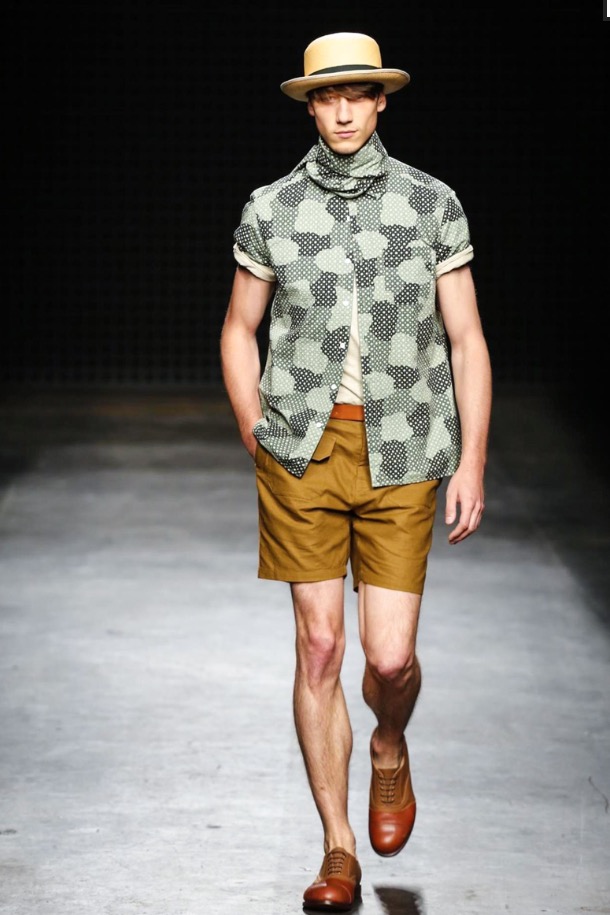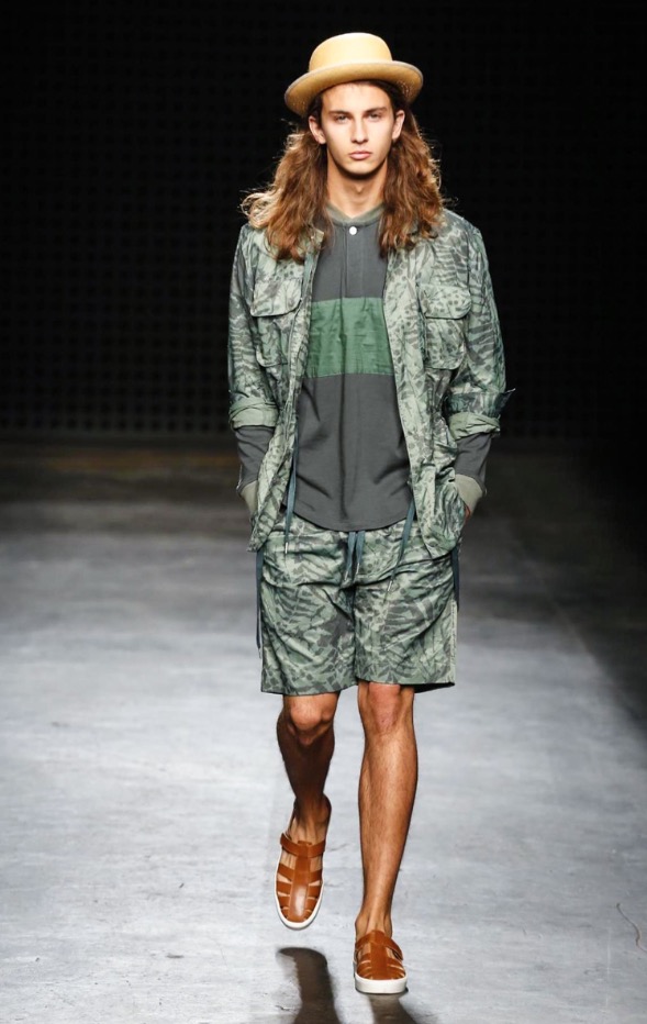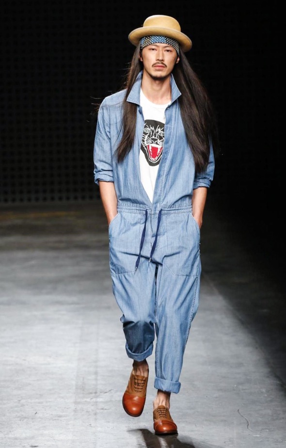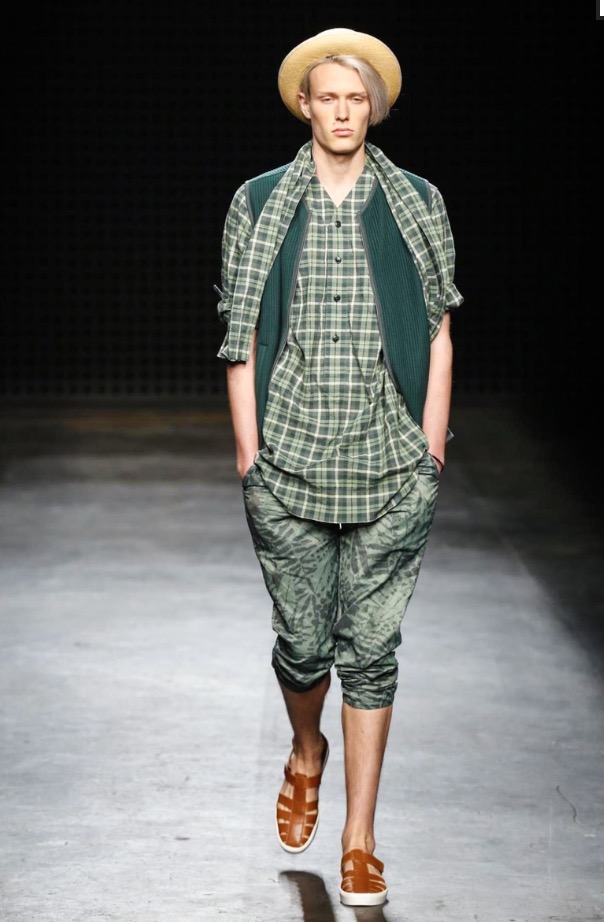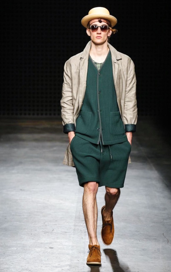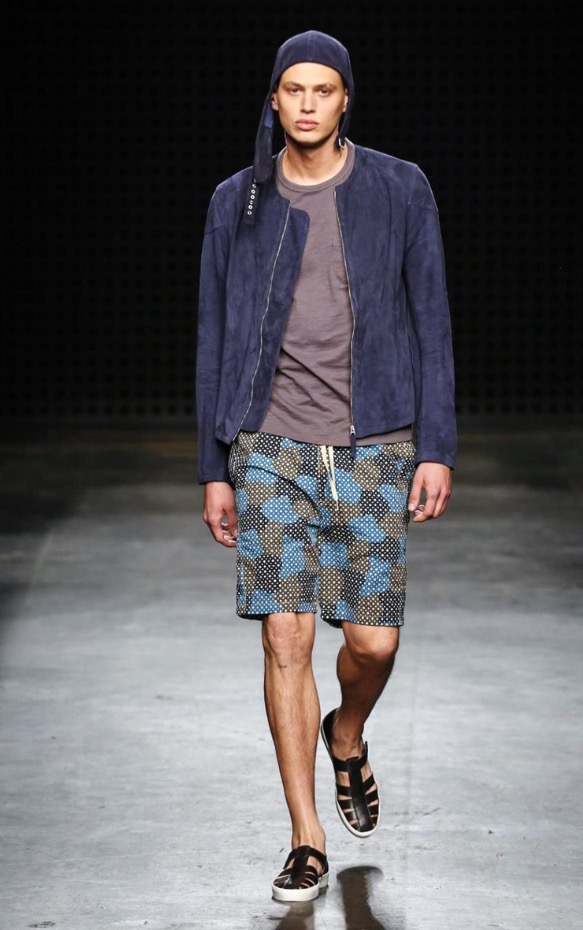 So there were low-slung boiler suits, broadly-cut trousers and trailing shirts, blended with supple suede jackets and easy athletic shorts. After last season’s harsh bursts of yellow, the palette was pared back to bleached neutrals and soft greys, echoing the gentle silhouettes of the garments themselves. It seems trite to throw the word “wearable” at YMC’s garments; realistic and comfortingly familiar, yes – but their approach was no less authentic for that.