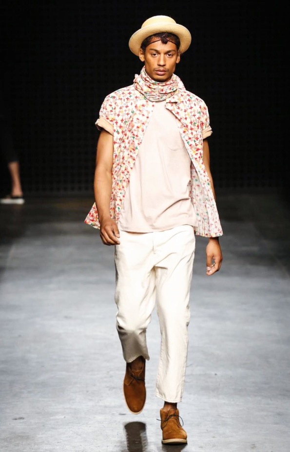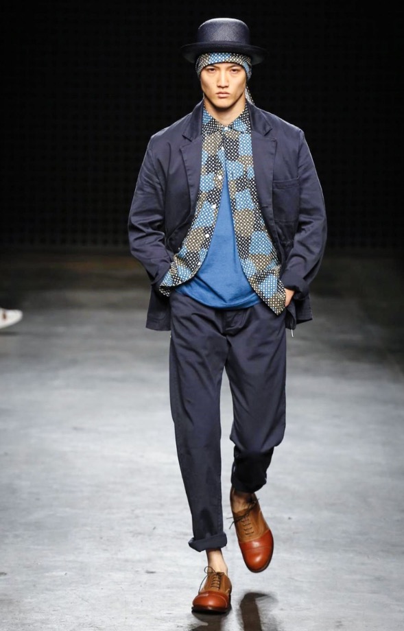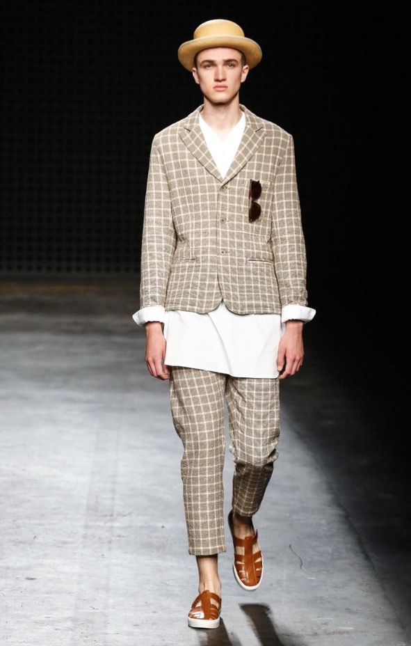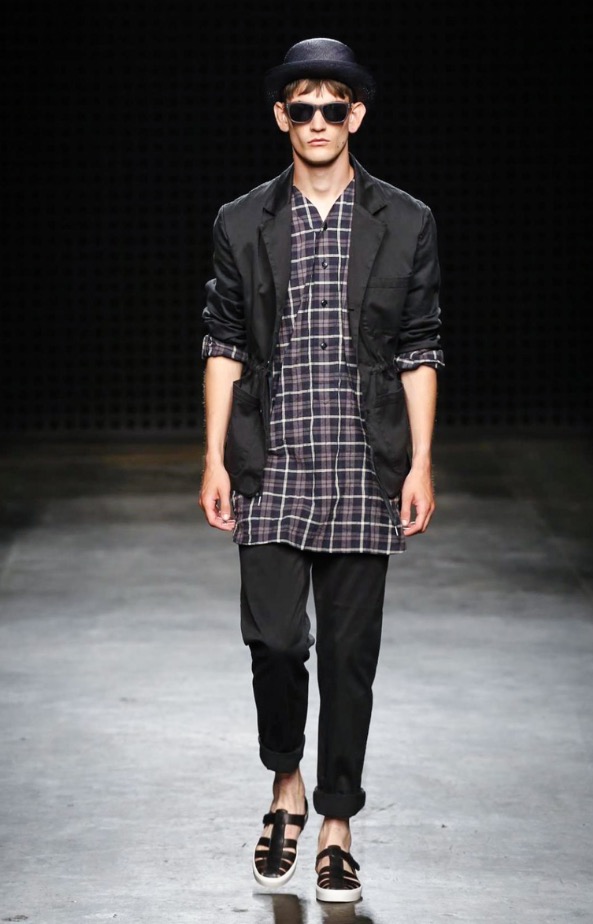 What was interesting, then, about YMC‘s show was how their new season’s vision followed that same language. Well into their third decade, YMC are part of the establishment here – but an establishment formed in the radical heat of the Nineties, which started many of London’s ongoing conversations around the modern masculine wardrobe. Their show notes explicitly referenced oriental work-wear; but unlike, say, Green’s work, the garments that circled the Sorting Office runway (round columns boxed out with heavy black grids) incorporated that influence far more delicately.