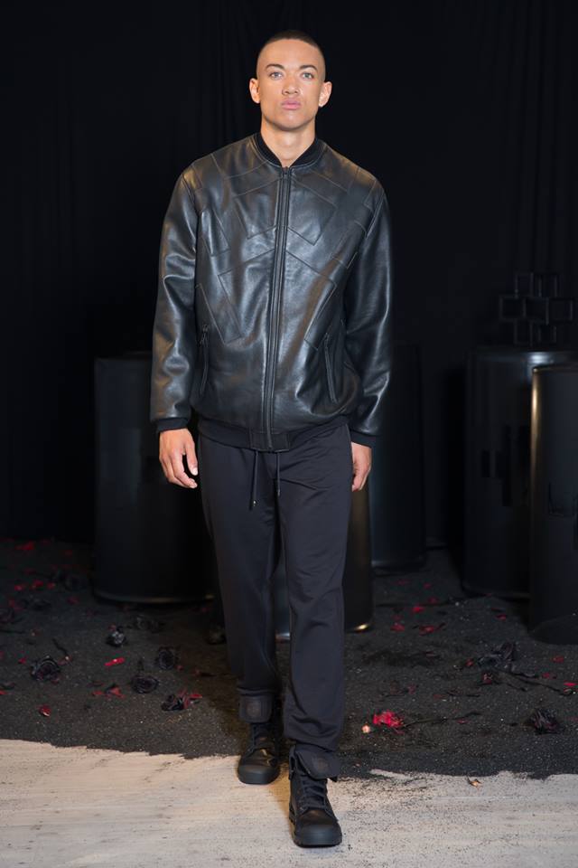 A 60 piece collection featuring signature, concept and classic luxury leather bikers, a significantly broader spectrum of luxury summer separates including luxury long and short sleeve t-shirts and vests, lightweight tech enhanced outerwear including reversible bombers and showerproof tech jackets and the development of a dark print featuring a dystopian world juxtaposed through the window of SYN (the Ada + Nik plus sign). Ada + Nik have also co-designed an artisan leather bomber jacket featuring bespoke pen holders with luxury pen brand Montegrappa.